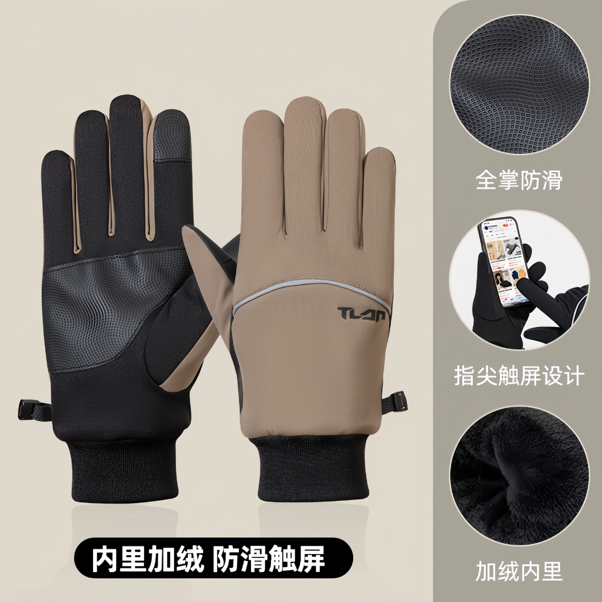 따뜻한 장갑 남성용 기모 두꺼운 터치 스크린 손가락 싸이클링 냉방 방풍 방수 겨울 장갑 배터리 자동차 용 장갑