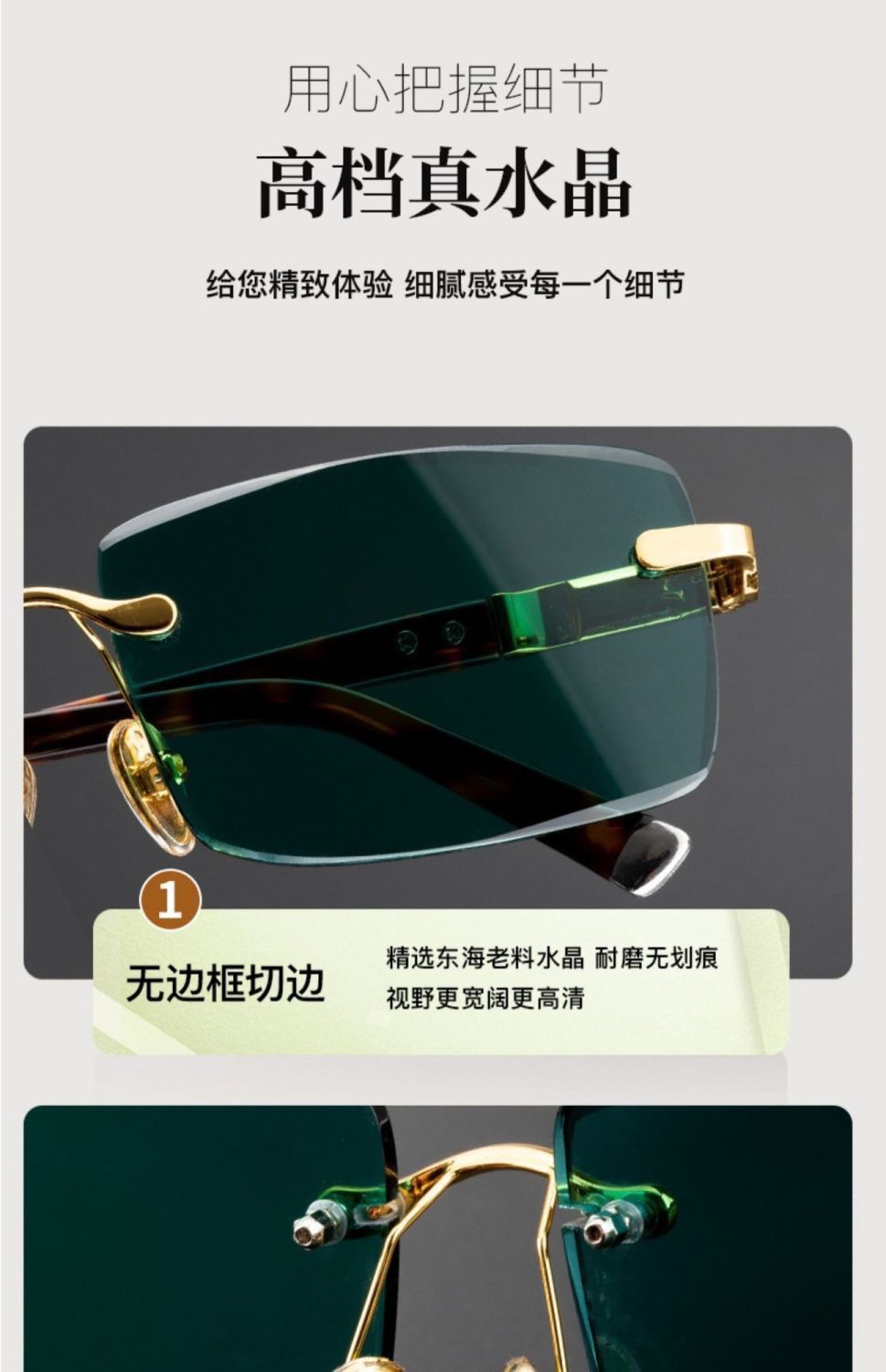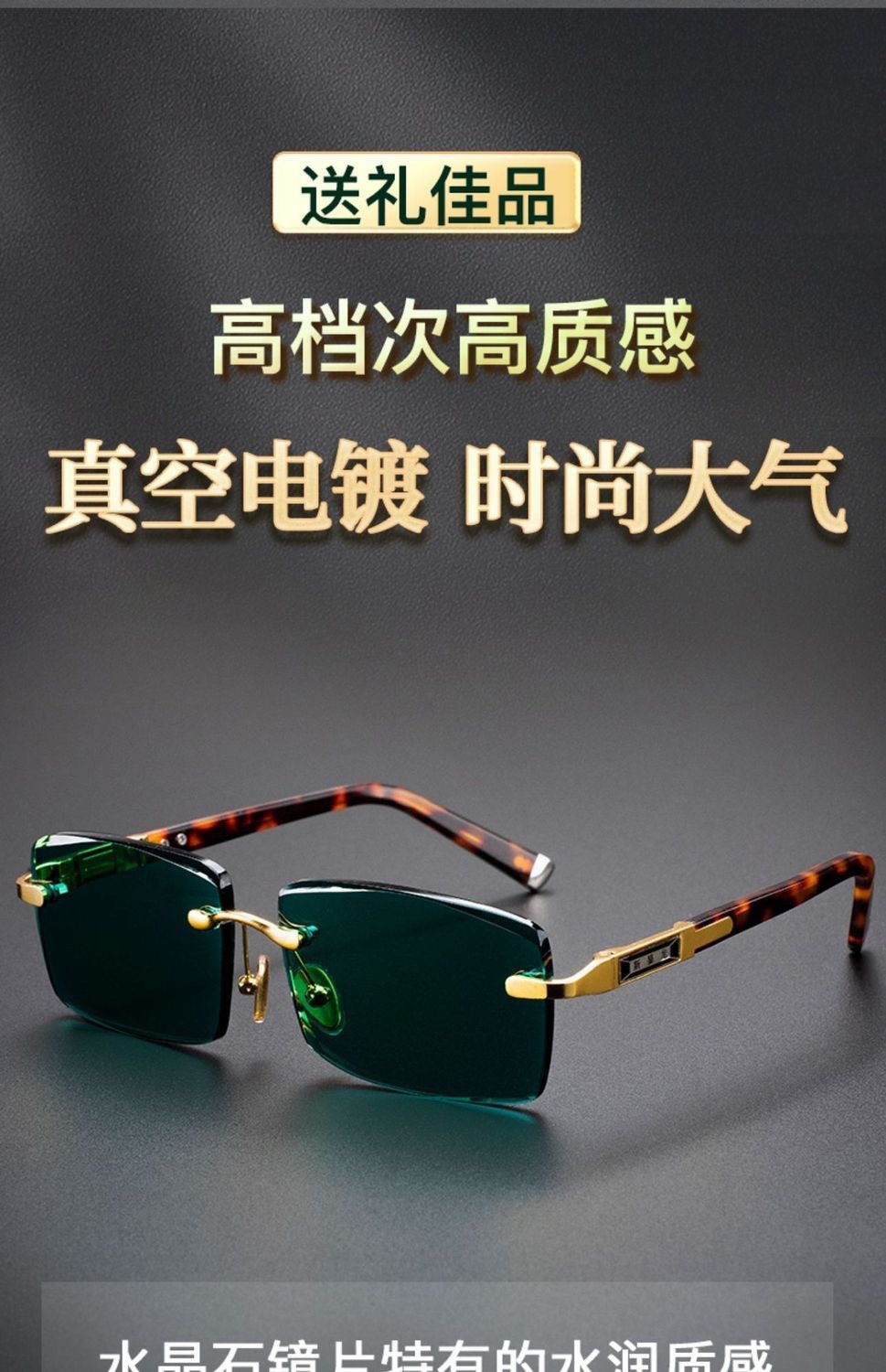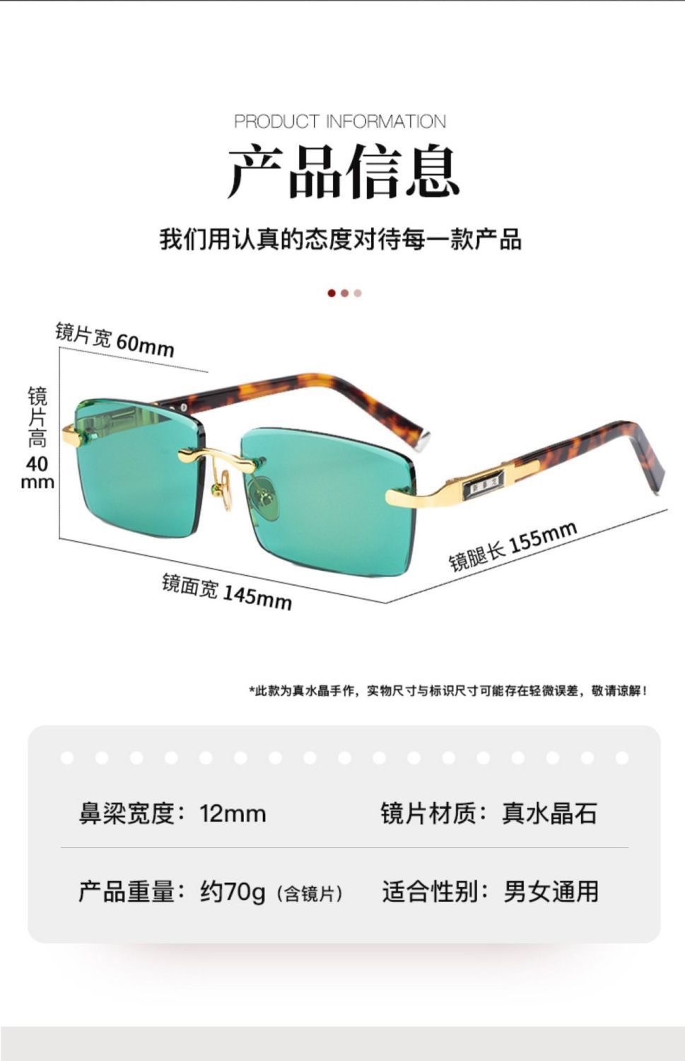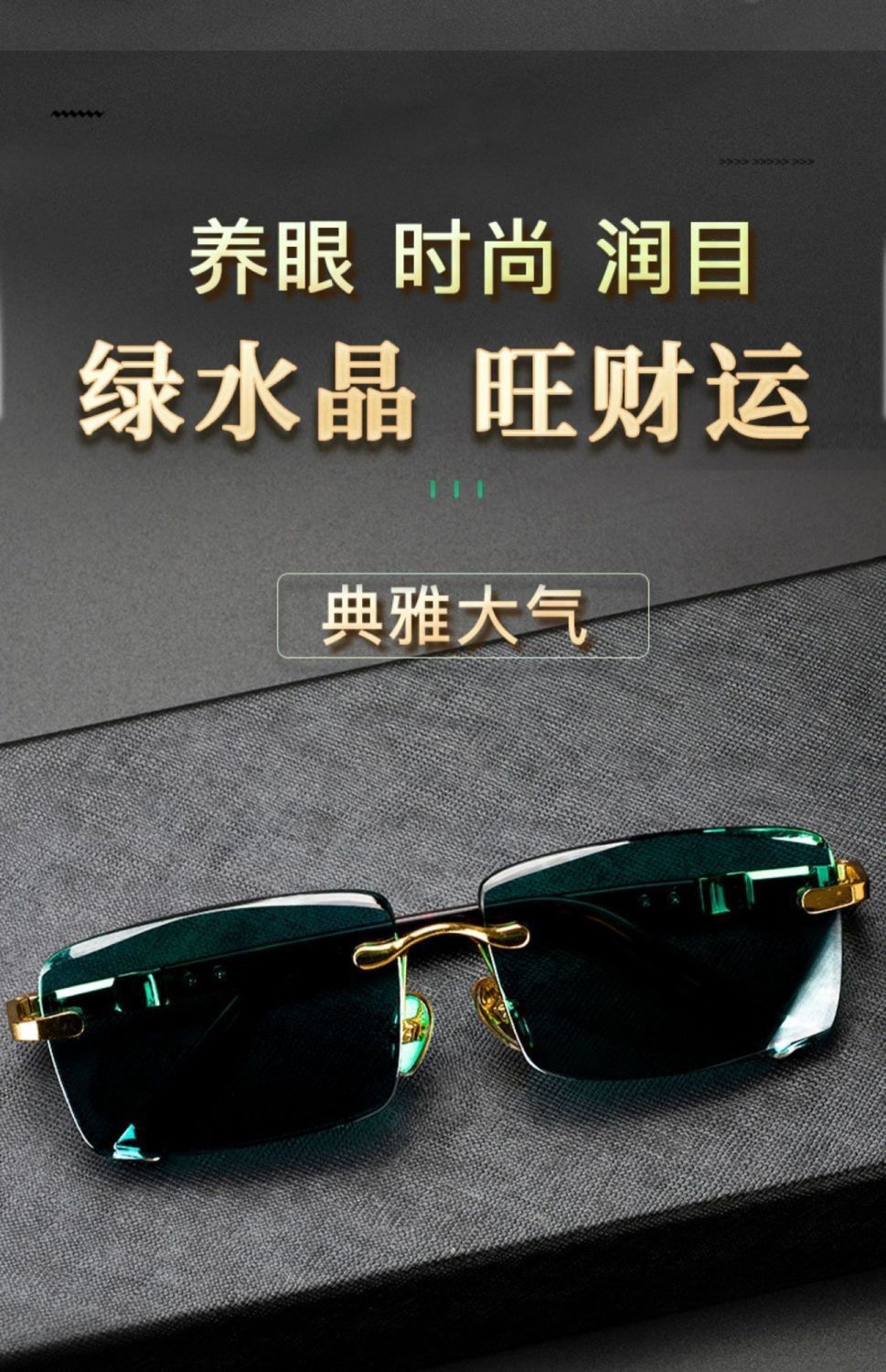 자연 크리스탈 스톤 남성과 여성의 안경 녹색 맞춤형 패션 정품 프레임리스 하이 엔드 눈 보호 선글라스스토어 가기