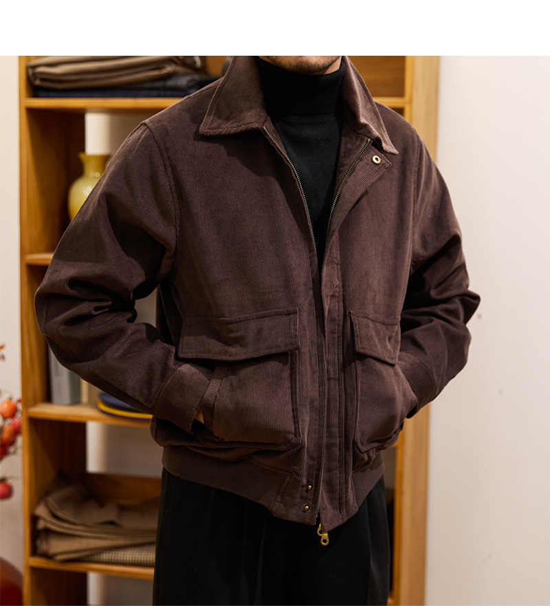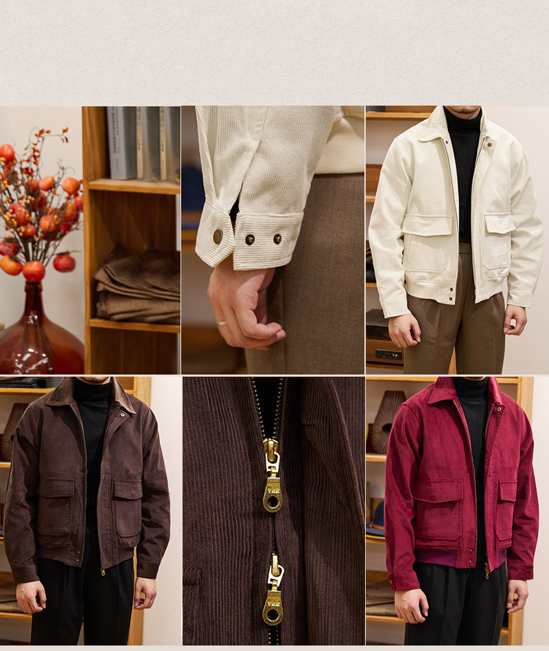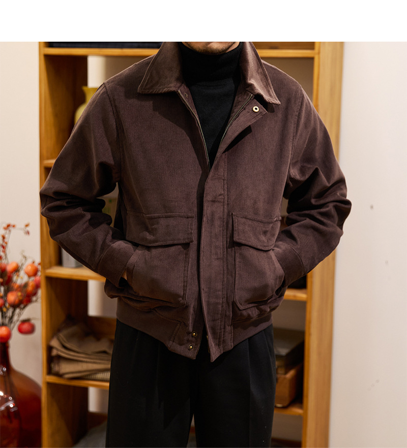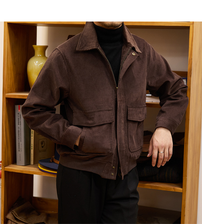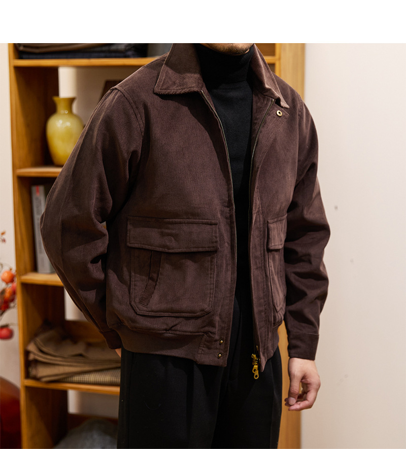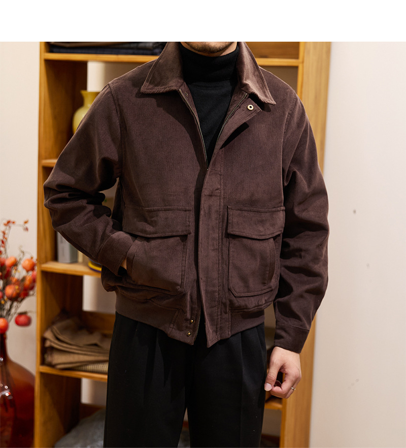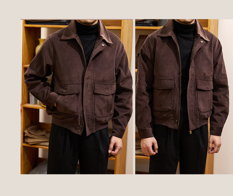 공장 직판 카키색 윈드브레이커 재킷 가을 겨울 캐주얼 남성용 코듀로이 라펠 정장 재킷 트렌디 레트로스토어 가기