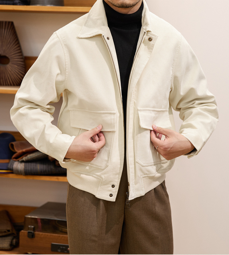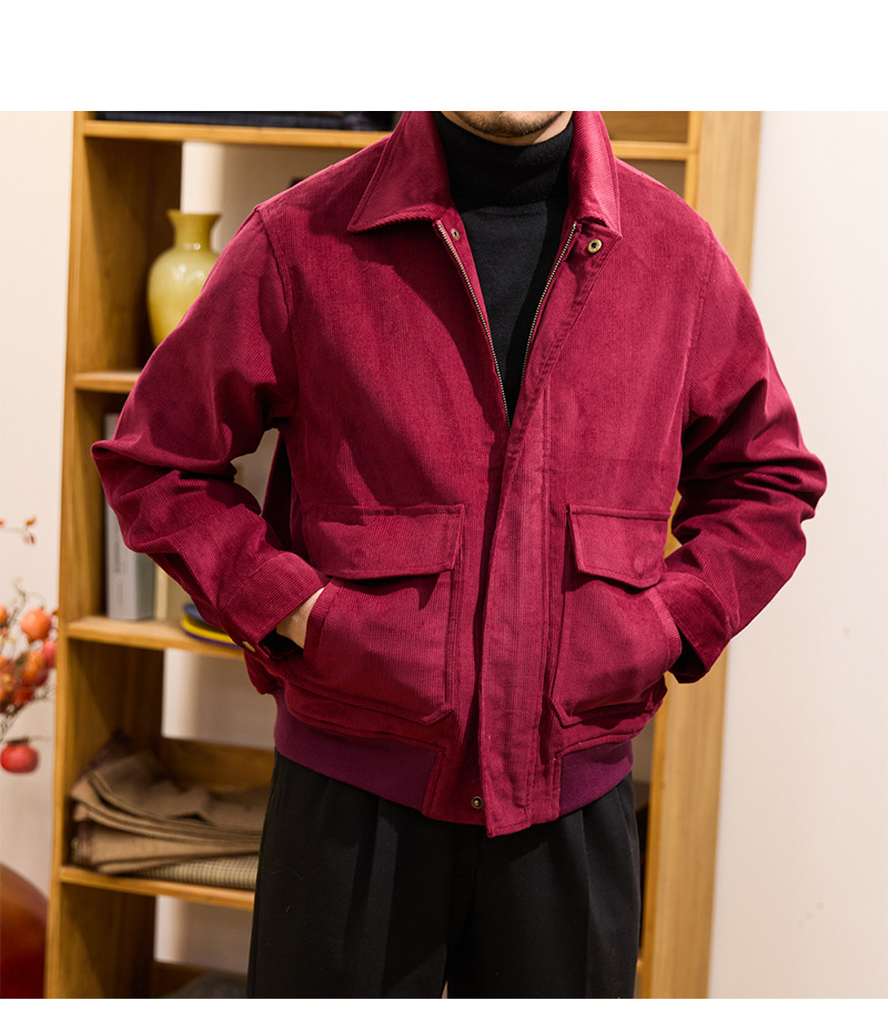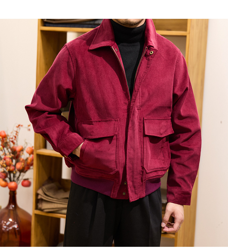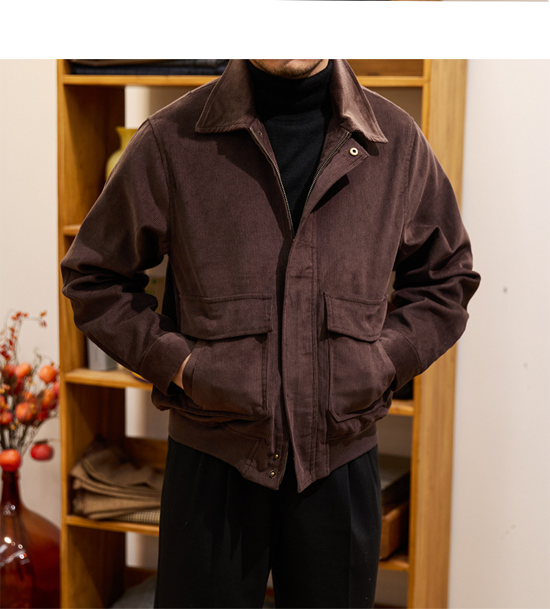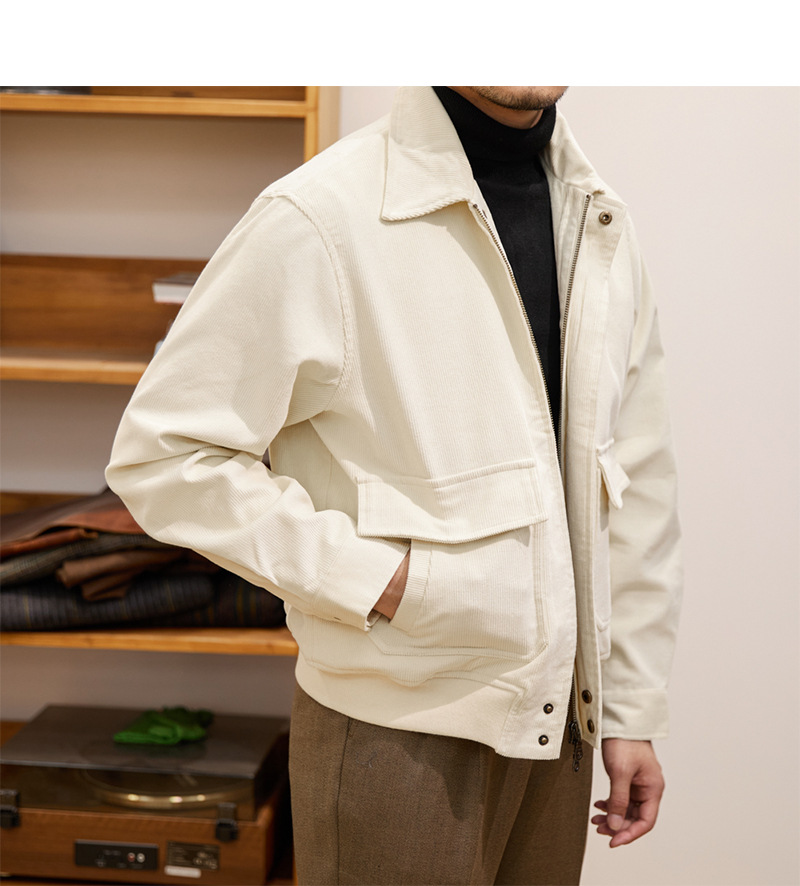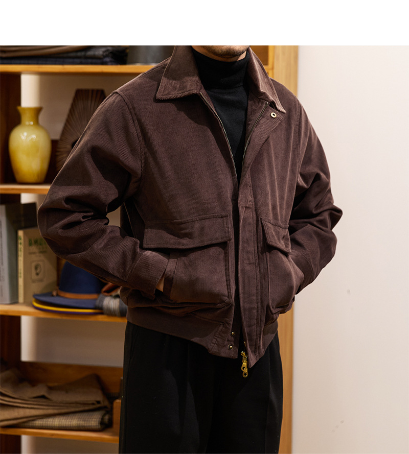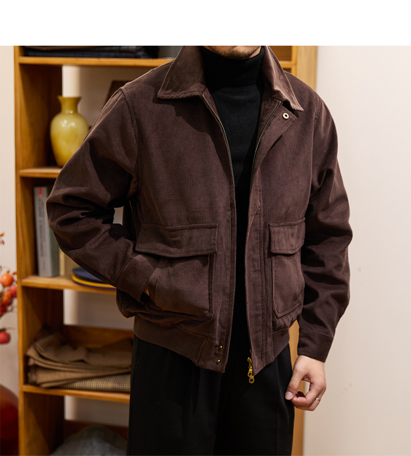 공장 직판 카키색 윈드브레이커 재킷 가을 겨울 캐주얼 남성용 코듀로이 라펠 정장 재킷 트렌디 레트로스토어 가기