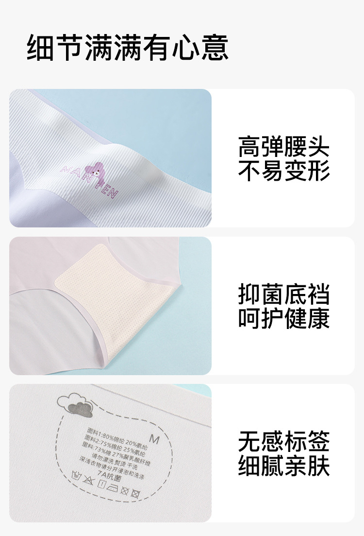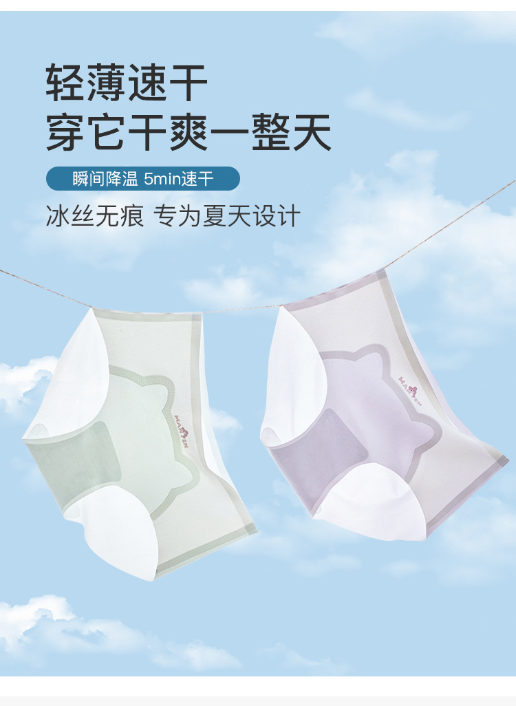 발달 기간 7A 항균 속옷 폴리 락트산 원활한 얼음 실크 시원한 느낌 여름 얇은 통기성 소녀 청소년 학생 삼각형스토어 가기