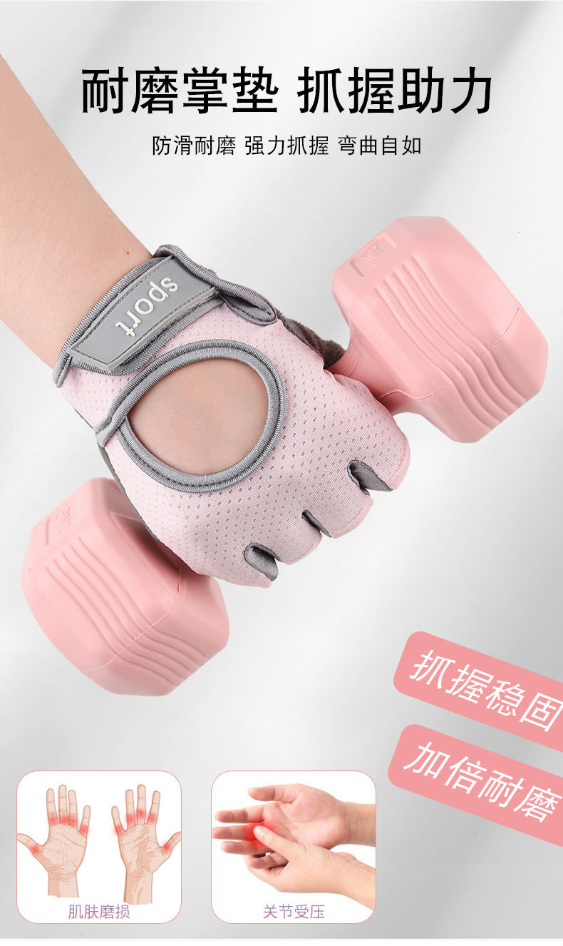 스포츠 피트니스 하프 핑거 장갑 여성용 미끄럼 방지 팜 패드 충격 반 손가락 철 요가 아이스 실크 통기성 착용 방지 피트니스