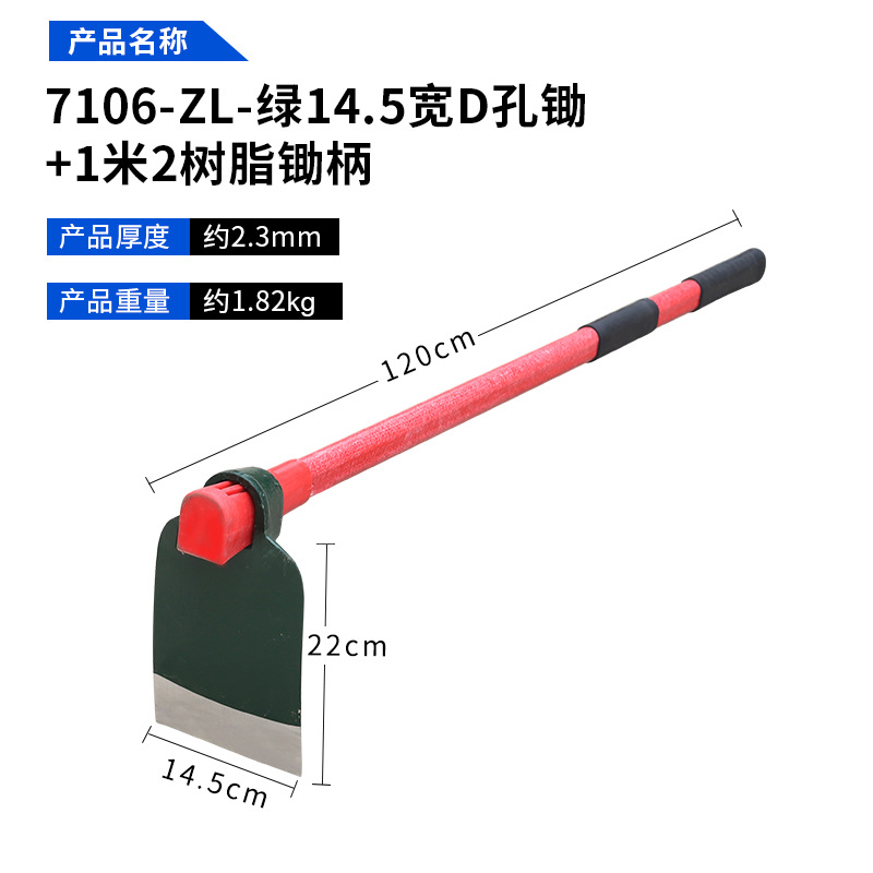 • 7106-ZL-녹색 14.5 와이드 D 홀 호미 + 1.2m 수지 호미 손잡이