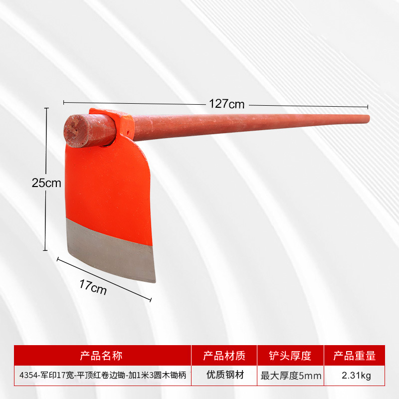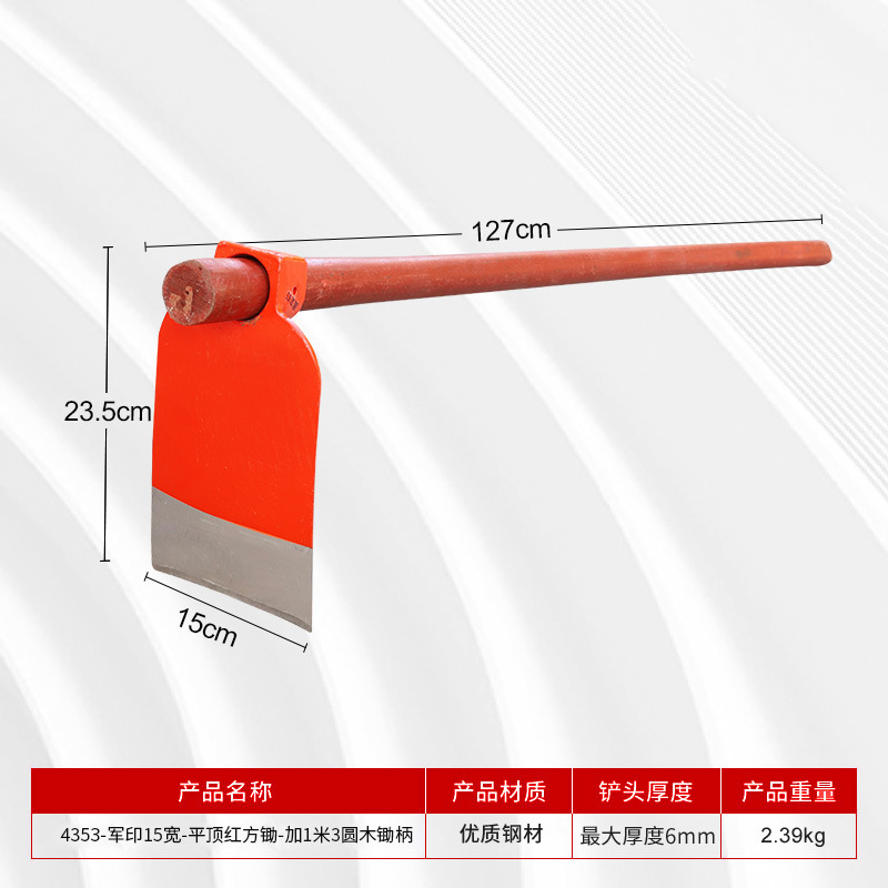 • 4353-군용 인쇄 15 와이드 플랫 탑 빨간색 사각형 이 + 1.3m 둥근 나무 이 핸들