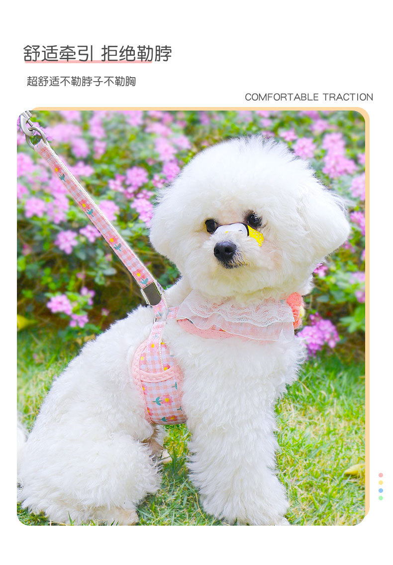 개 가죽 끈 걷는 개 체인 작은 개 인터넷 인기있는 애완 동물 가슴 끈 테디 보 미비 곰 강아지 가죽 끈스토어 가기