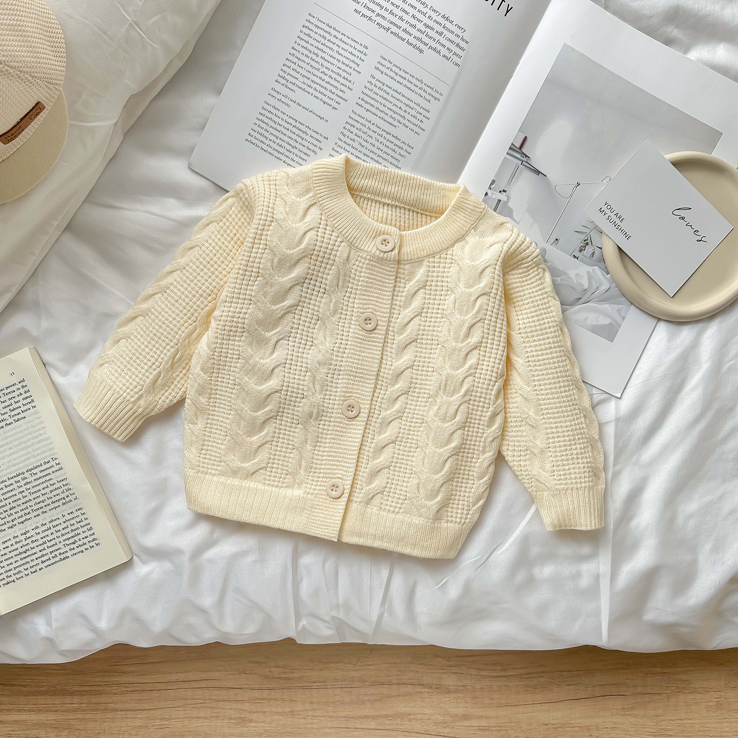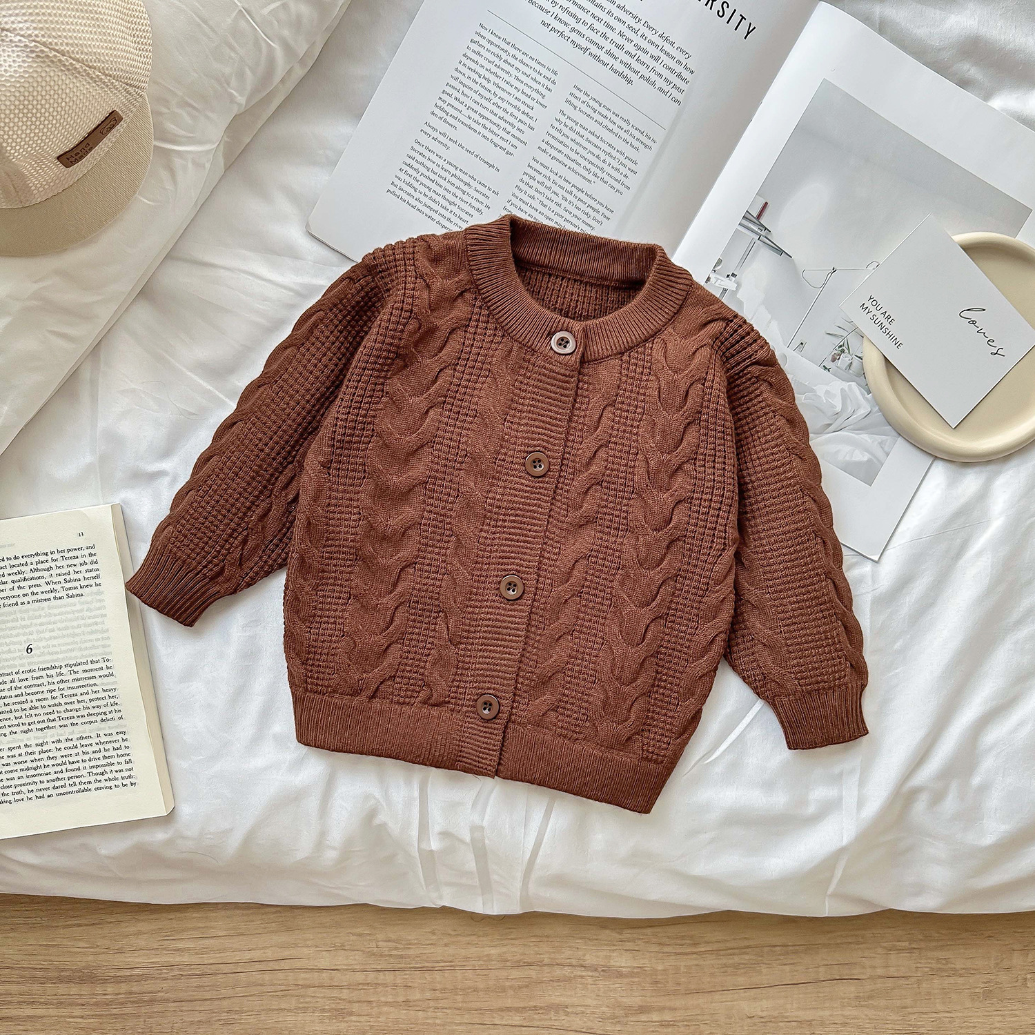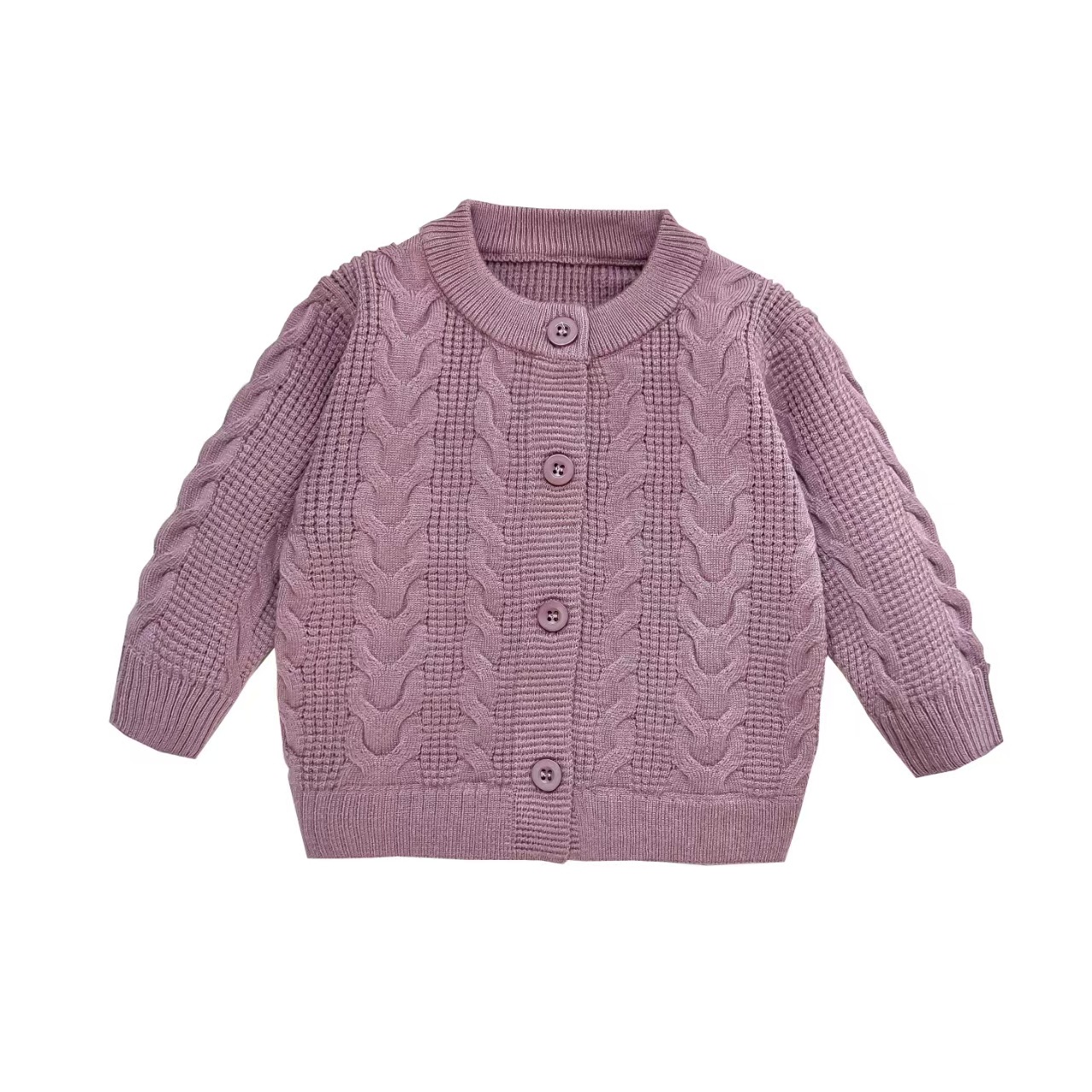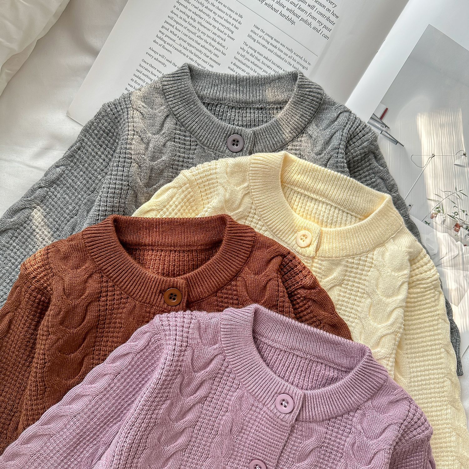 라이브 공급 2024 새로운 어린이 스웨터 봄 아기 둥근 목 트위스트 코트 소년 소녀 니트 카디건