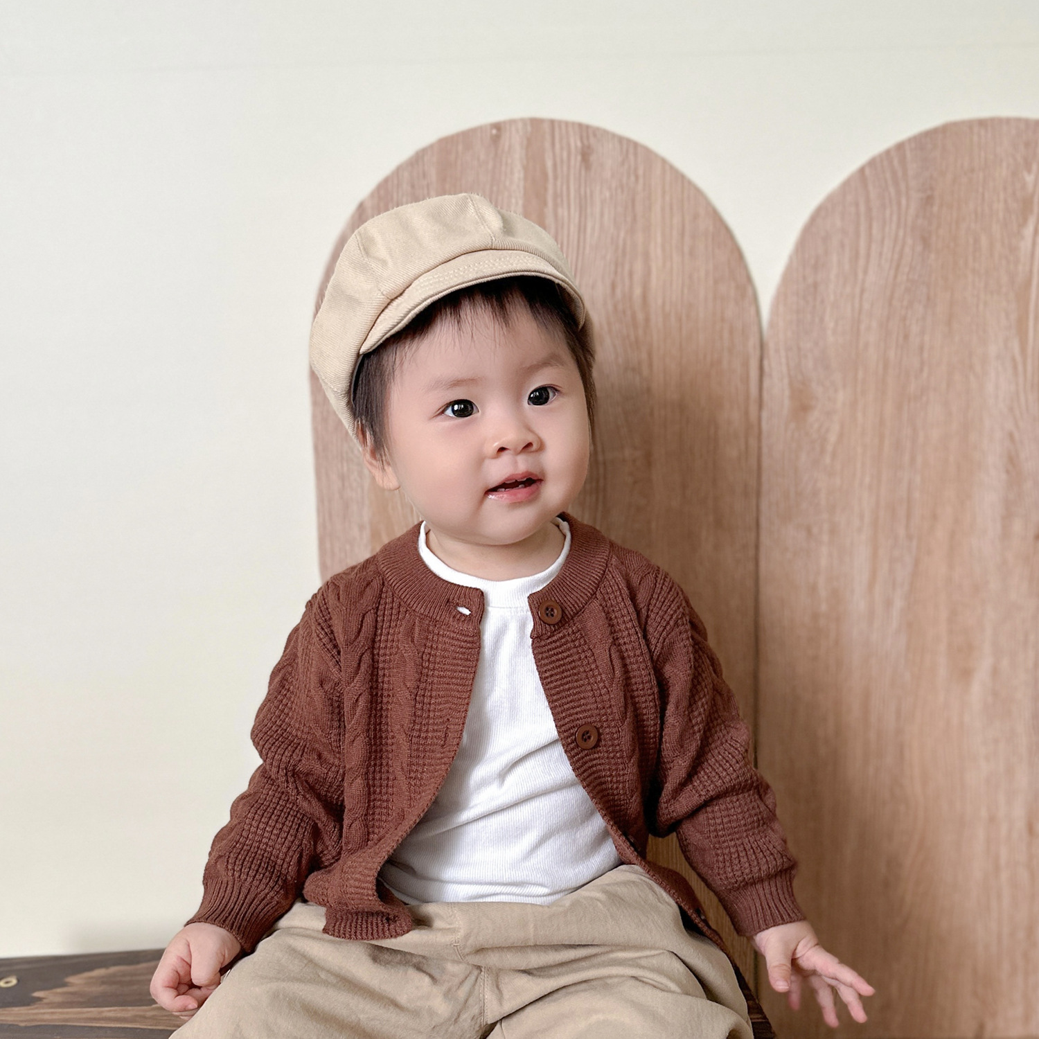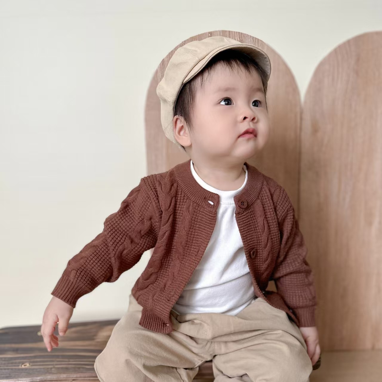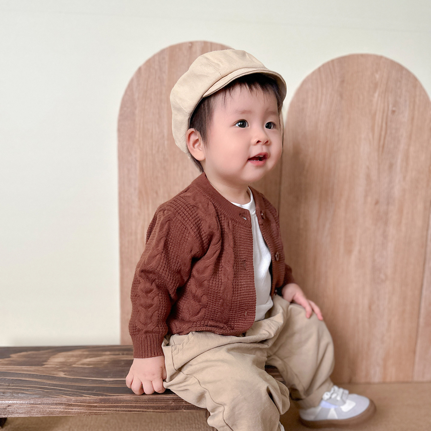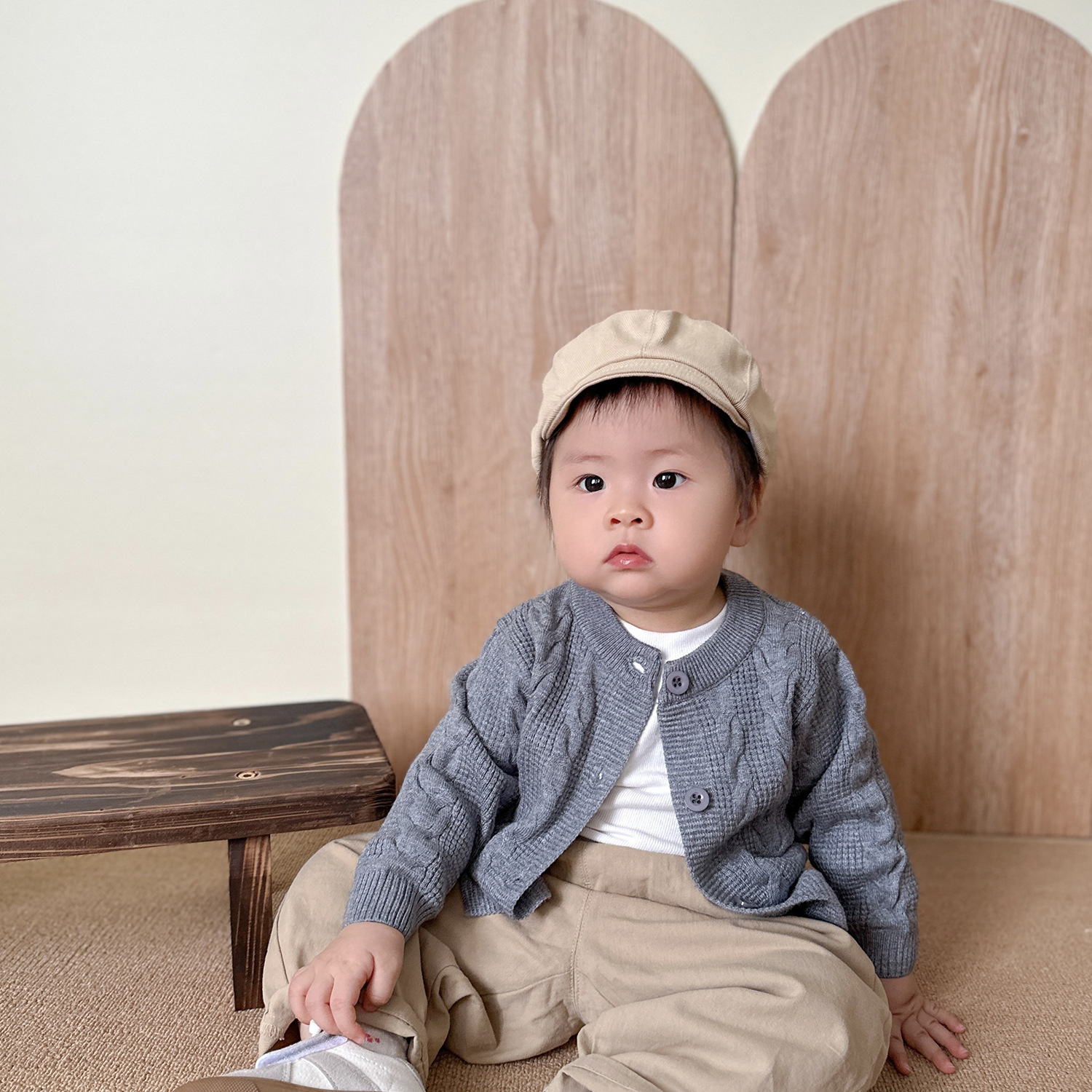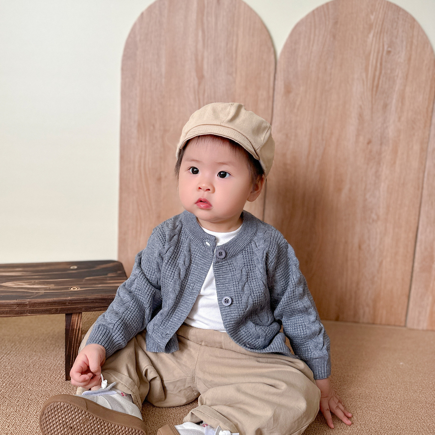 라이브 공급 2024 새로운 어린이 스웨터 봄 아기 둥근 목 트위스트 코트 소년 소녀 니트 카디건