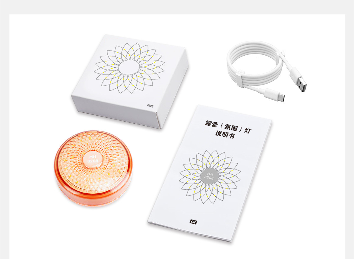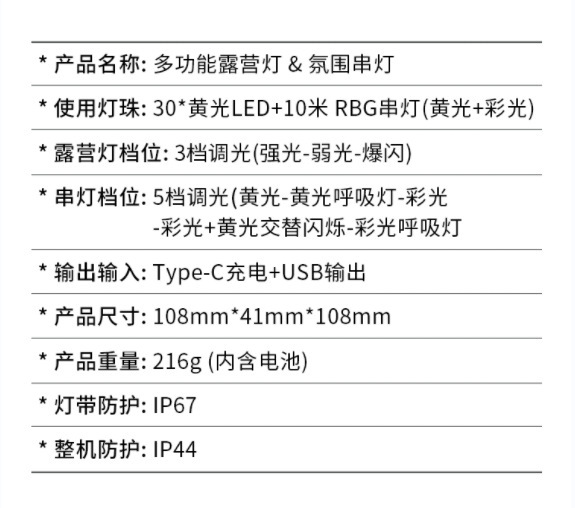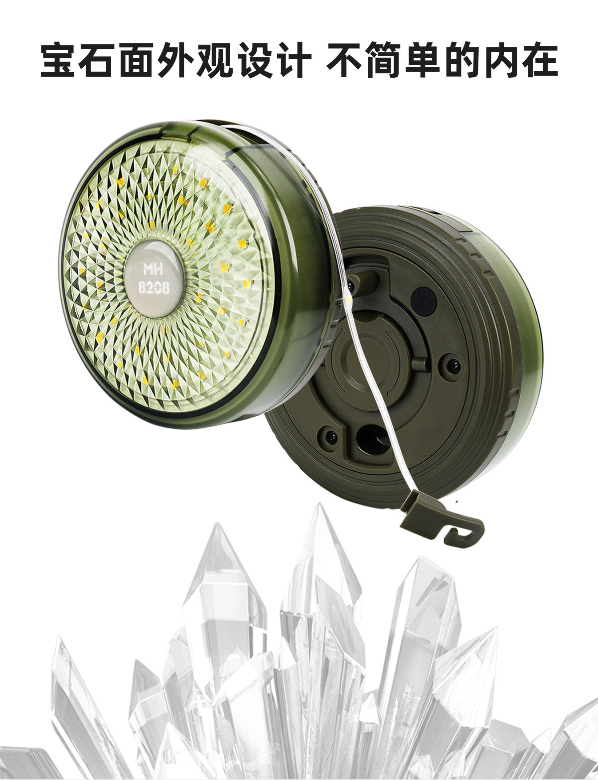국경 간 새로운 LED 캠핑 램프 USB 충전식 야외 텐트 다채로운 분위기 끈 램프 테이프 측정 저장 캠핑 램프