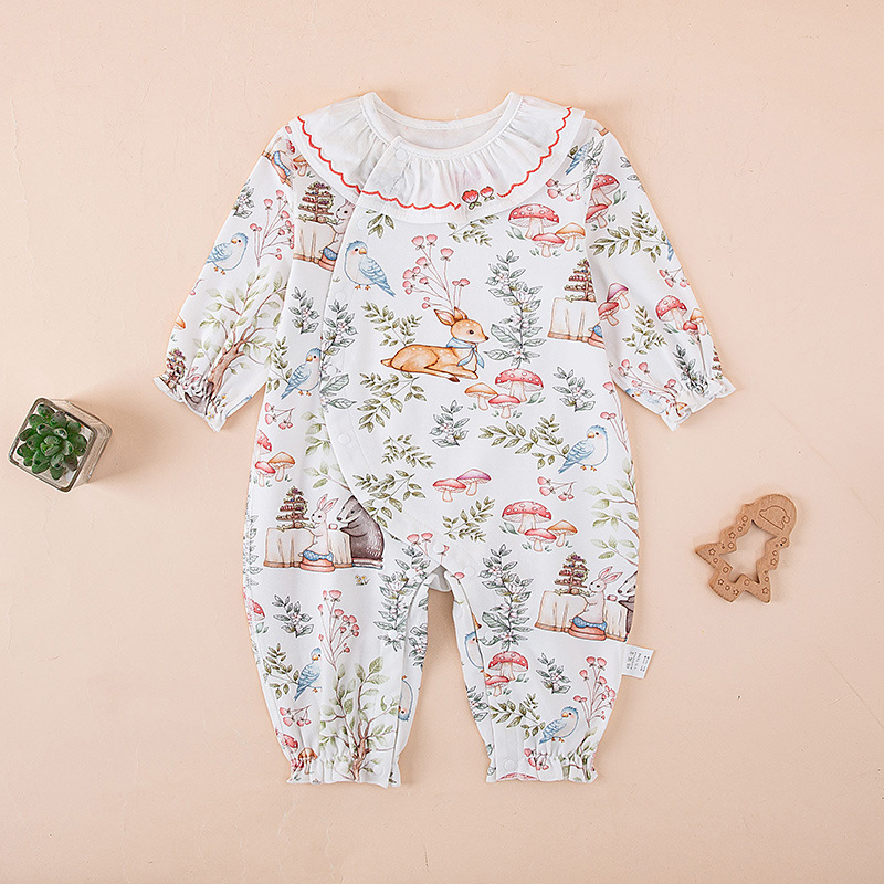아기 소녀의 원피스 옷 봄과 가을 외부 착용 귀여운 작은 공주 스타일 긴팔 뼈없는 면 아기 등반 옷