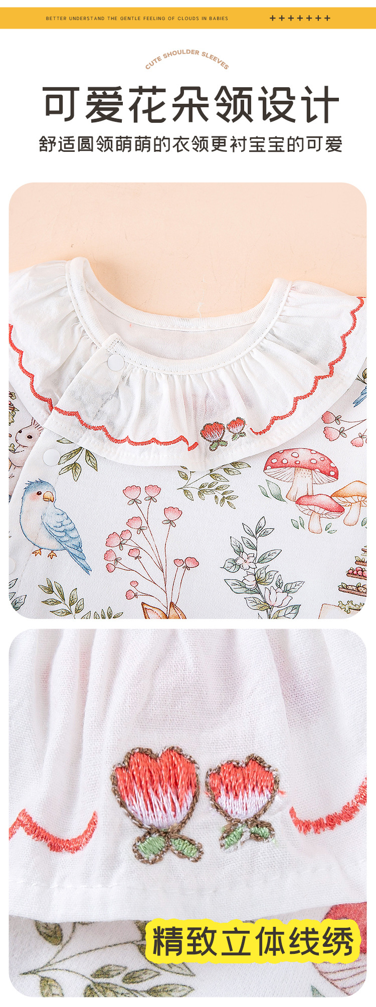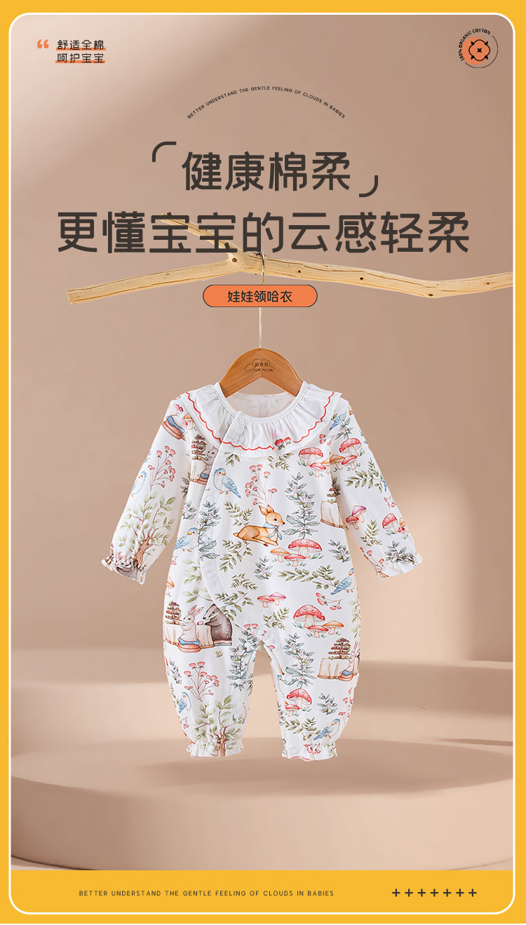 아기 소녀의 원피스 옷 봄과 가을 외부 착용 귀여운 작은 공주 스타일 긴팔 뼈없는 면 아기 등반 옷스토어 가기