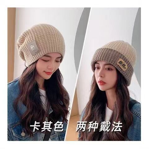 새 양모 모자 여자 가을 · 겨울 한국식 올매치 플레인 라벨 따뜻한 콜드 햇 블랙 두꺼운 양면 니트 모자