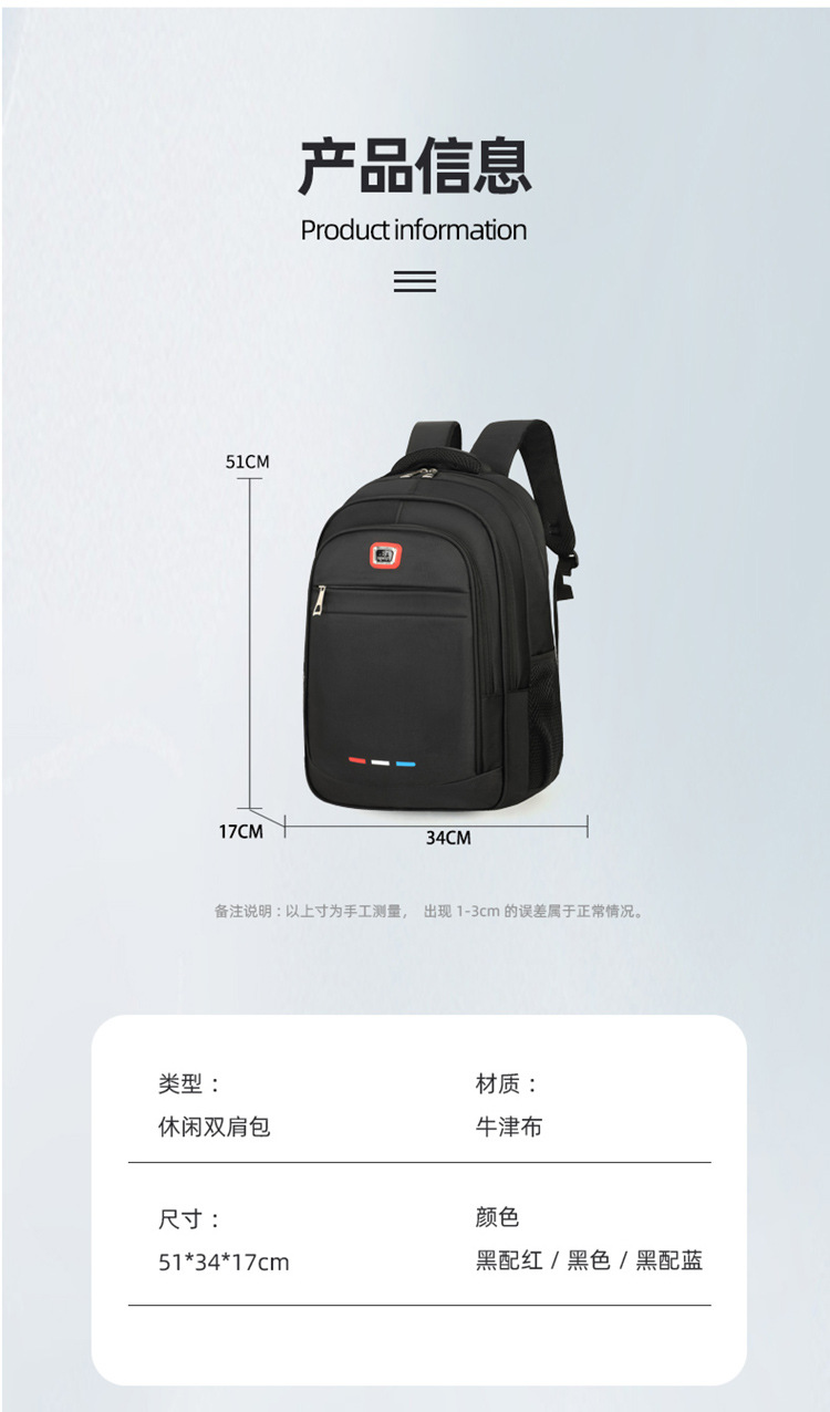 남성과 여성을위한 국경 배낭 중학교 고등학교 고등학생 옥스포드 헝겊 Schoolbag 대용량 여행 배낭 컴퓨터 배낭