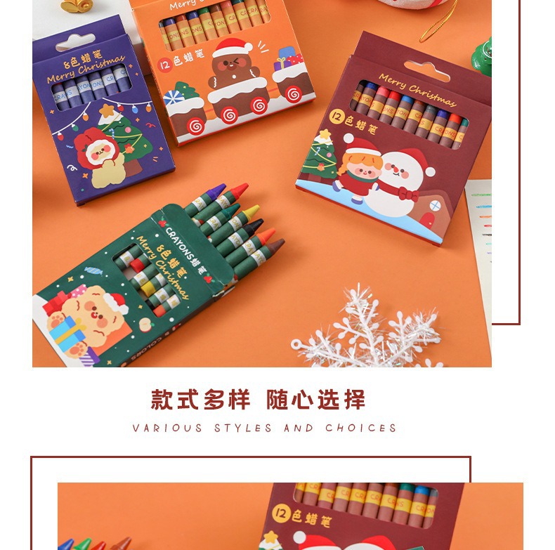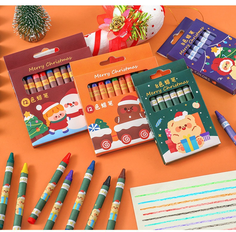 크리스마스 8 색 12 색 크레용 세트 어린이 만화 색칠 펜 아트 유화 펜 크리스마스 활동 작은 선물스토어 가기