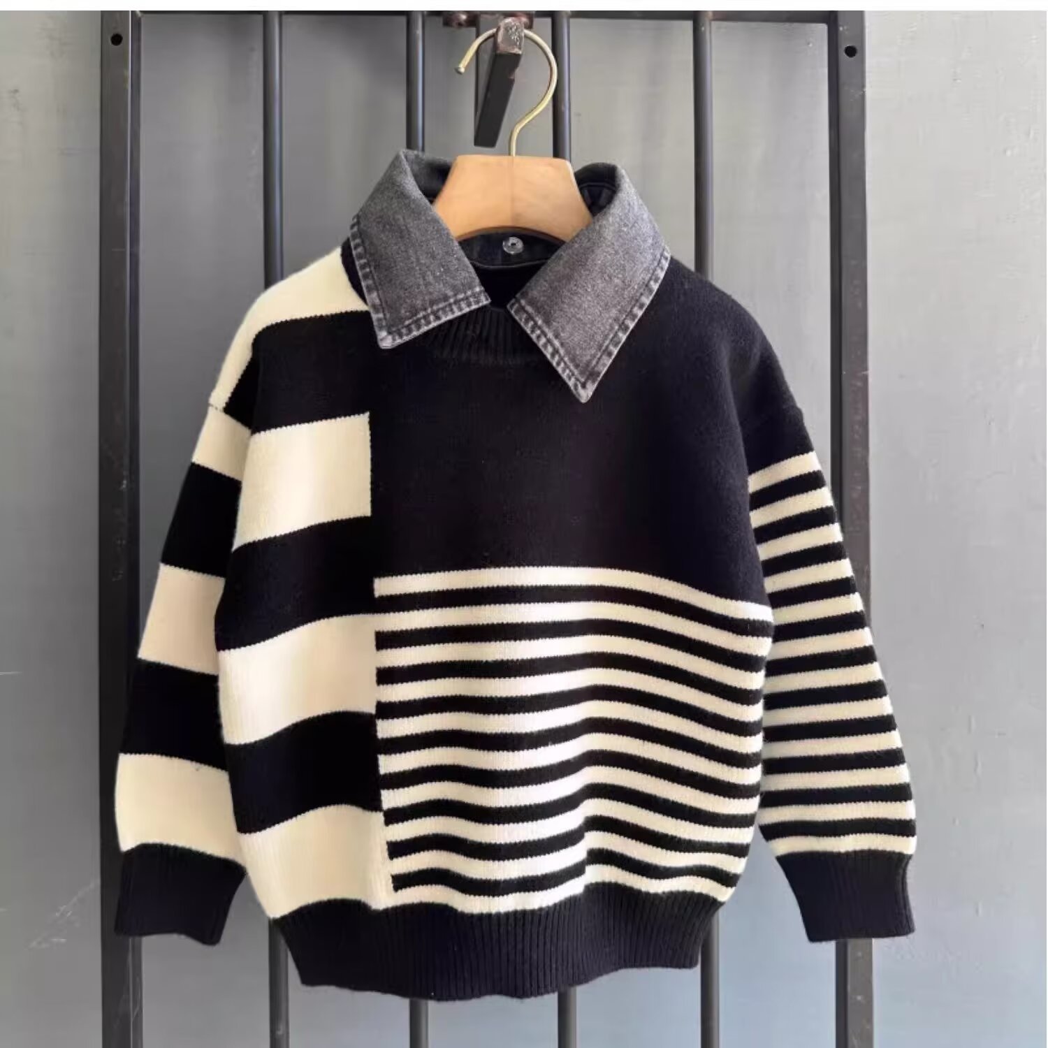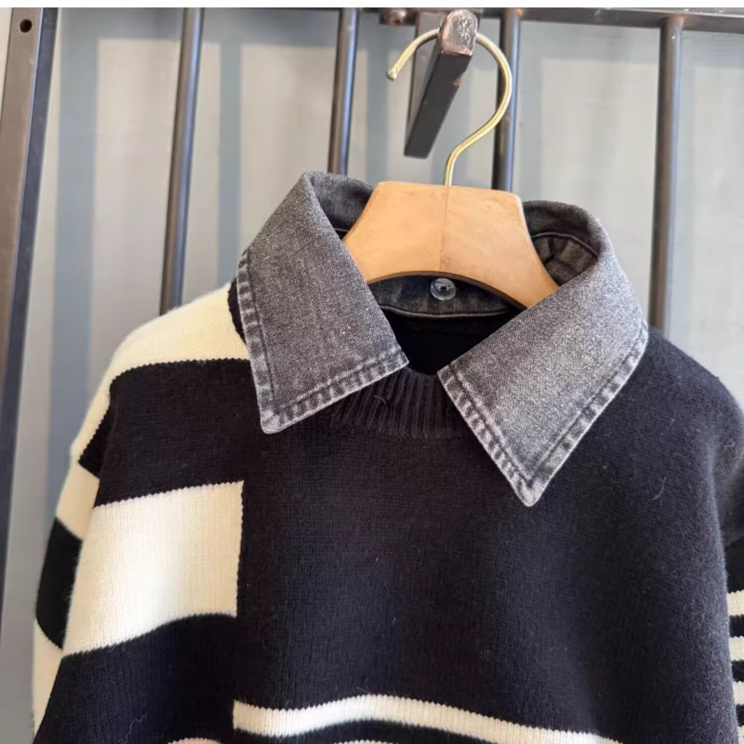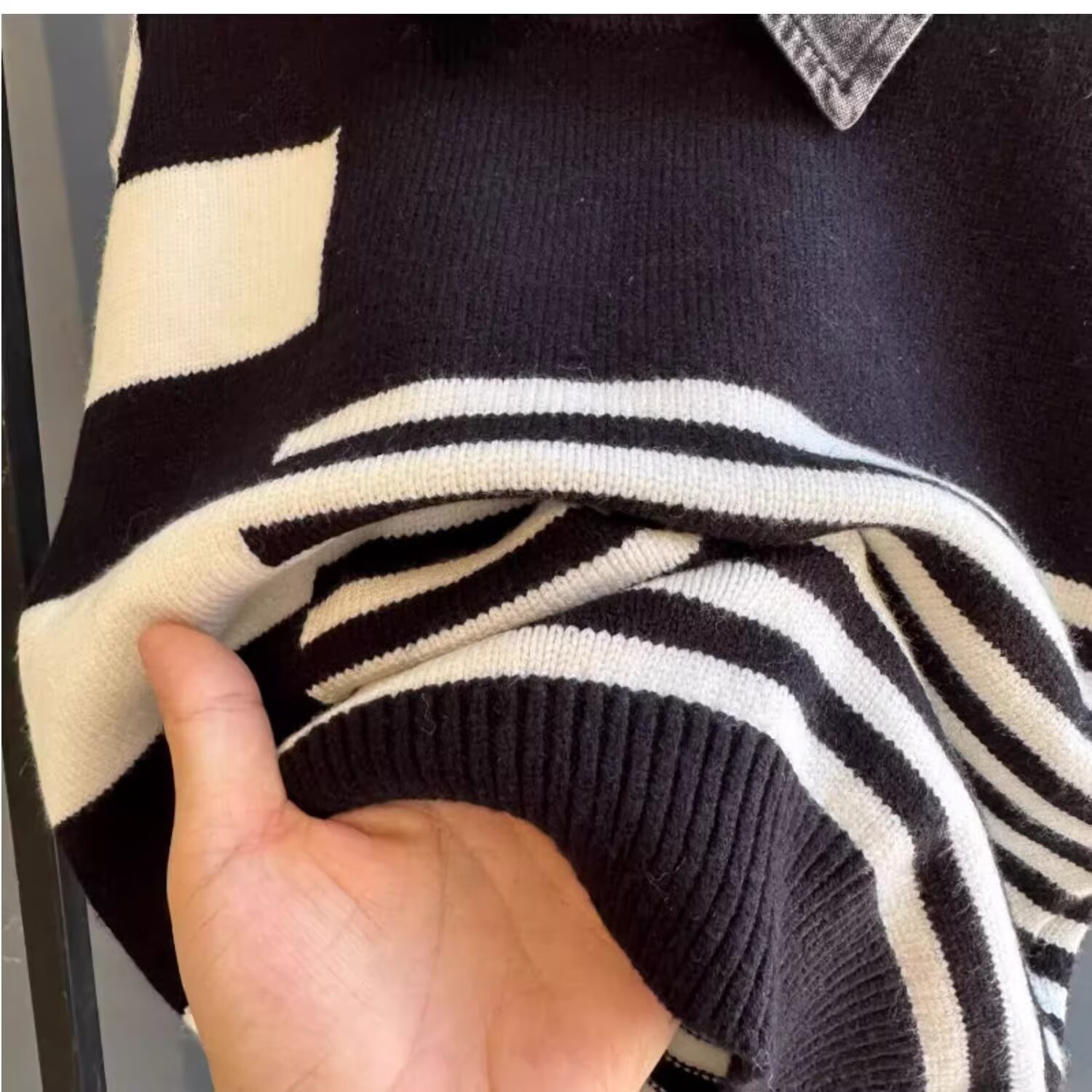 2024 가을과 겨울 2024 홍콩 스타일의 새로운 따뜻한 스웨터 패션 브랜드 컬러 매칭 라운드 넥 캐주얼 올 매치스토어 가기