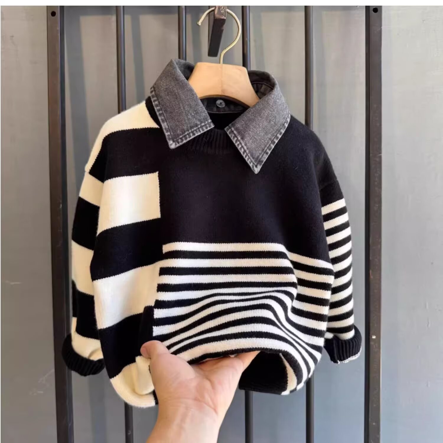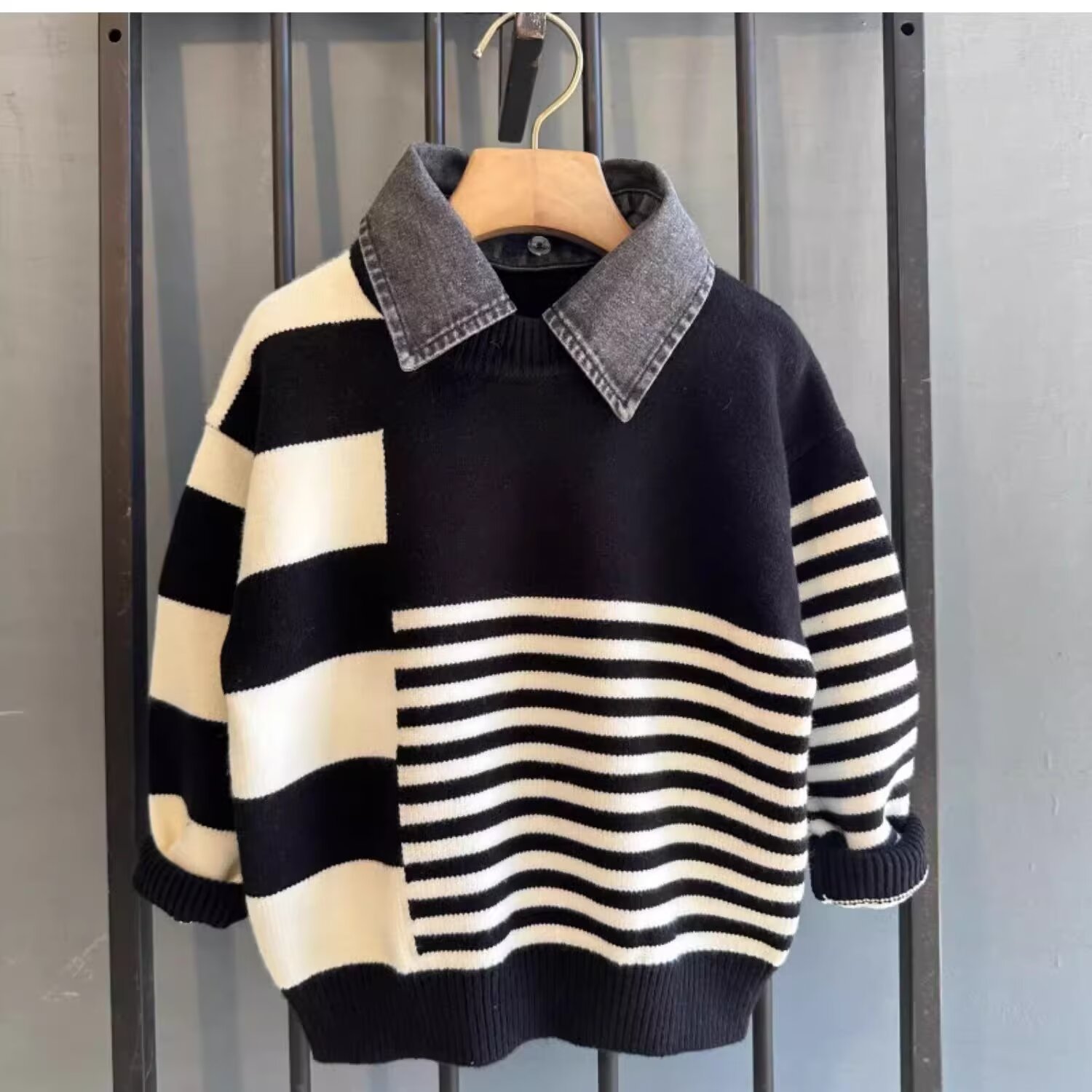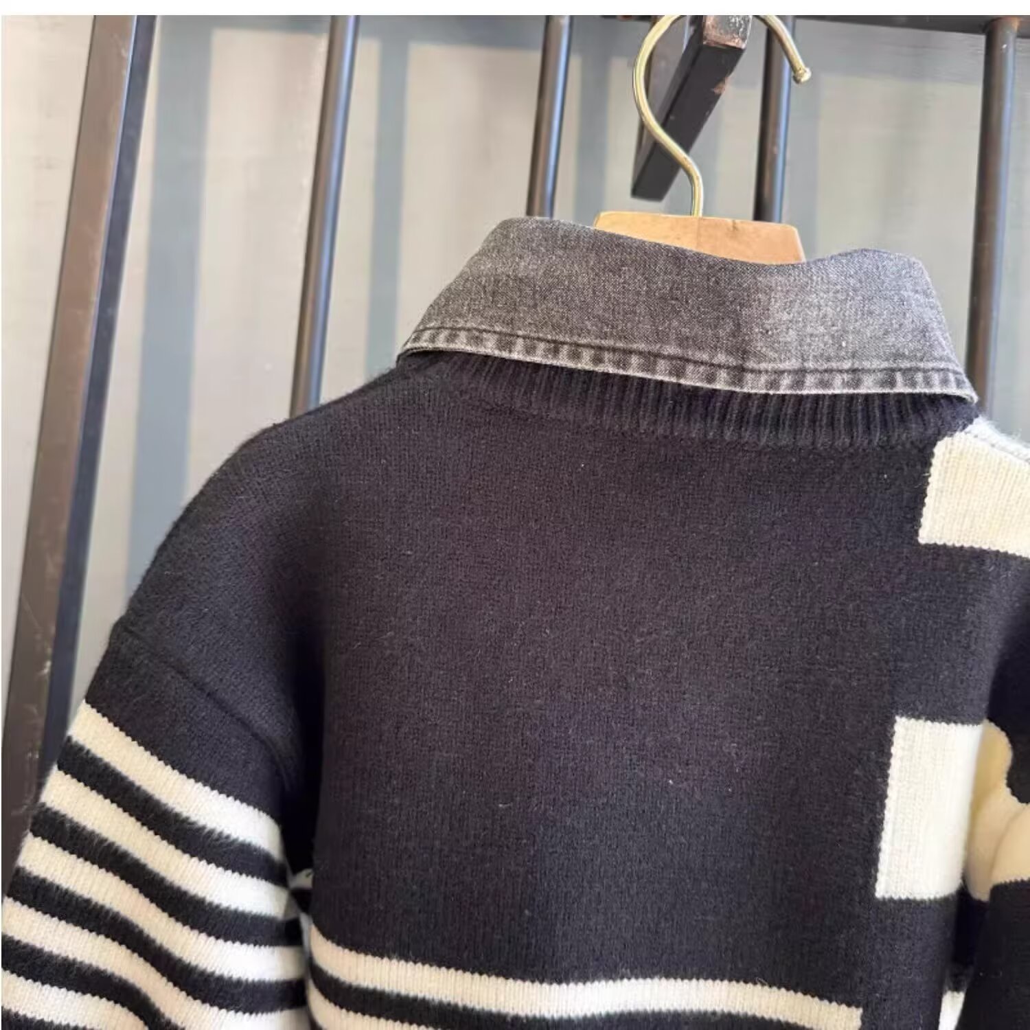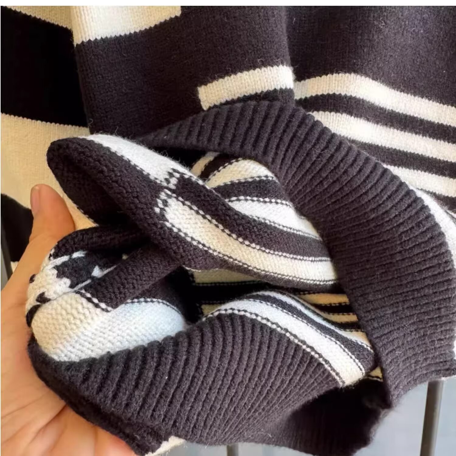 2024 가을과 겨울 2024 홍콩 스타일의 새로운 따뜻한 스웨터 패션 브랜드 컬러 매칭 라운드 넥 캐주얼 올 매치스토어 가기