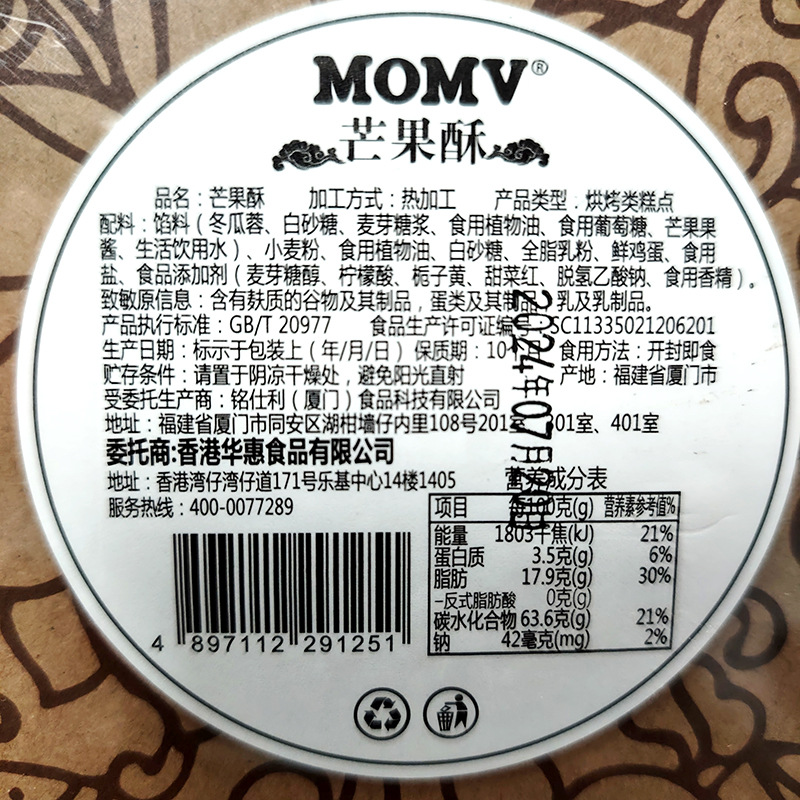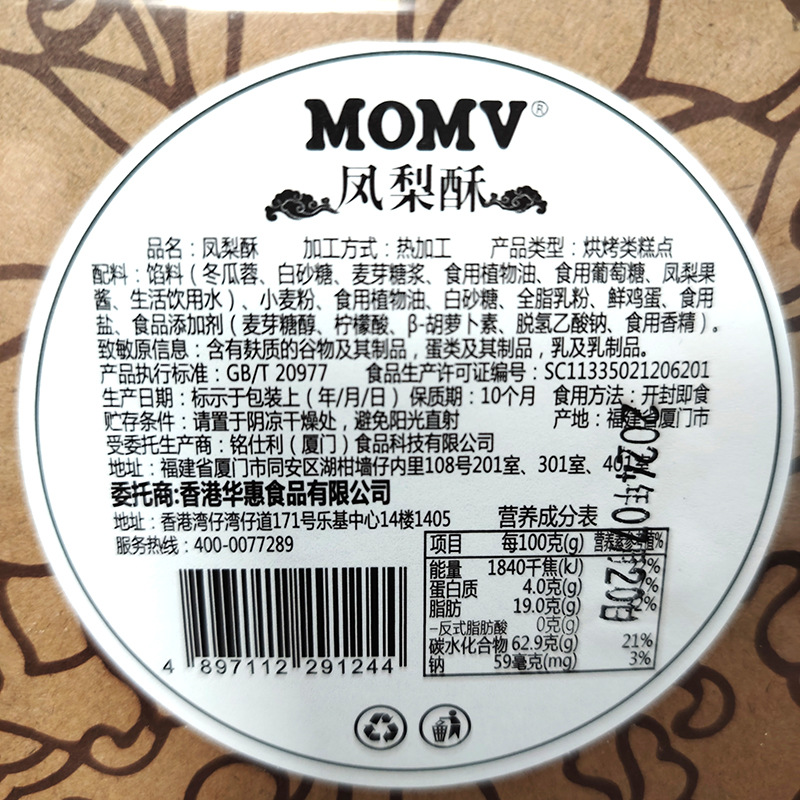 MOMV 라운드 박스 파인애플 크리스프 듀리안 크리스프 망고 크리스프 크랜베리 크리스프 애프터눈 티 스낵 200g 박스 동반식