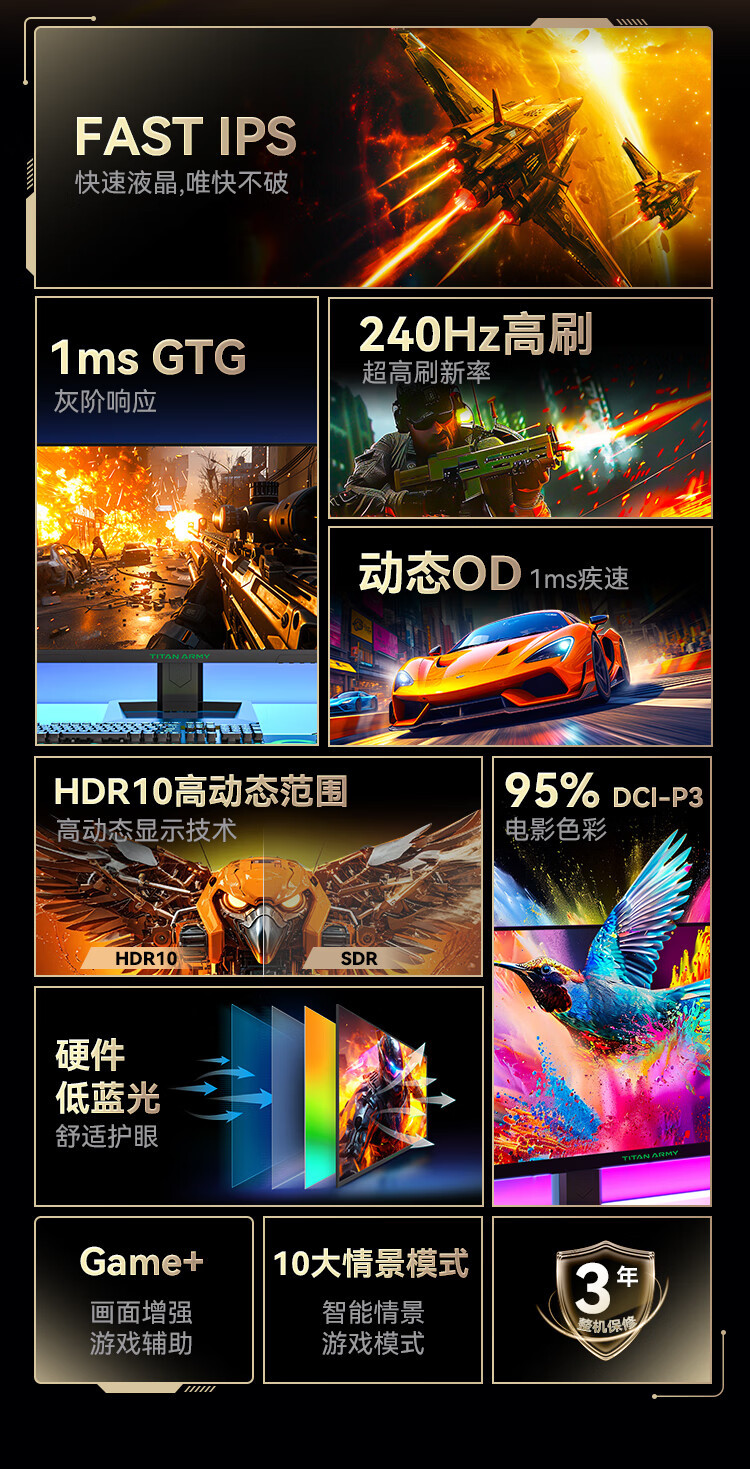 Titan Legion P2510H-PRO+ 24.5인치 300hZ 게이밍 모니터 IPS LCD 1MS 화면 회전