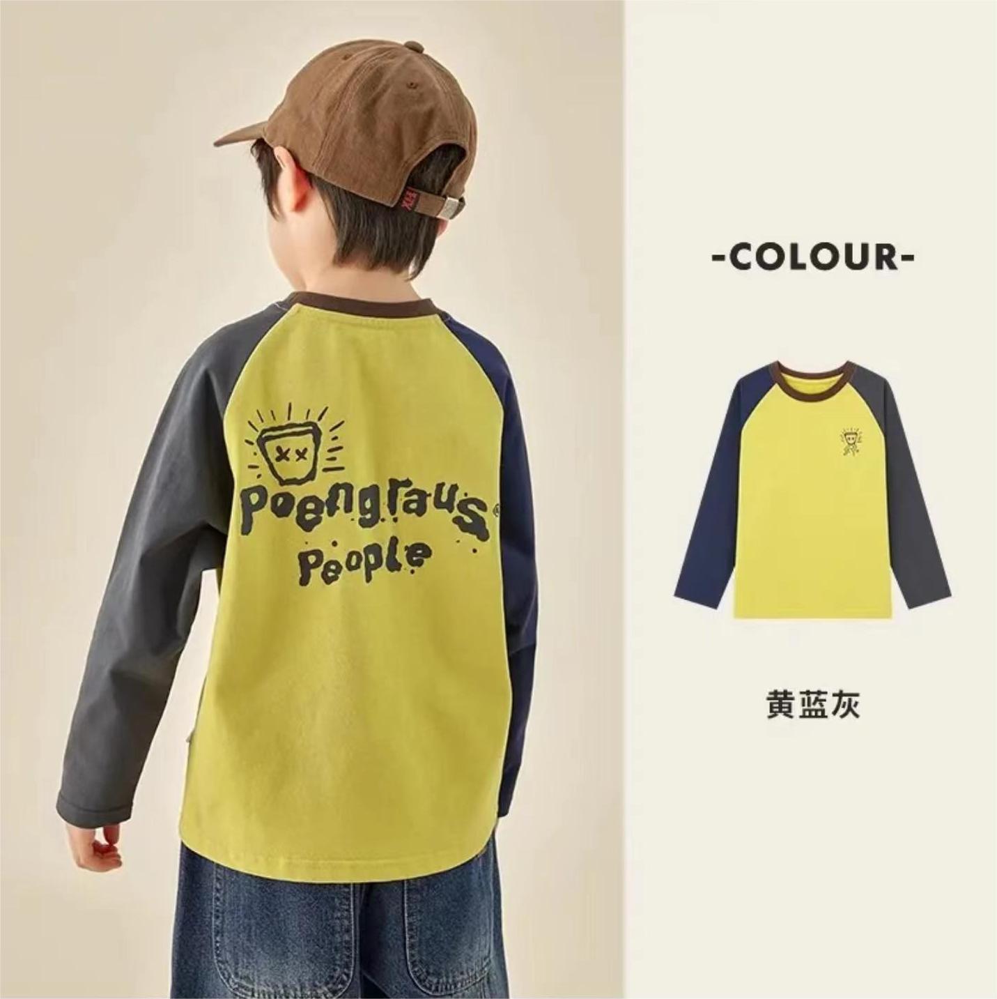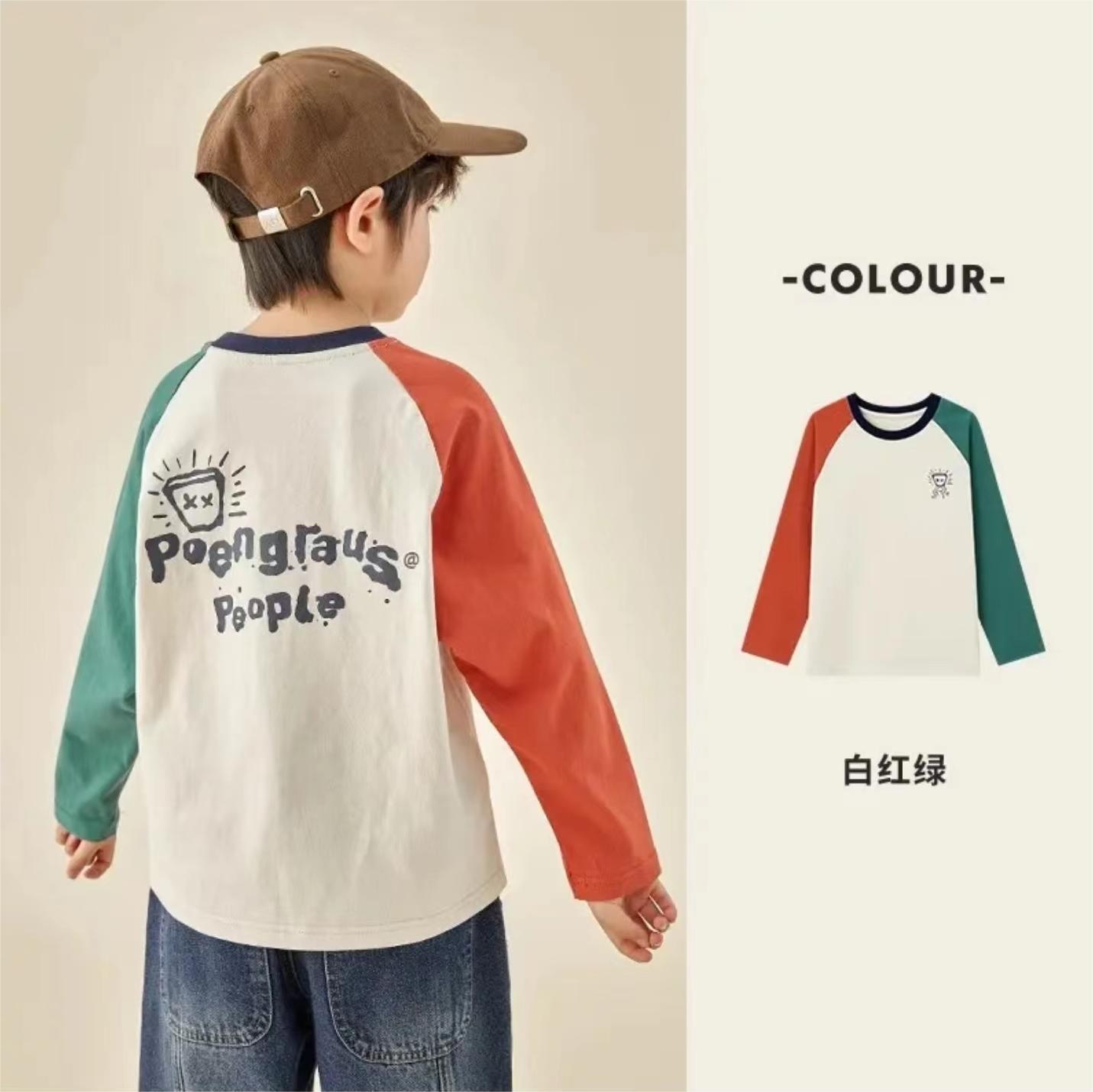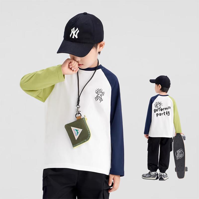 아동용 순면 티셔츠 봄, 가을 남아용 라글란 긴팔 캐주얼 중대형 아동용 스웨트 셔츠 상의 면 100%스토어 가기