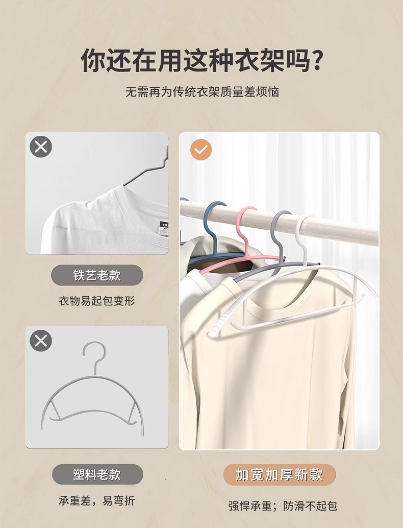 원활한 넓은 어깨 걸이 대담한 가정용 미끄럼 방지 의류 랙 성인 플라스틱 옷 랙 기숙사 학생 의류 지원스토어 가기