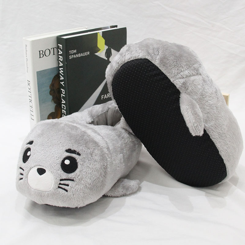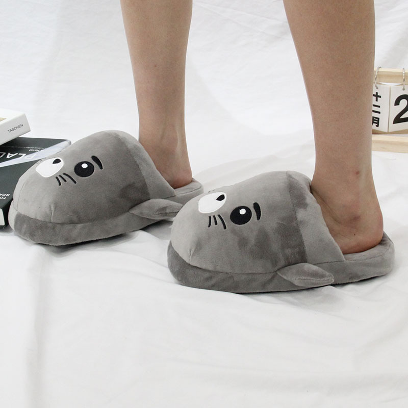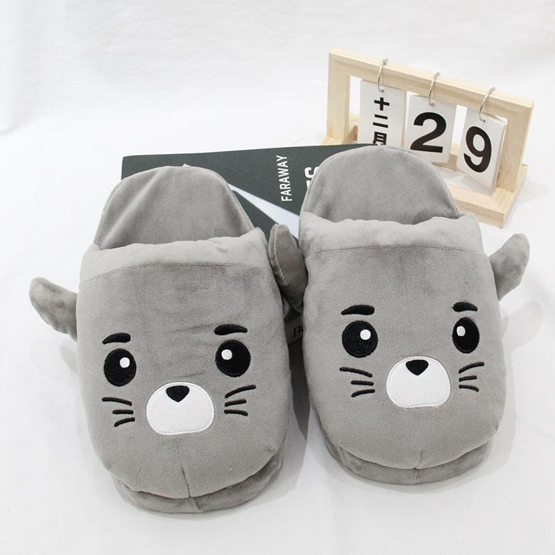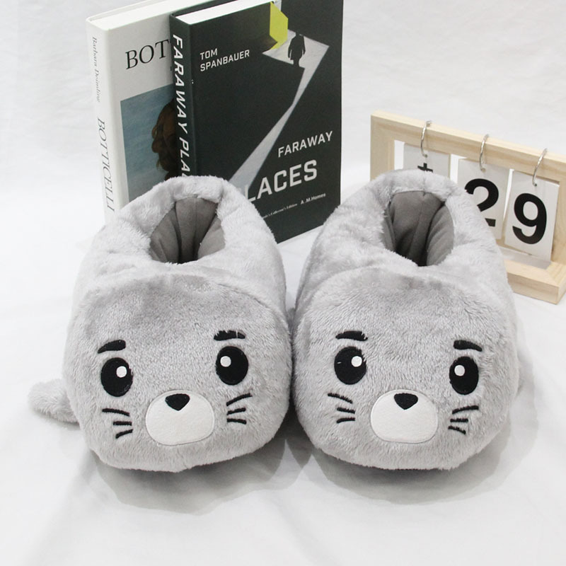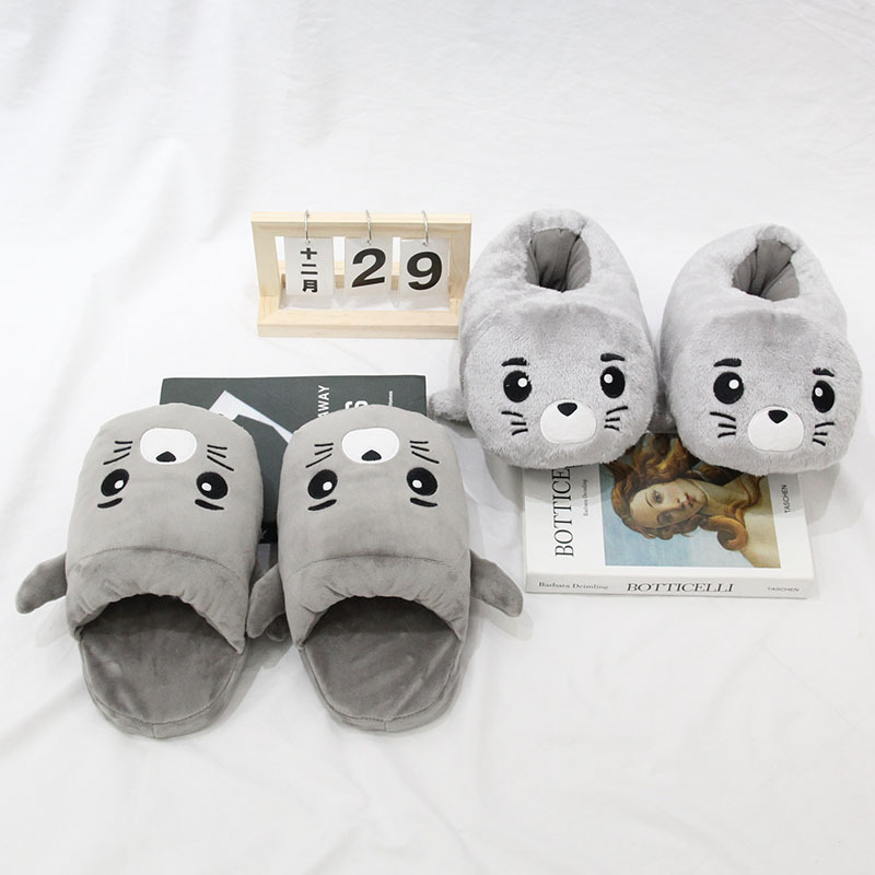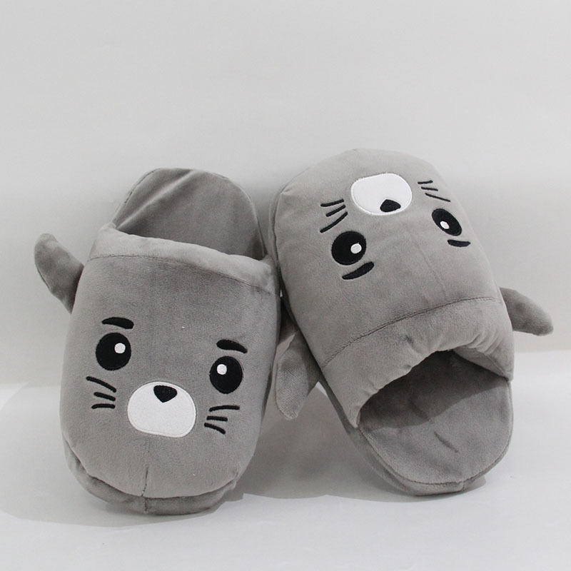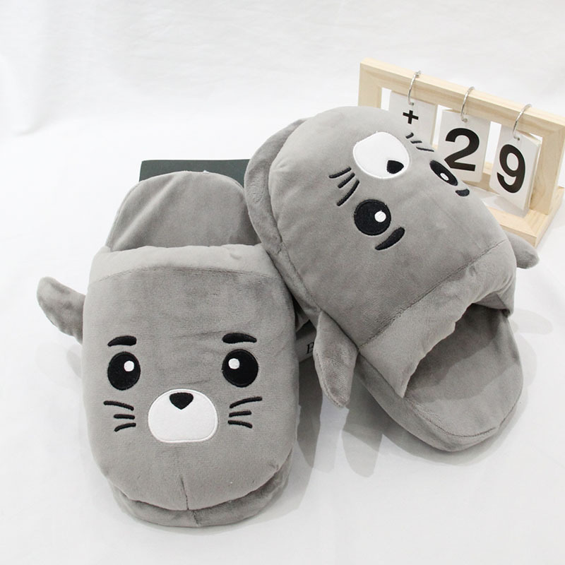 2024 만화 물개 및 수달 플러시 슬리퍼 수달 실내 홈 면화 슬리퍼 커플 가을, 겨울 따뜻한 면화 신발스토어 가기