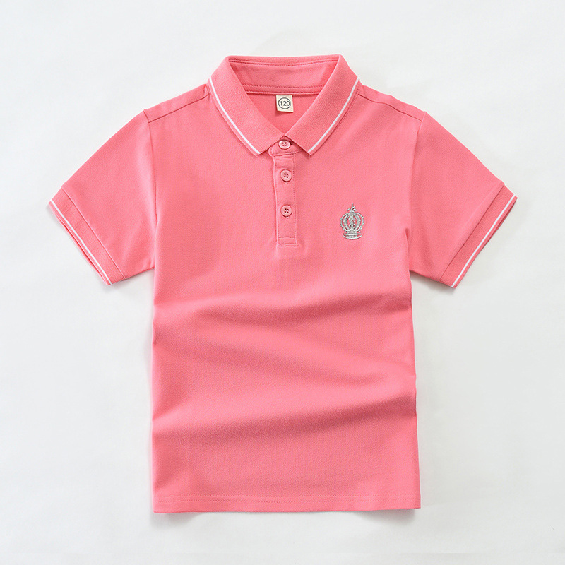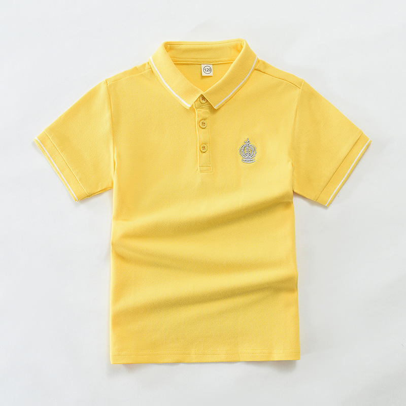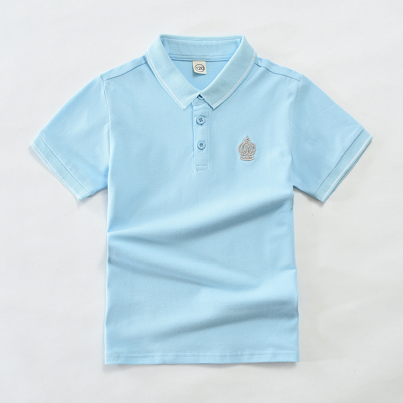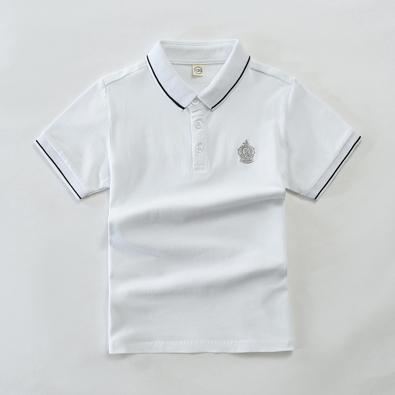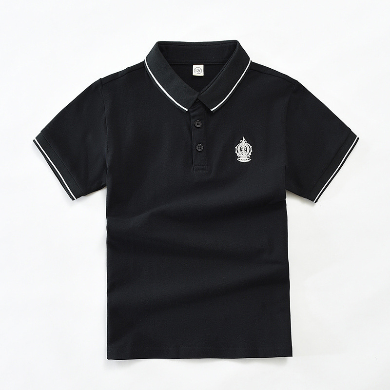 2024 한국 아동복 여름 어린이 옷깃 티셔츠 면 통기성 대학 스타일 소년 반팔 폴로 셔츠 여름 티셔츠