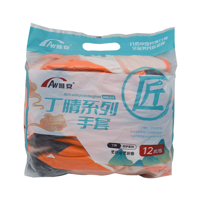 Wei An S606 13 핀 흰색 나일론 노란색 니트릴 반 교수형 장갑 내유성 내마모성 산 및 알칼리성 노동 보호 강화 손가락