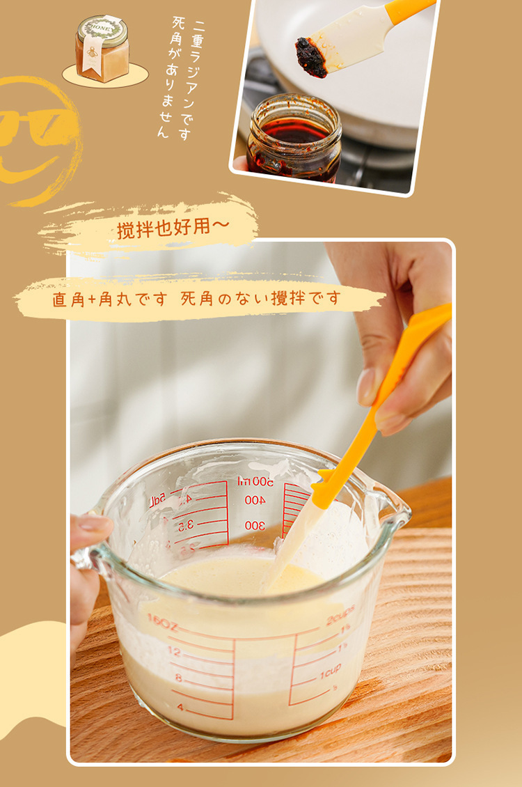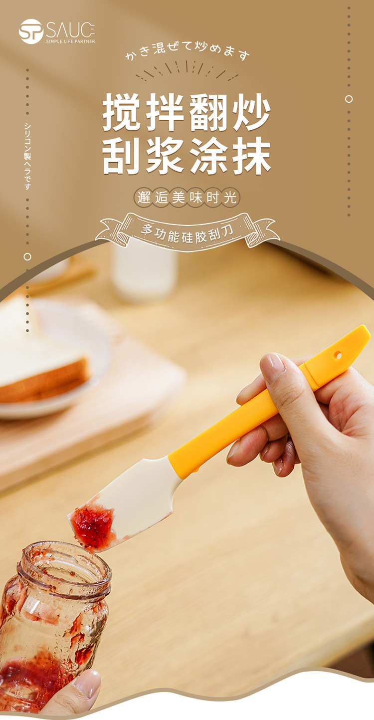 일본식 실리콘 주걱 베이킹 크림 다기능 소스 나이프 주방 미니 주걱 작은 주걱 부드러운 스크레이퍼 잼 병