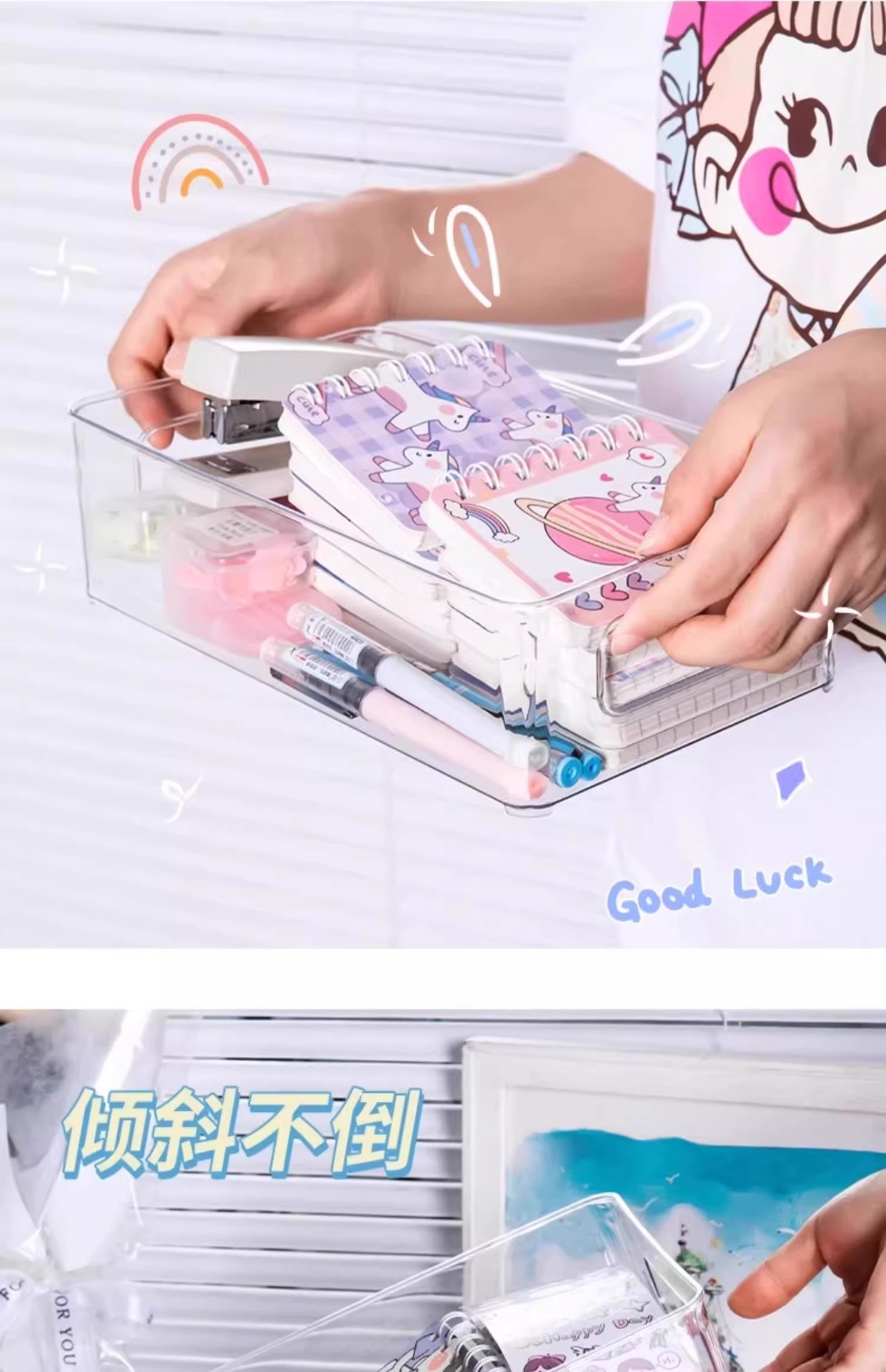 책 저장 상자 투명한 책 잡화 화장품 저장 바구니 학생 데스크톱 적합 상자 아크릴 저장 상자