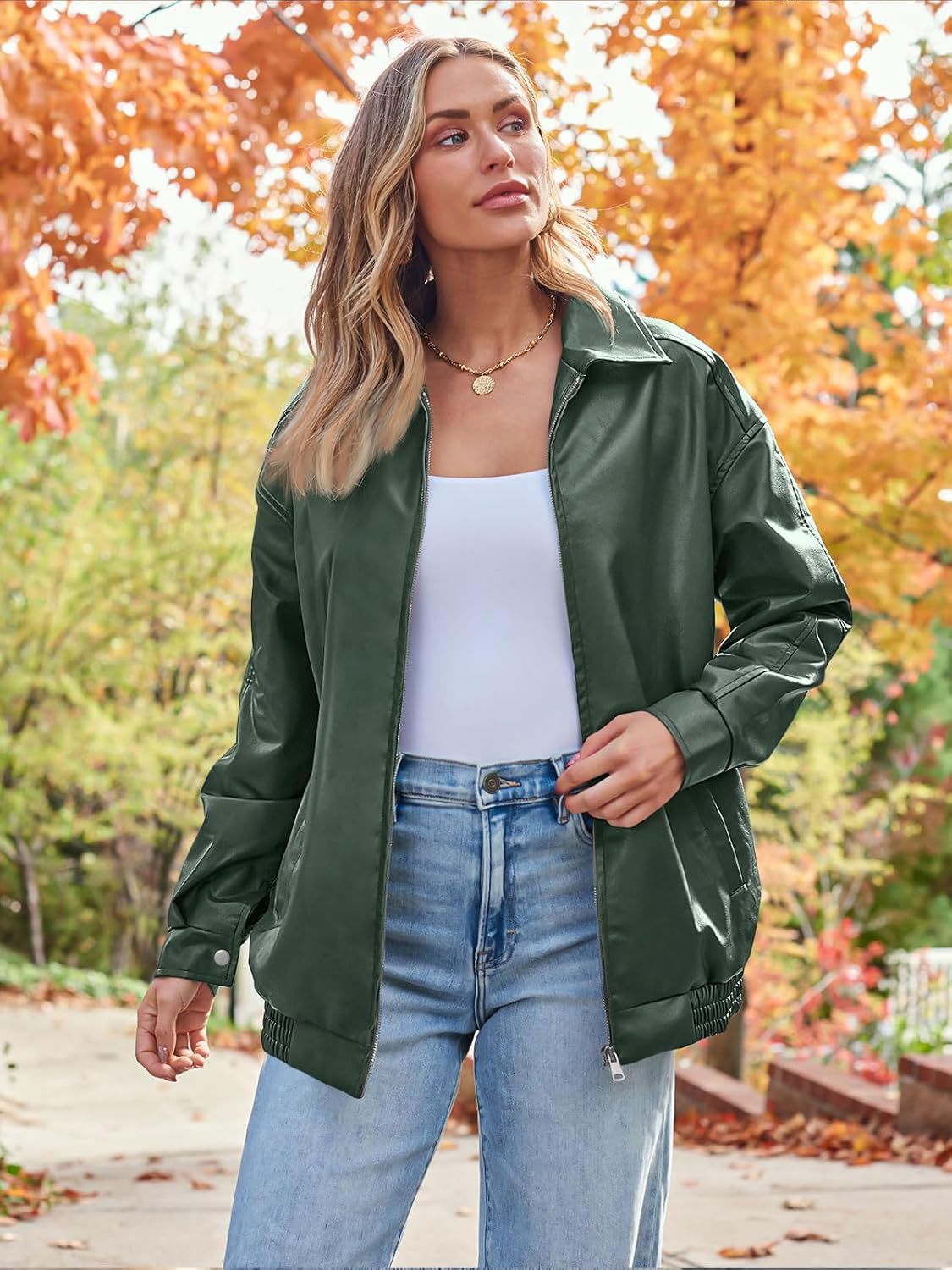 2024 유럽과 미국의 국경 새로운 여성 대형 가죽 오토바이 재킷 가을과 겨울 패션 느슨한 긴팔 오토바이 재킷스토어 가기