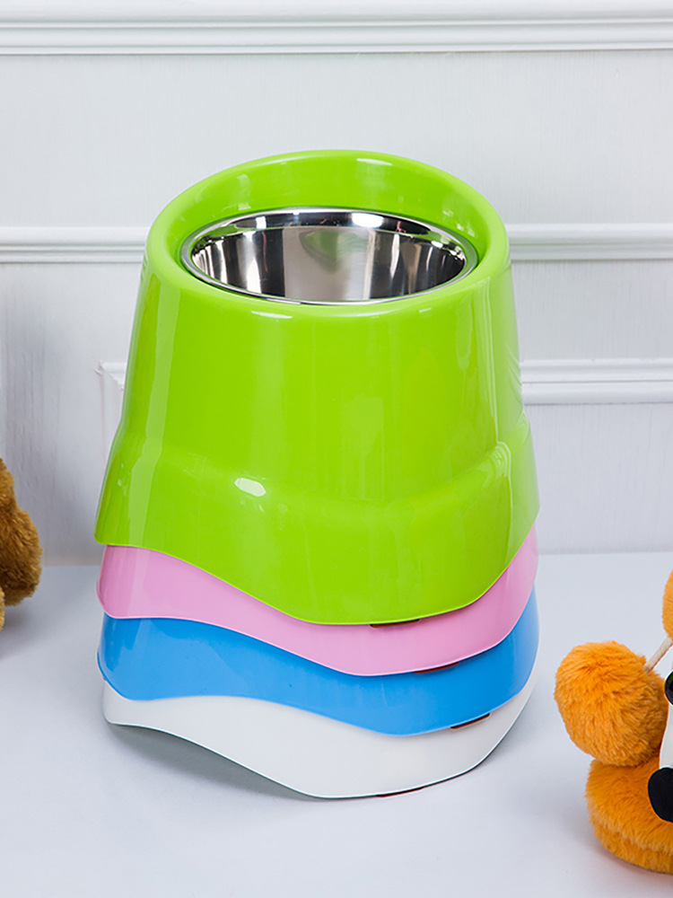2024 새로운 스테인레스 스틸 개 그릇 목 보호 애완 동물 그릇 큰 용량 먹이 물 개 쌀 분지 패션 컬러 고양이 그릇스토어 가기
