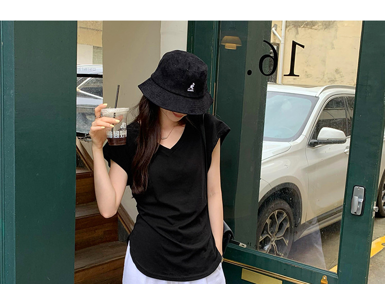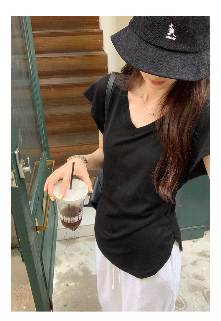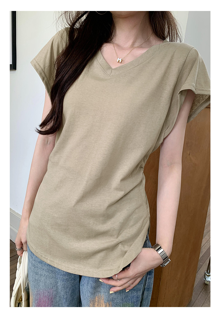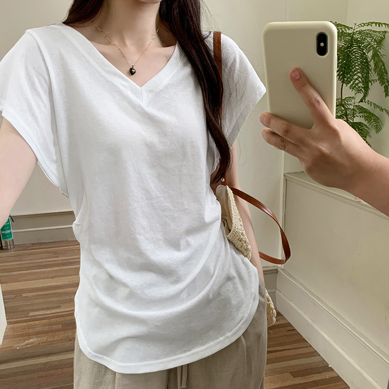 흰색 간단한 슬림 느슨한 주름 짧은 소매 티셔츠 여성 여름 미국 복고풍 작은 통근 의류 도매스토어 가기