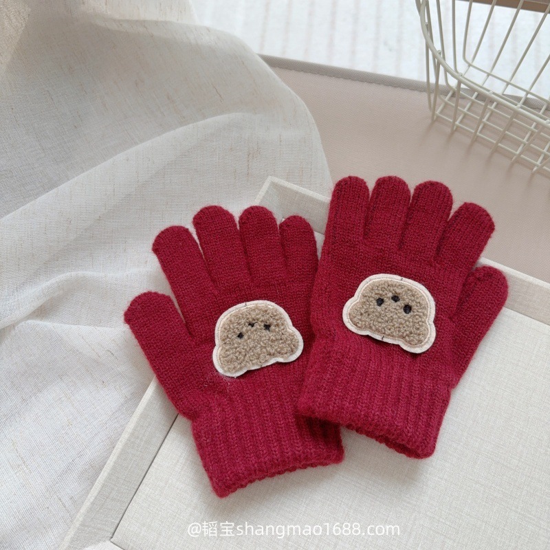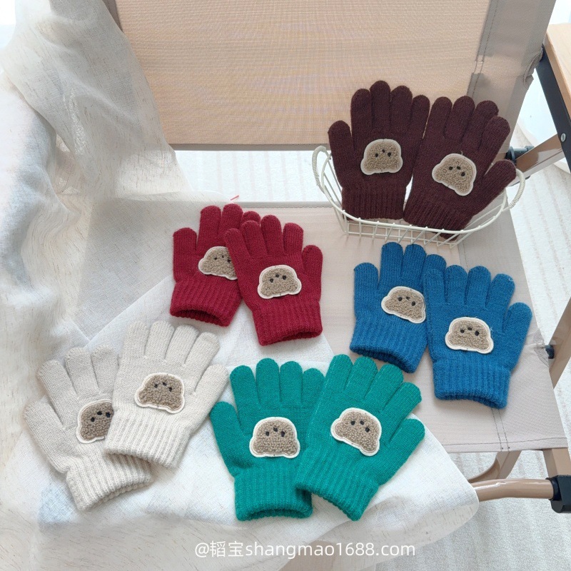 한국 신간 어린이 겨울소년 5 인조 따뜻한 양모 니트 멀티 핑거 걸스 학생 곰 장갑 트렌디
