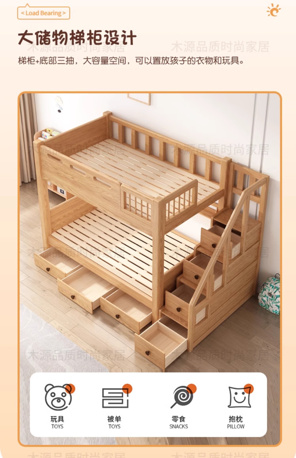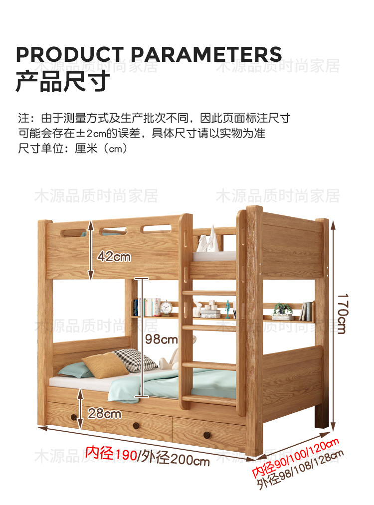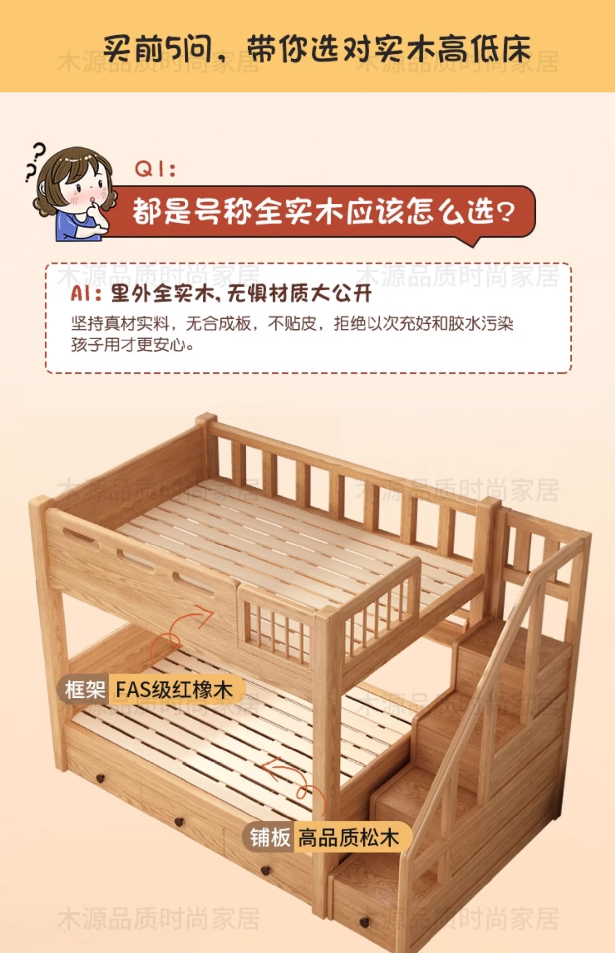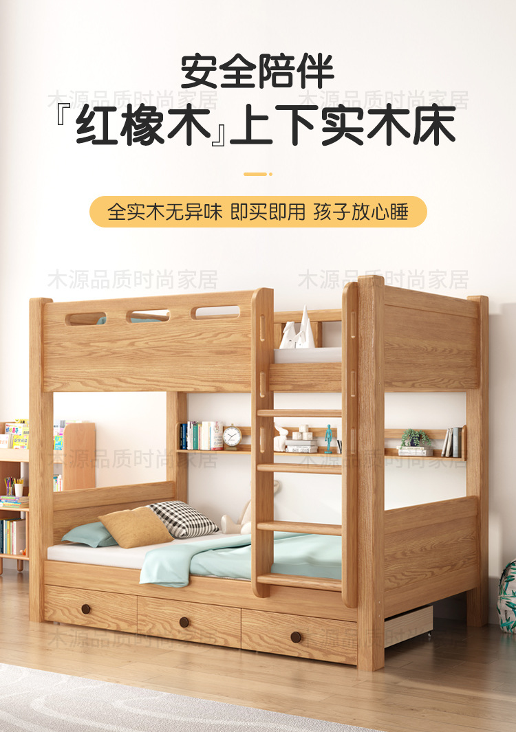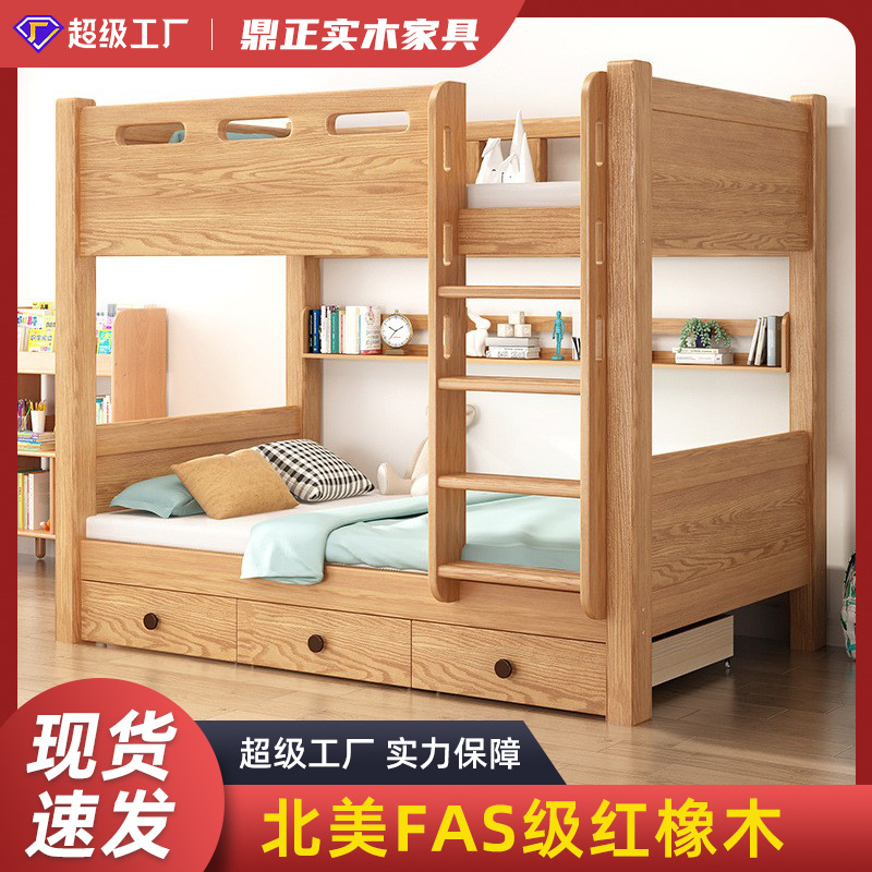 솔리드 우드 탑 및 하단 이층 침대 같은 폭 평행 상 및 하단 침대 어린이 높고 낮은 침대 성인 2 층 레드 오크 마더 침대스토어 가기