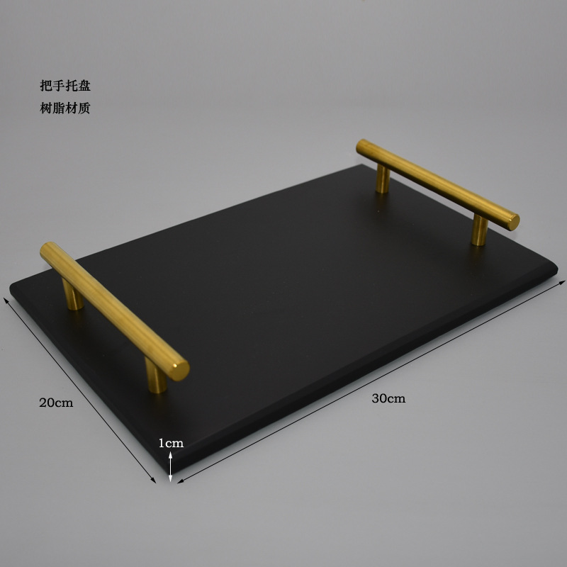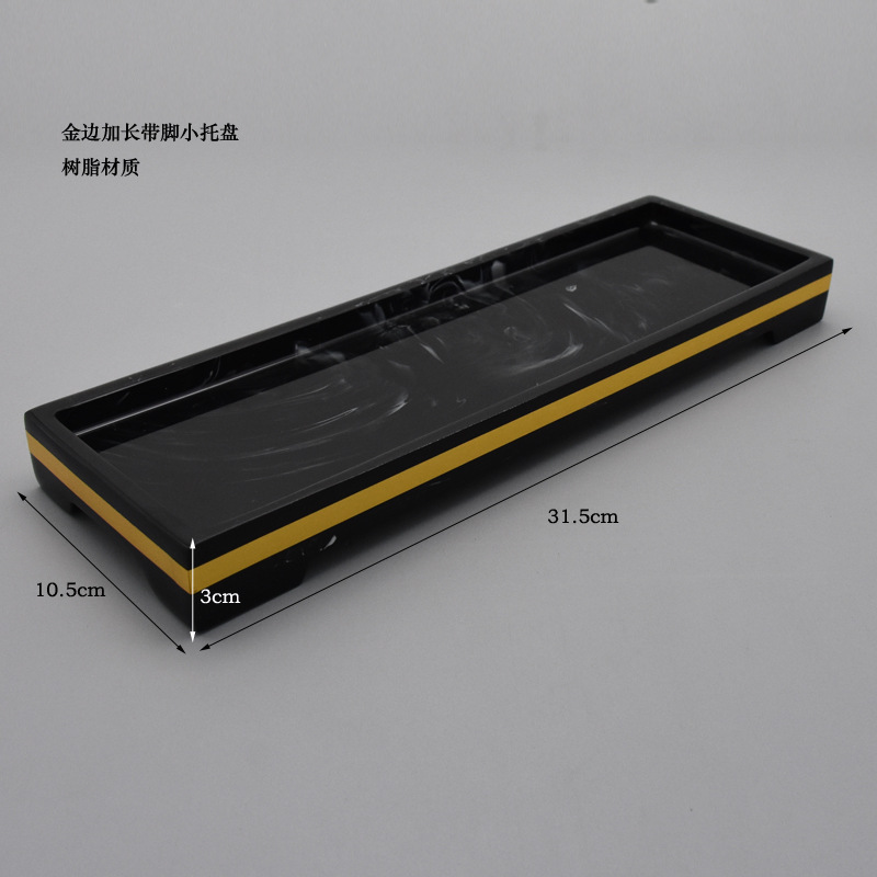 • 금색 가장자리가 있는 검정색 모조 대형 평면 바닥 트레이
