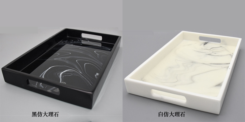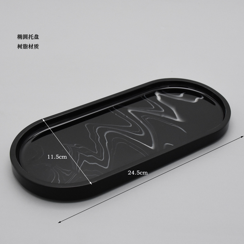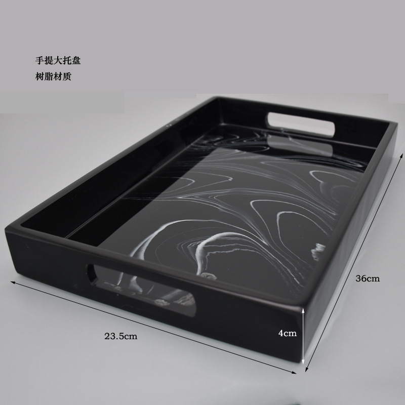 • 검은색 모조 대리석 중간 평평한 바닥 트레이