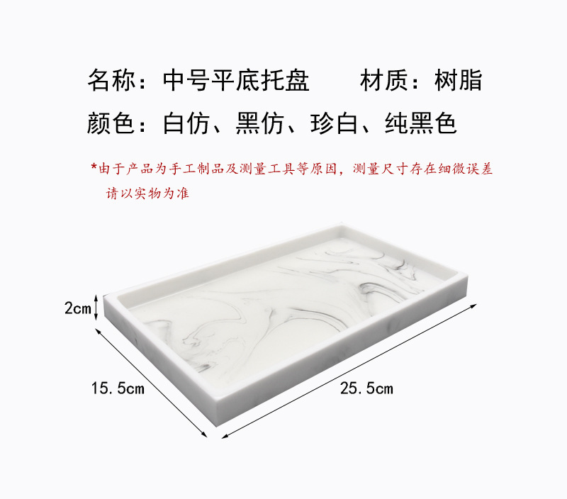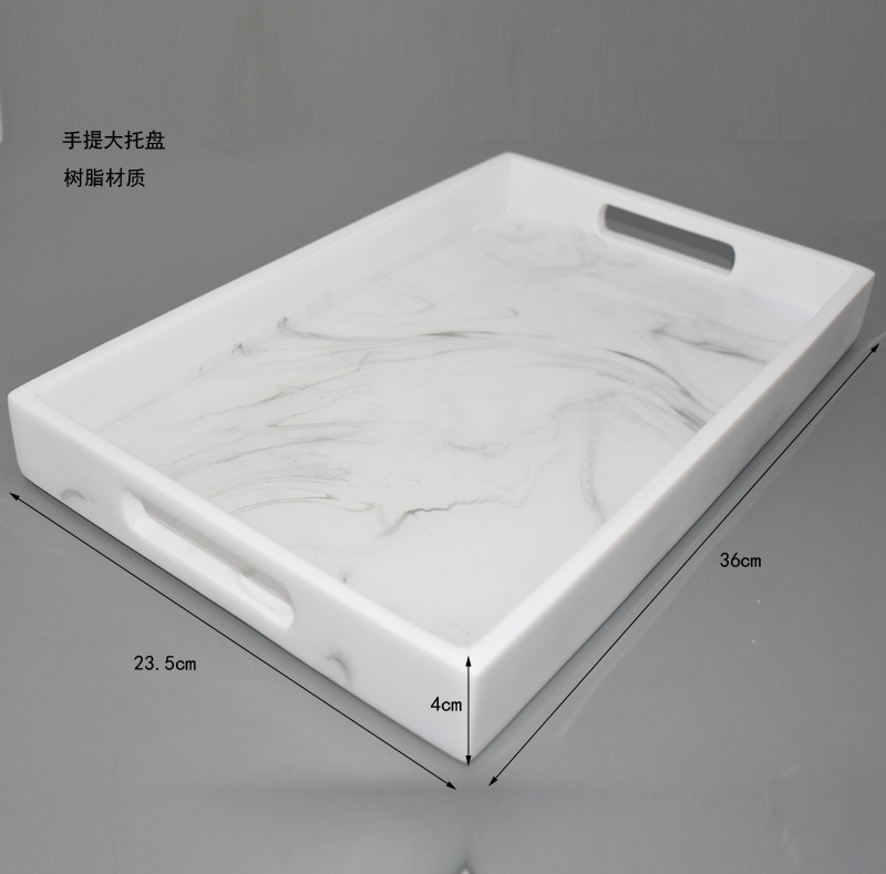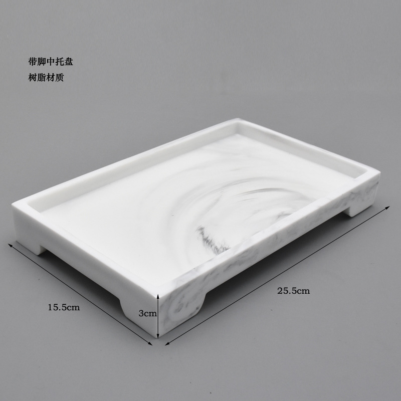 • 흰색 모조 대리석 중간 평평한 바닥 트레이