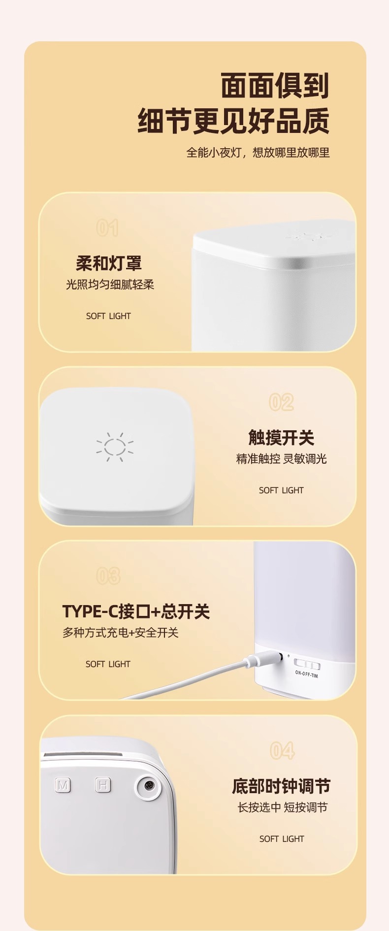 • 【핑크색 몸체】 플러그 앤 플레이 - 따뜻한 빛