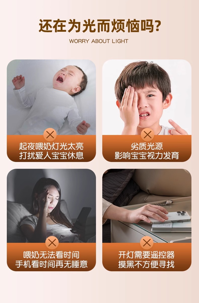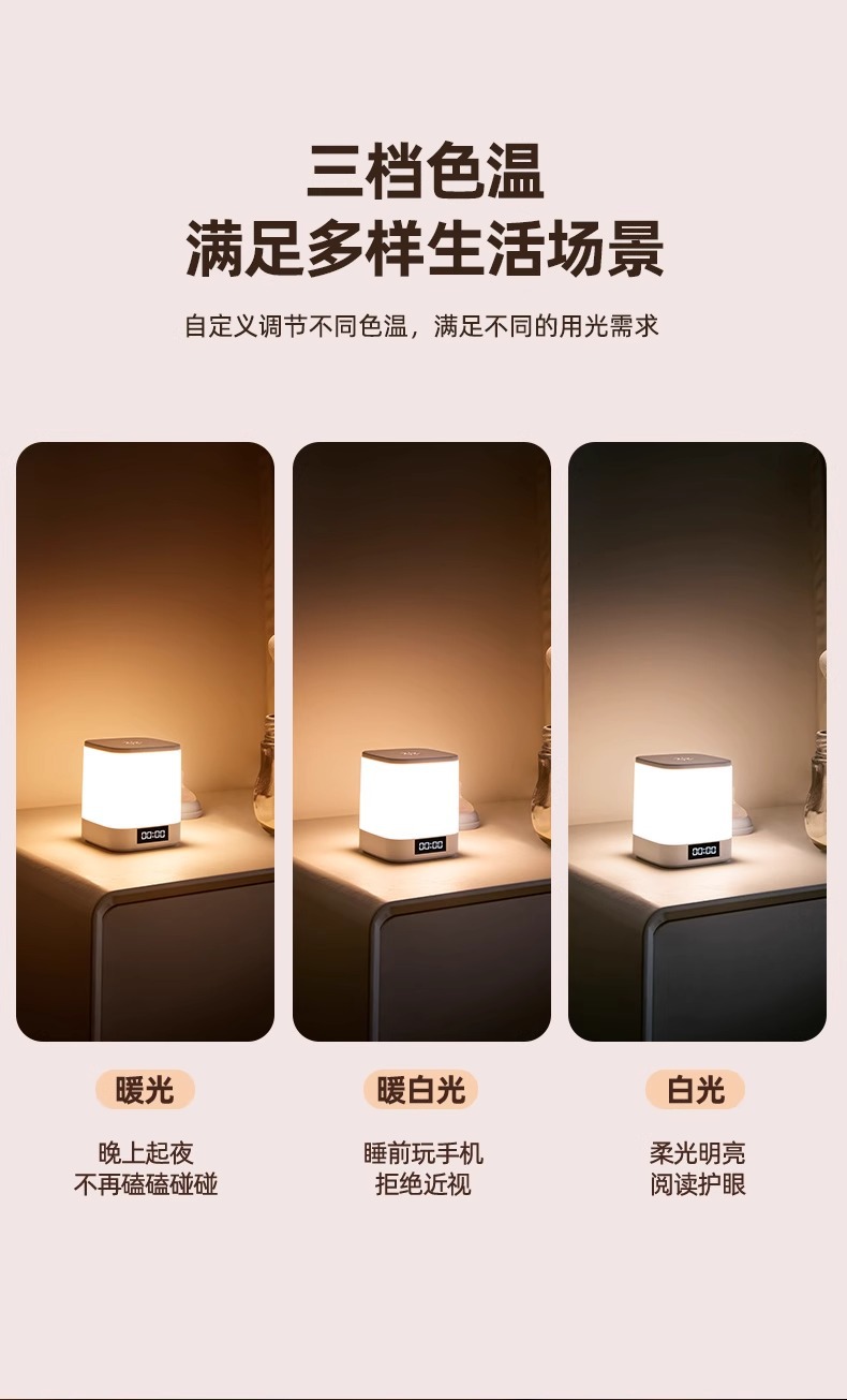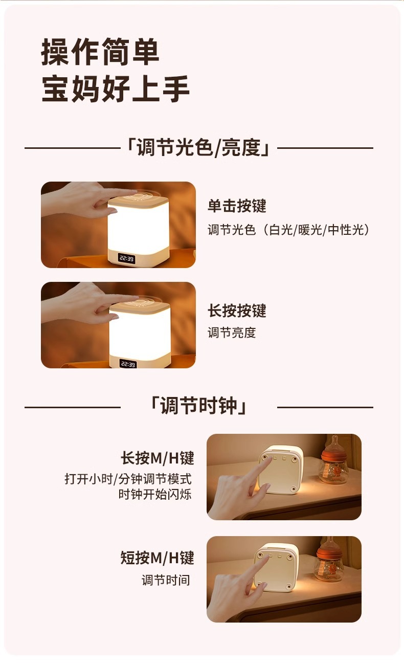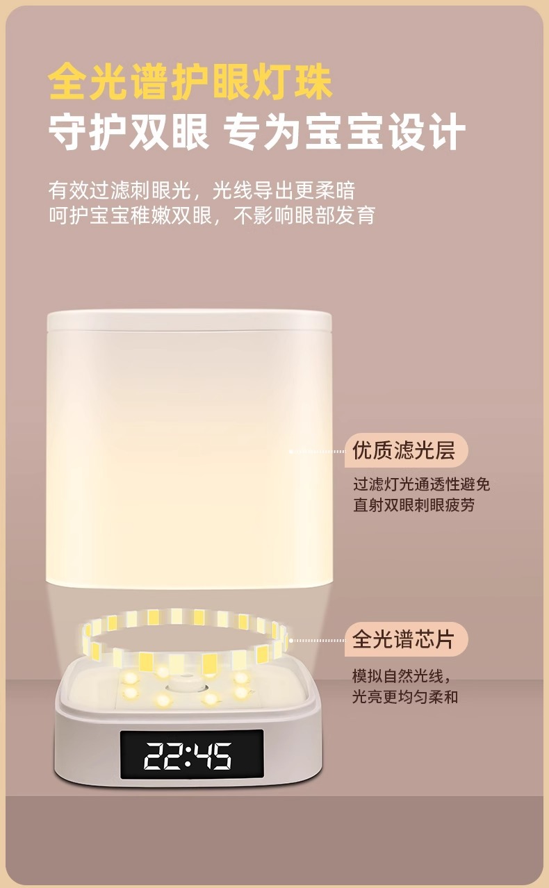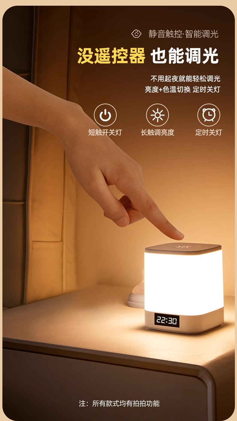 시계형 야간 조명, 충전식 침실 침대 옆 수면등, 아기 수유, 눈 보호, 어린이 야간 테이블 램프, 야간 조명