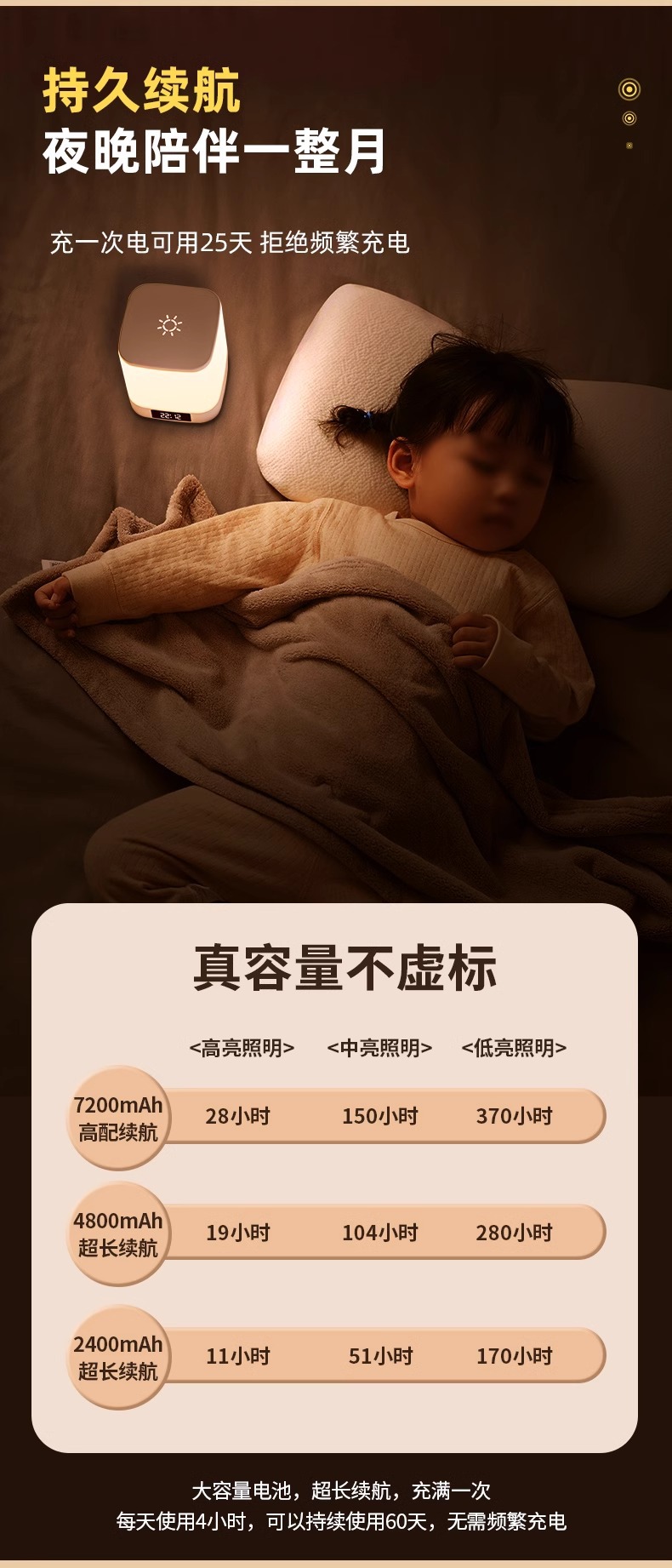 • [시계/음성 겸용 모델 + 타이머 조명 꺼짐] - 7200mAh