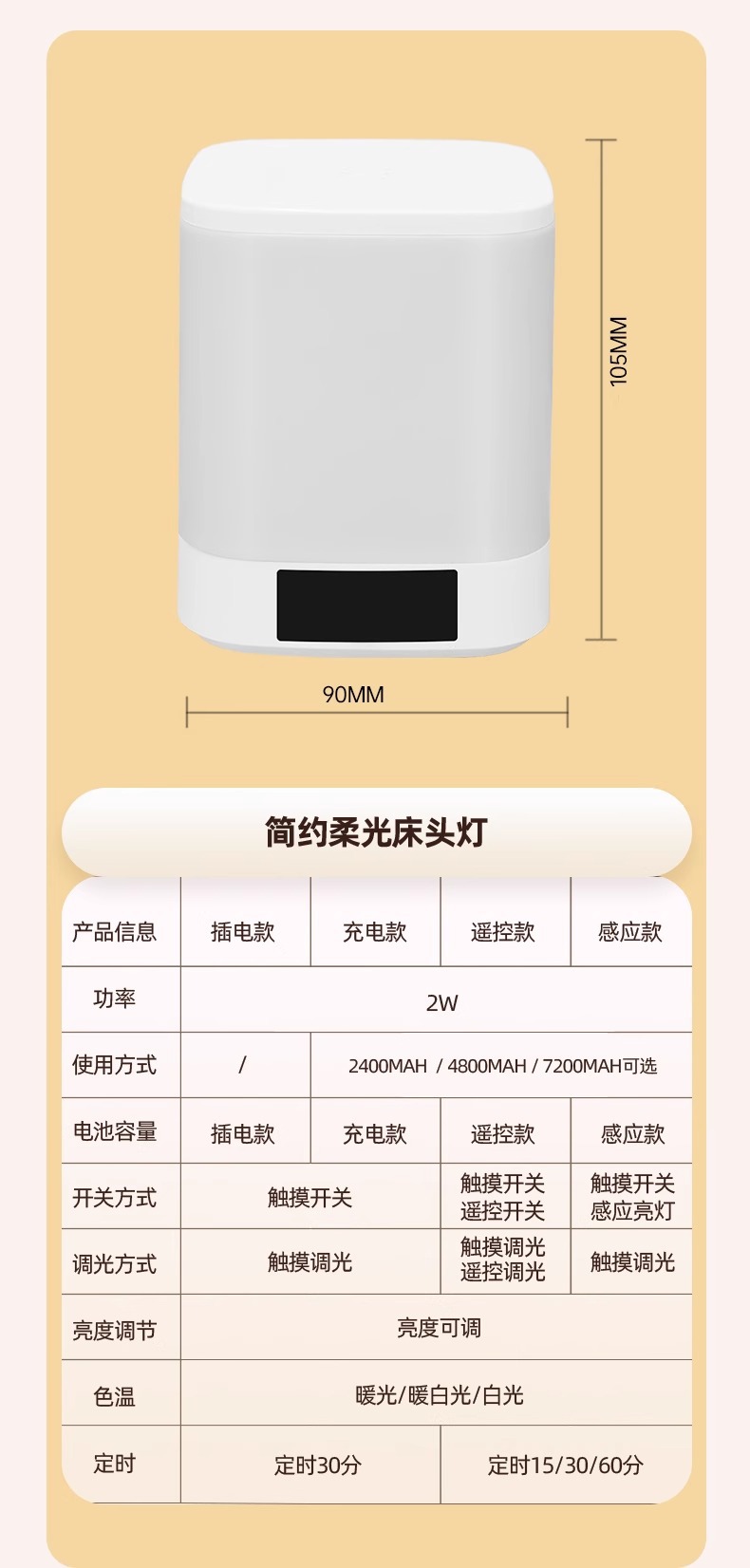 • [시계/리모컨 겸용모델 + 예약조명 꺼짐] - 2400mAh