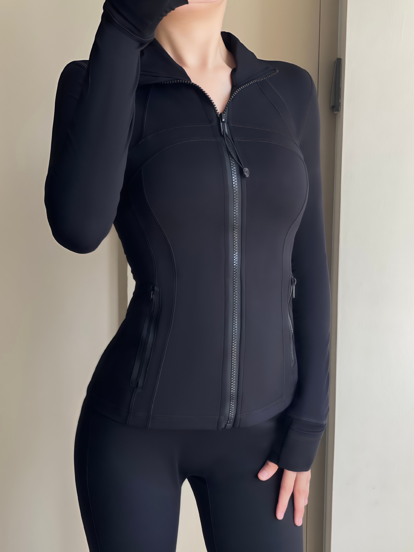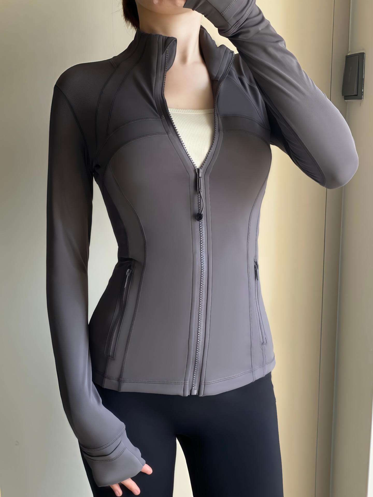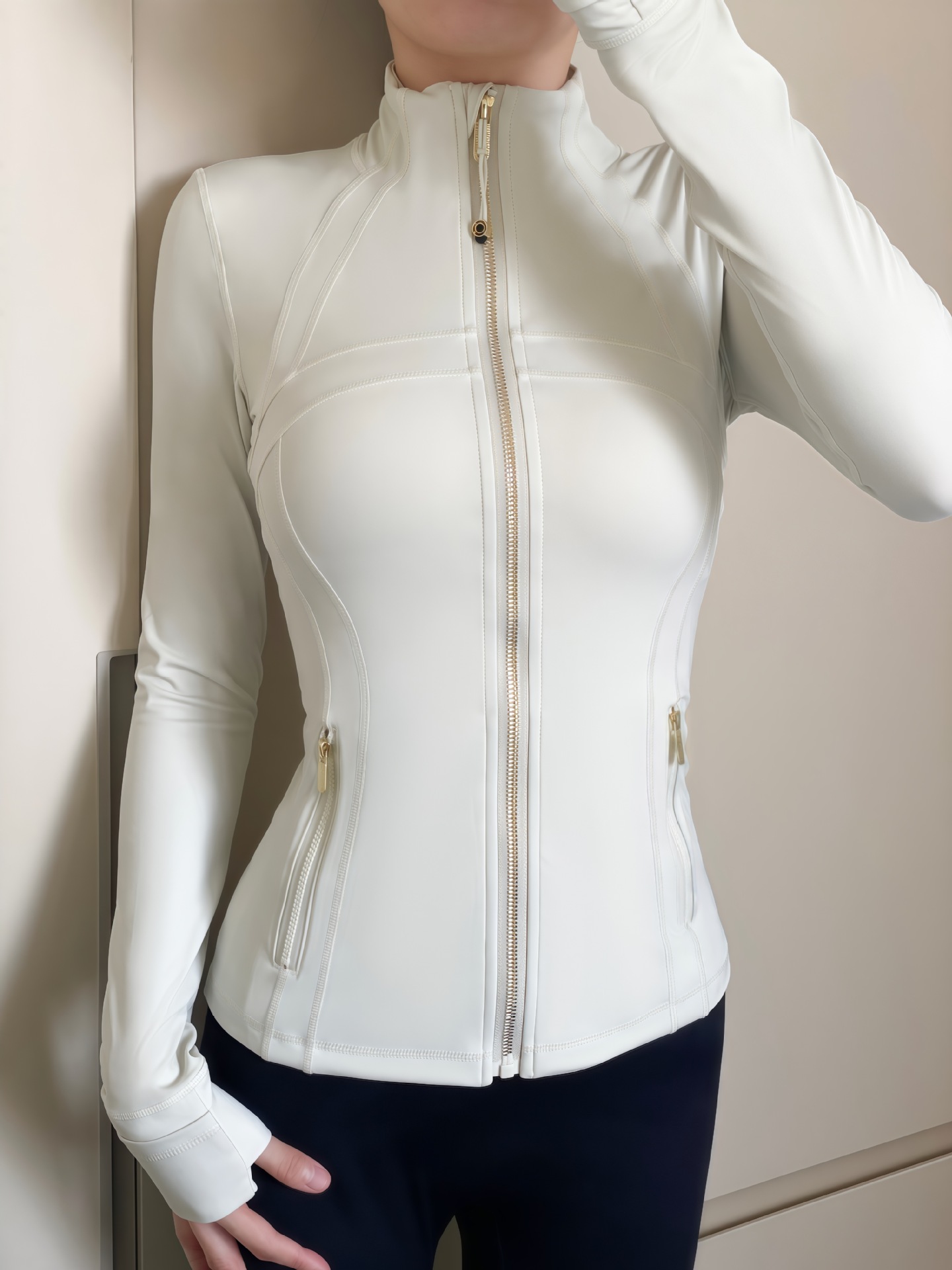 같은 스포츠 여성 의류 골드 지퍼 요가 의류 여성 자켓 통기성 스포츠 탑 긴 소매 피트니스 의류 겉옷