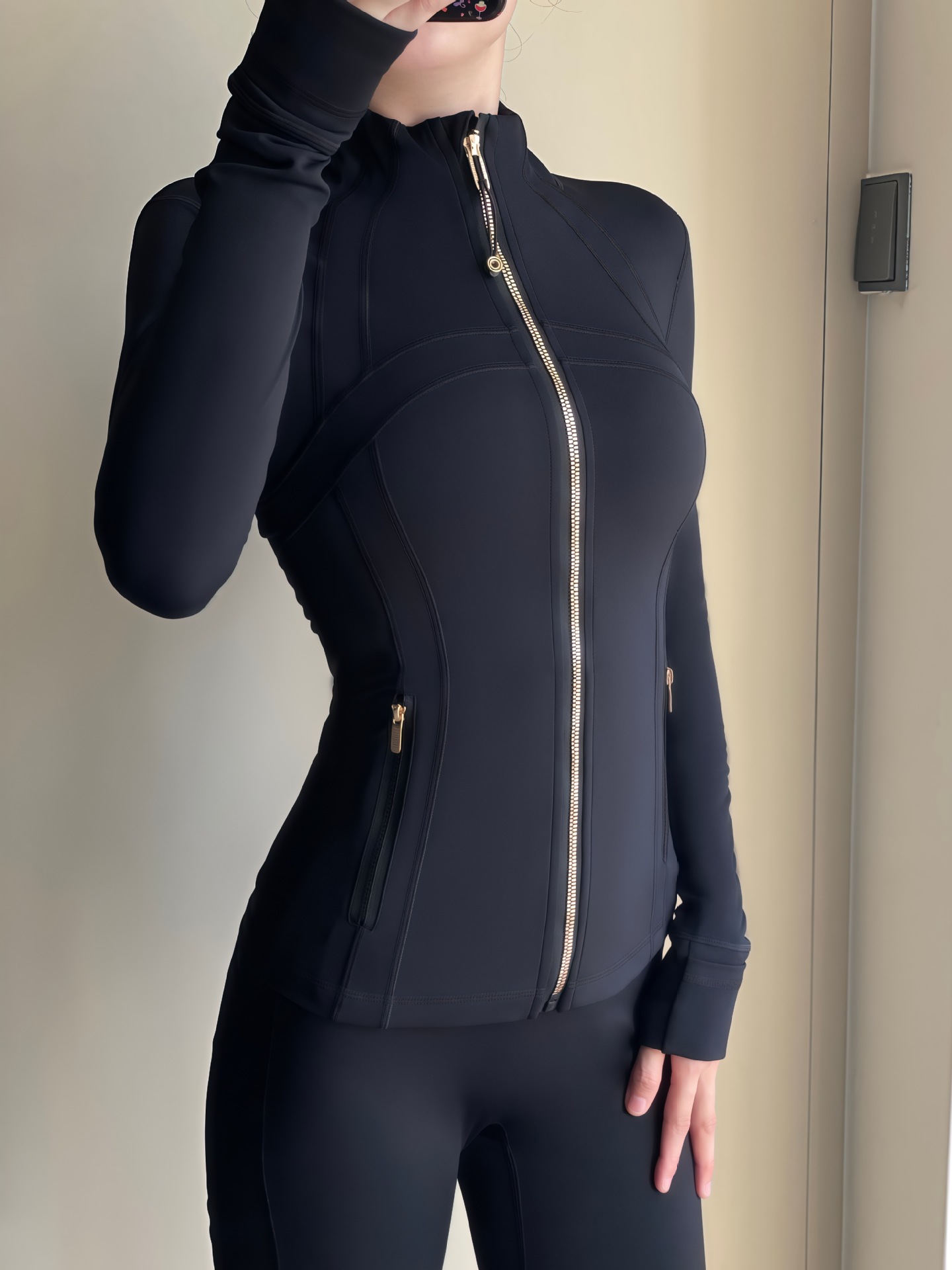 같은 스포츠 여성 의류 골드 지퍼 요가 의류 여성 자켓 통기성 스포츠 탑 긴 소매 피트니스 의류 겉옷스토어 가기
