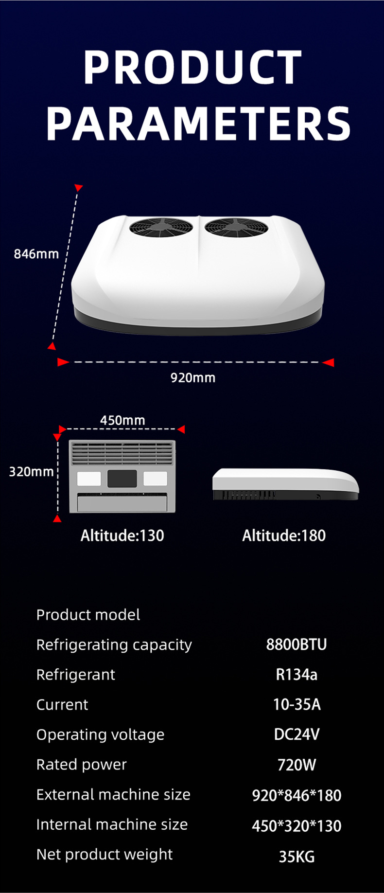 제조업체의 새로운 더블 팬 RV 에어컨 올인원 12V24V 높은 냉각 용량 가변 주파수 전기 주차 자동차 에어컨
