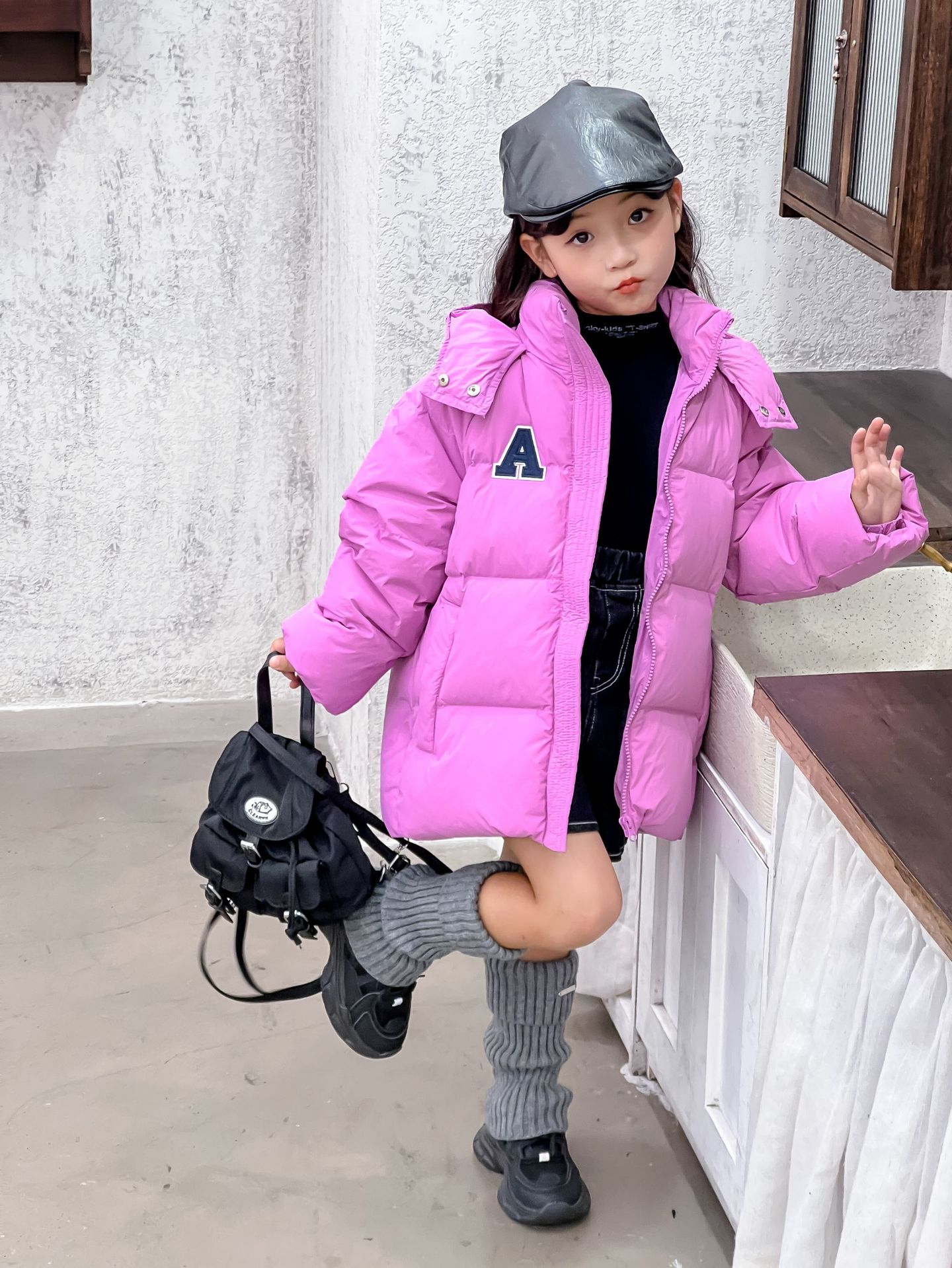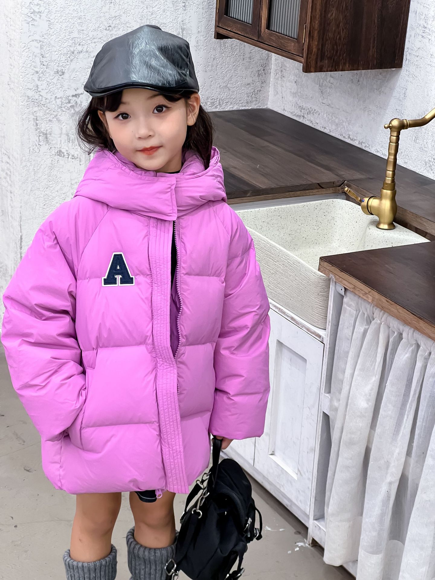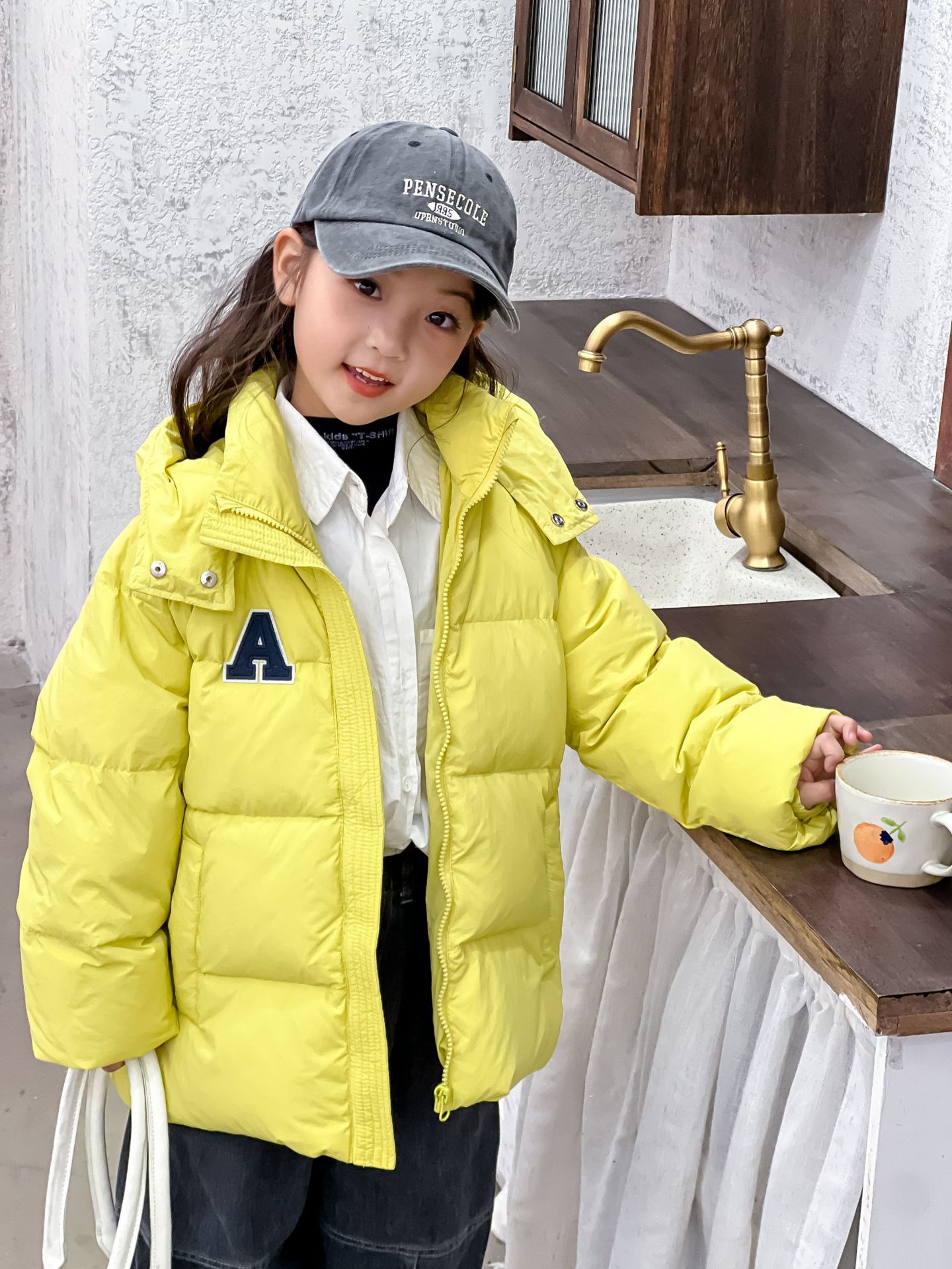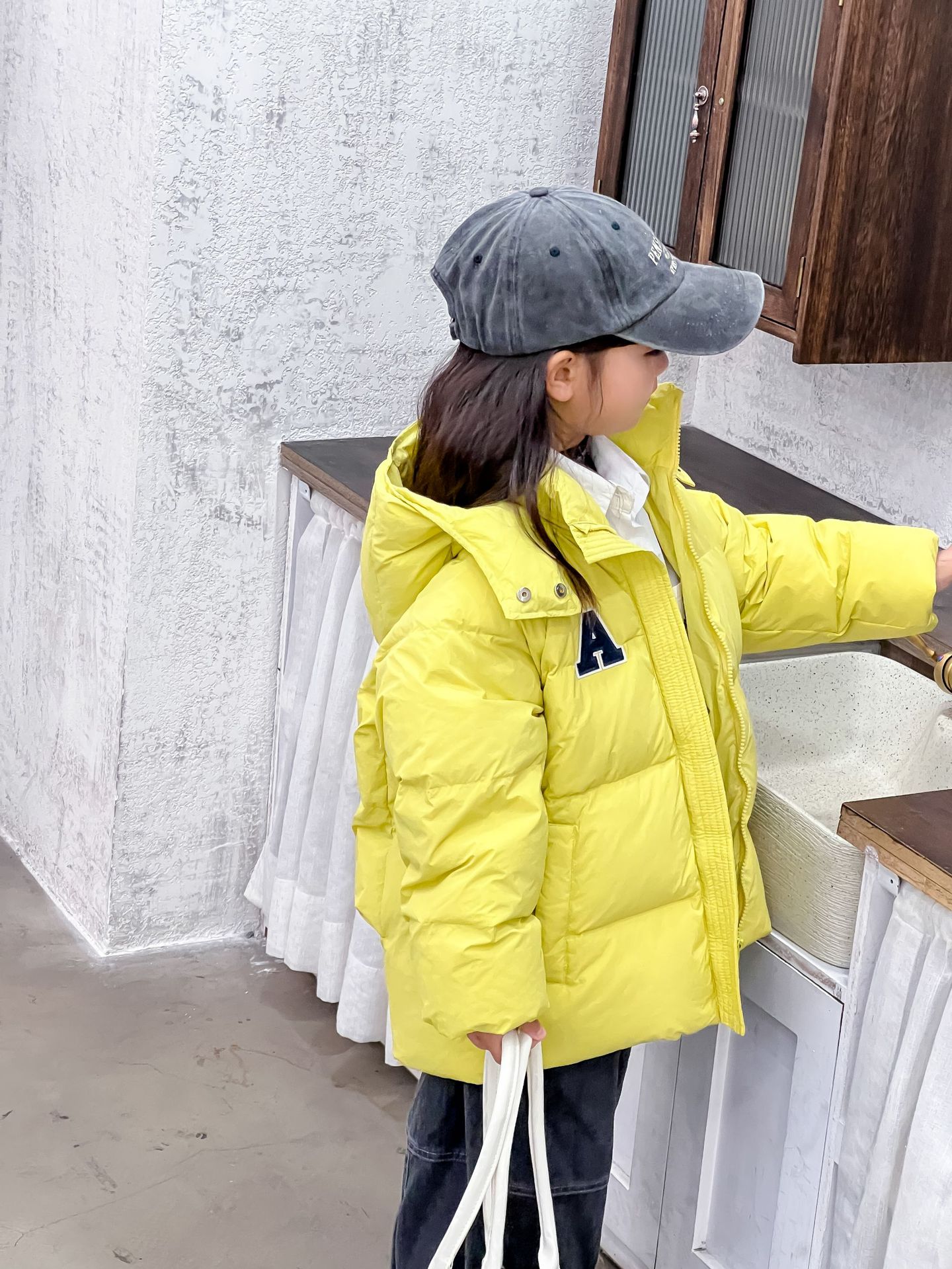 2025 가을 겨울 아동복 화이트 덕다운 숏패딩 자켓, 중대형 아동용, 여아용, 두꺼운 방한 패딩, 유아용스토어 가기