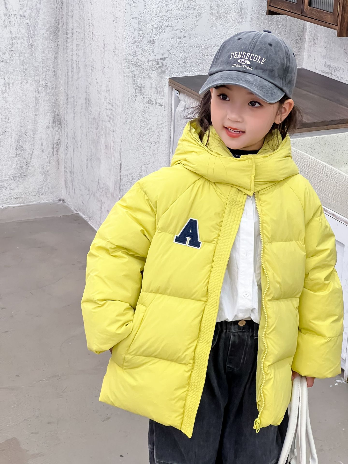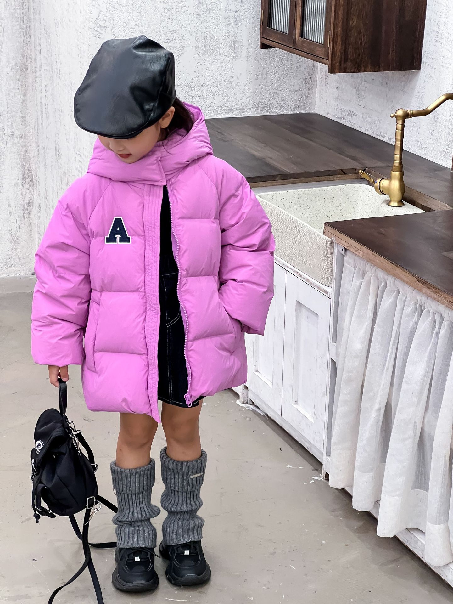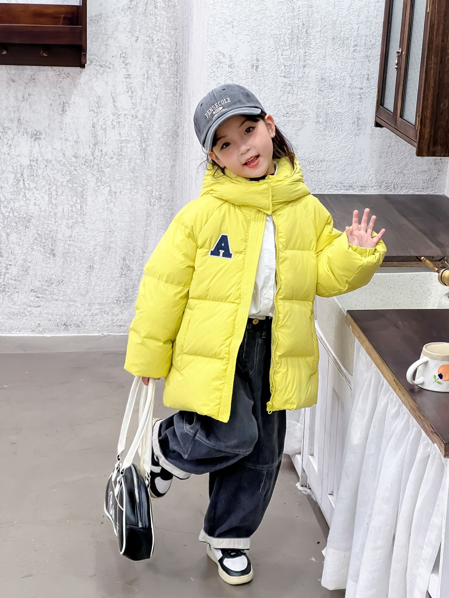 2025 가을 겨울 아동복 화이트 덕다운 숏패딩 자켓, 중대형 아동용, 여아용, 두꺼운 방한 패딩, 유아용스토어 가기