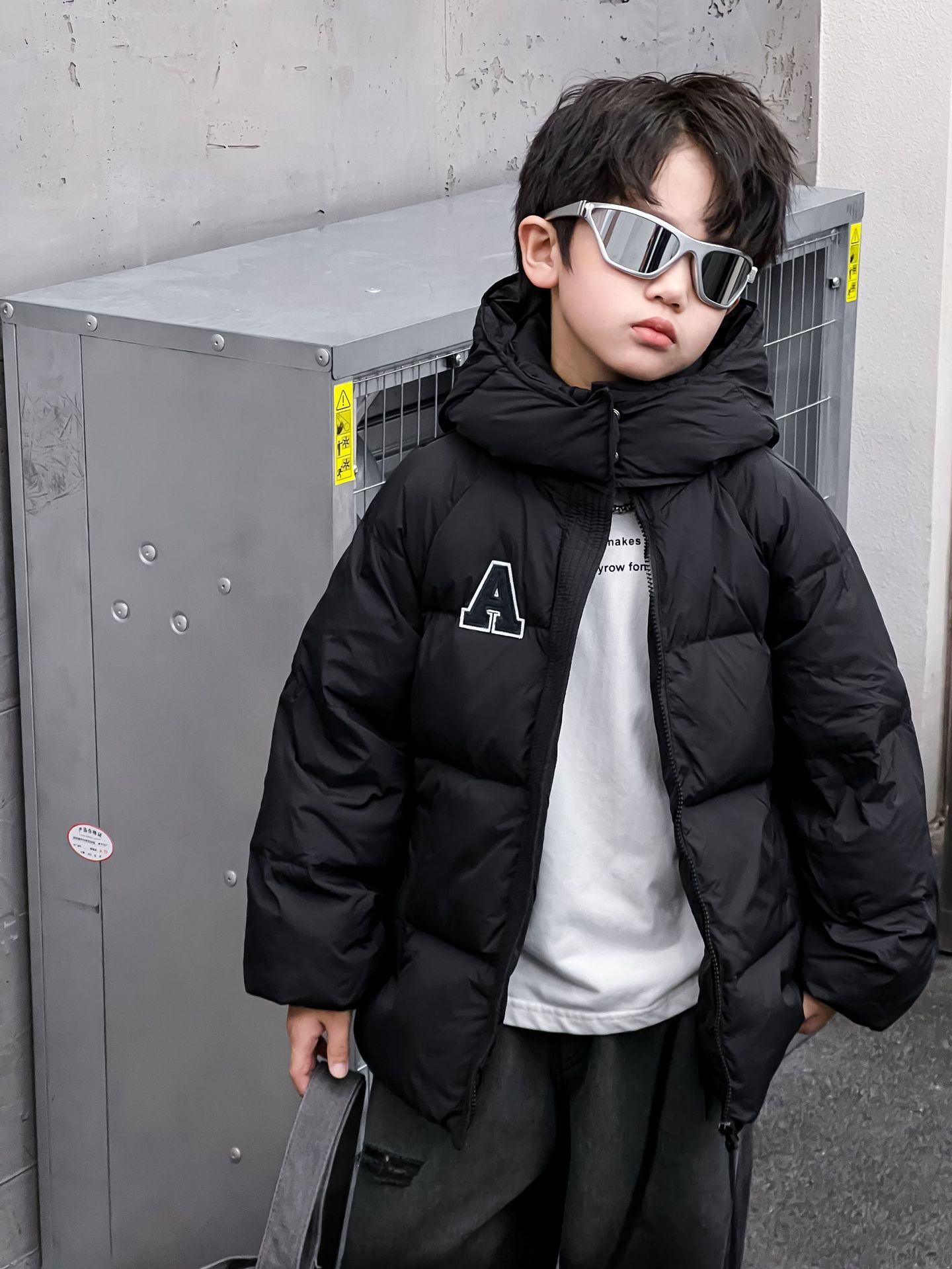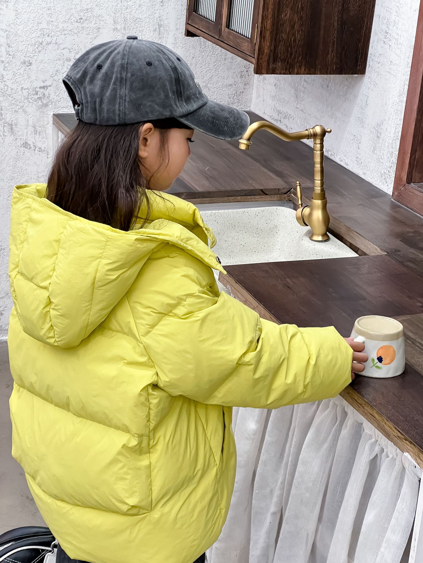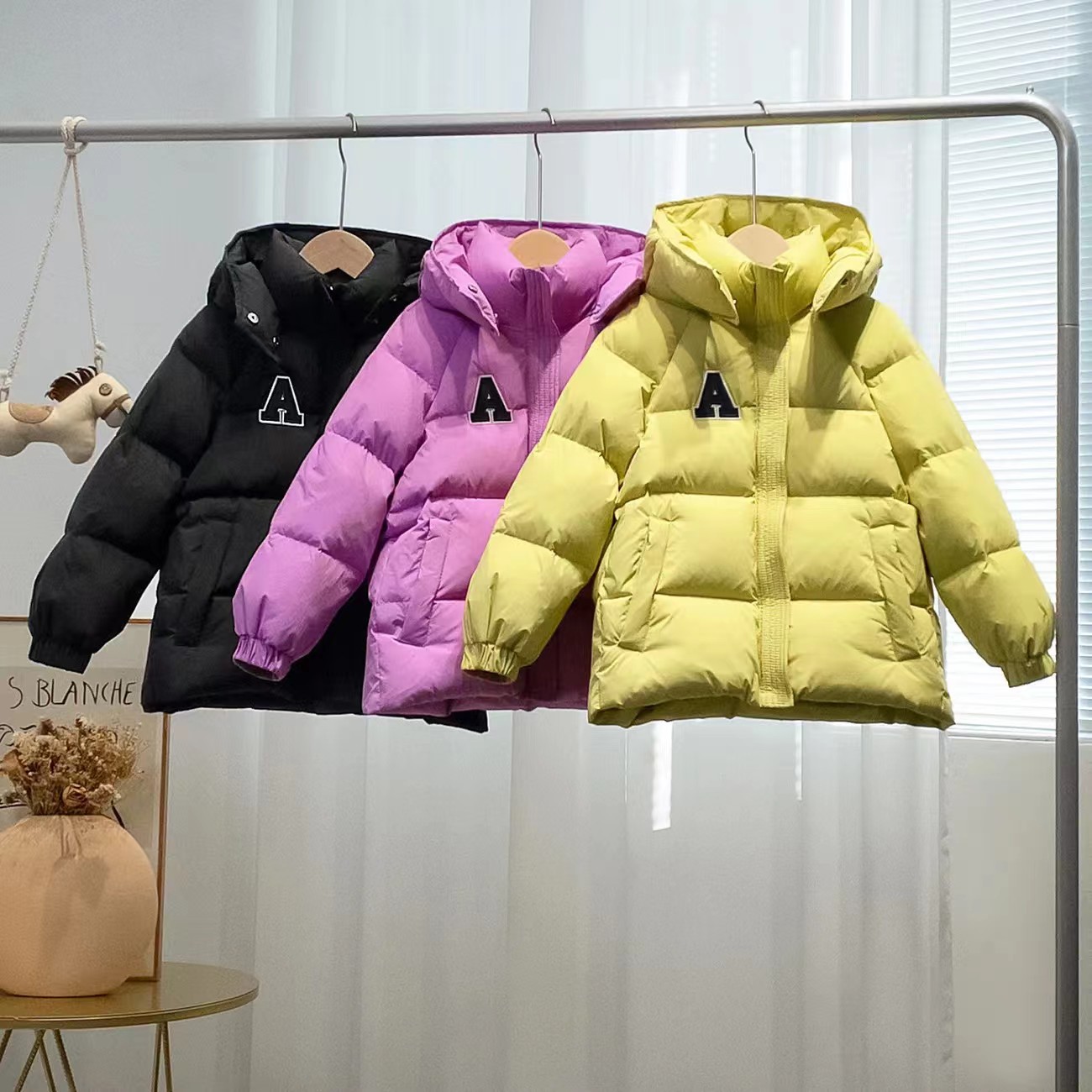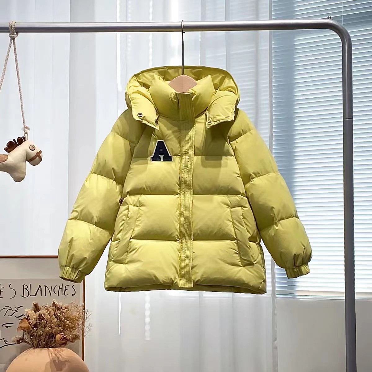 2025 가을 겨울 아동복 화이트 덕다운 숏패딩 자켓, 중대형 아동용, 여아용, 두꺼운 방한 패딩, 유아용스토어 가기