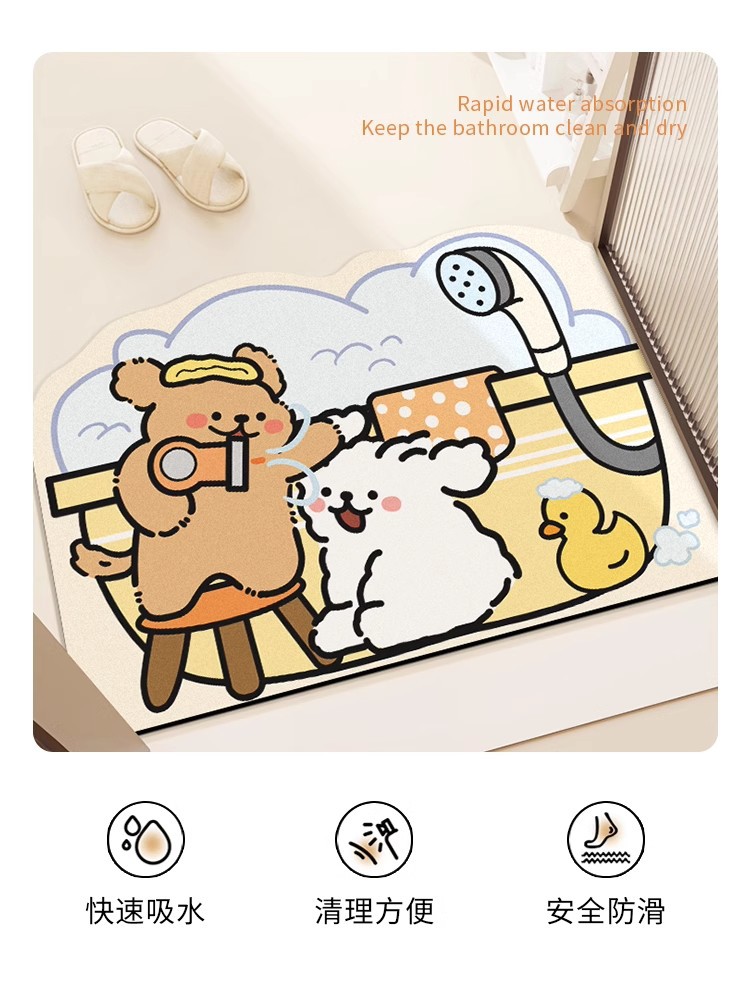 Diatom 진흙 매트 귀여운 개 욕실 문 매트 욕실 물 흡수성 빠른 건조 발 매트 가정용 먼지 방지 내마모성 패드