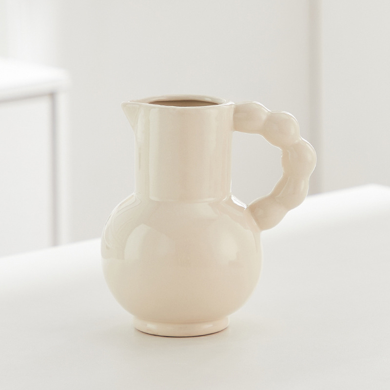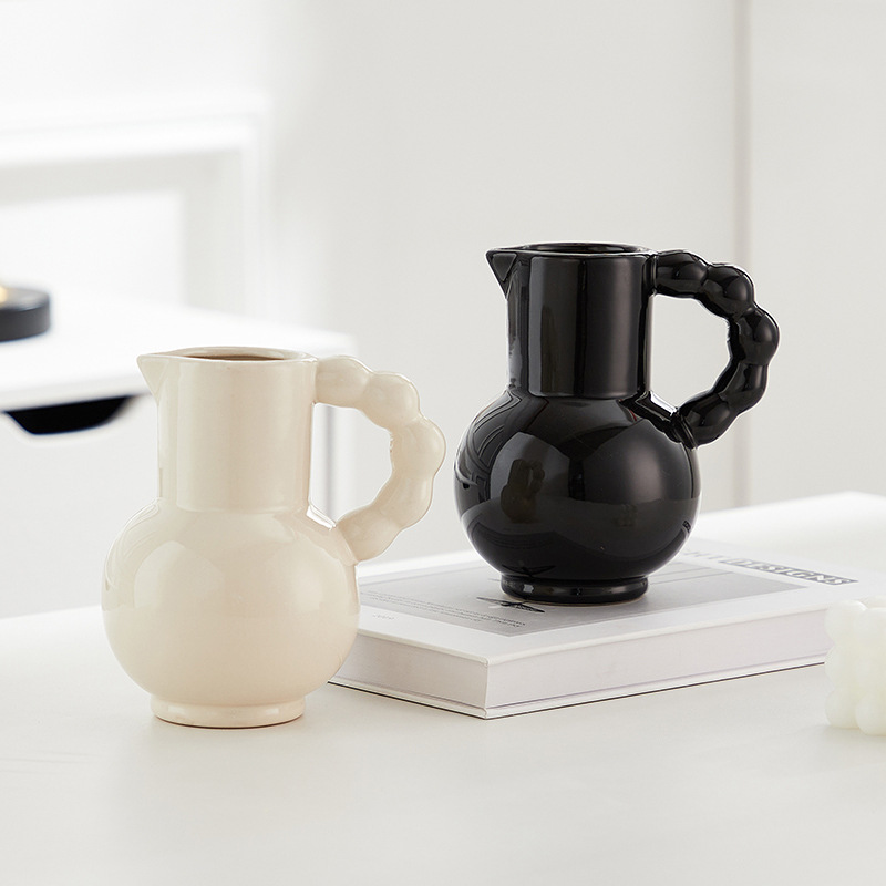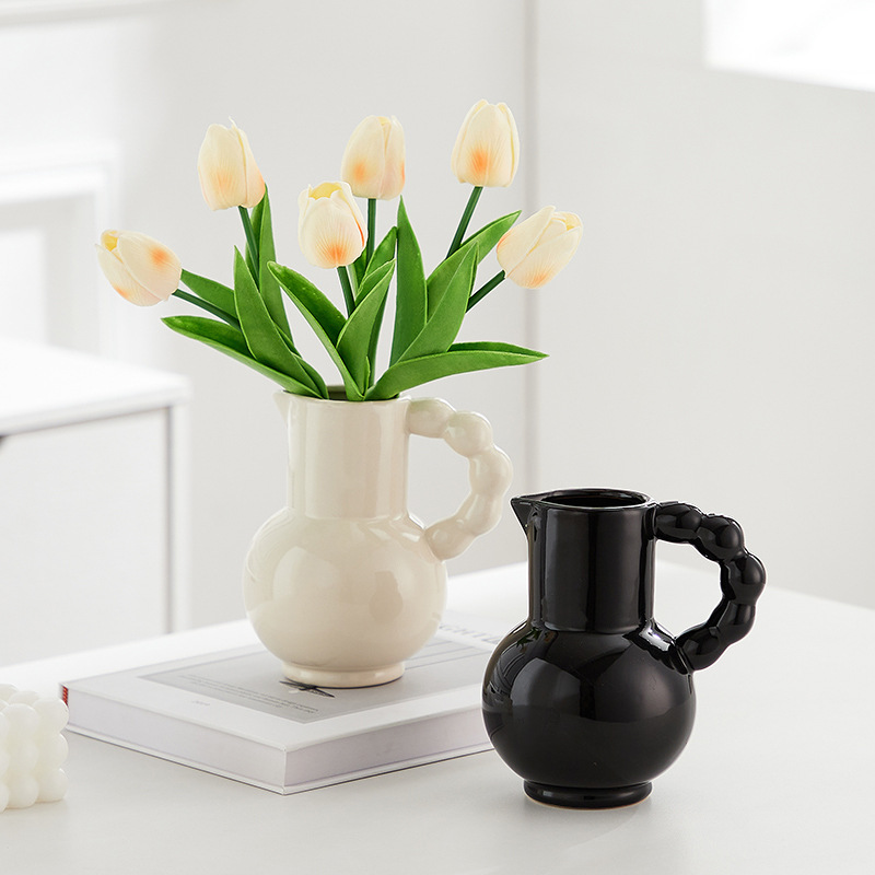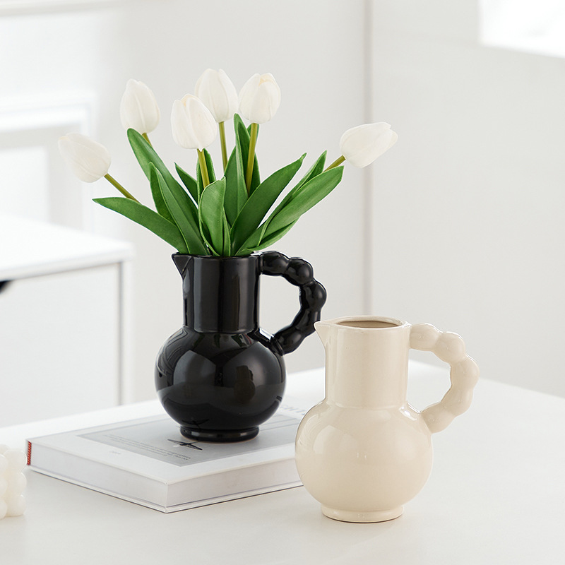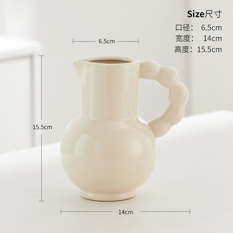 프랑스 스타일 세라믹 밀크 포트 핸들 꽃병 스타일 높은 색 가치 꽃 배열 수화 거실 장식품 말린 꽃 장식