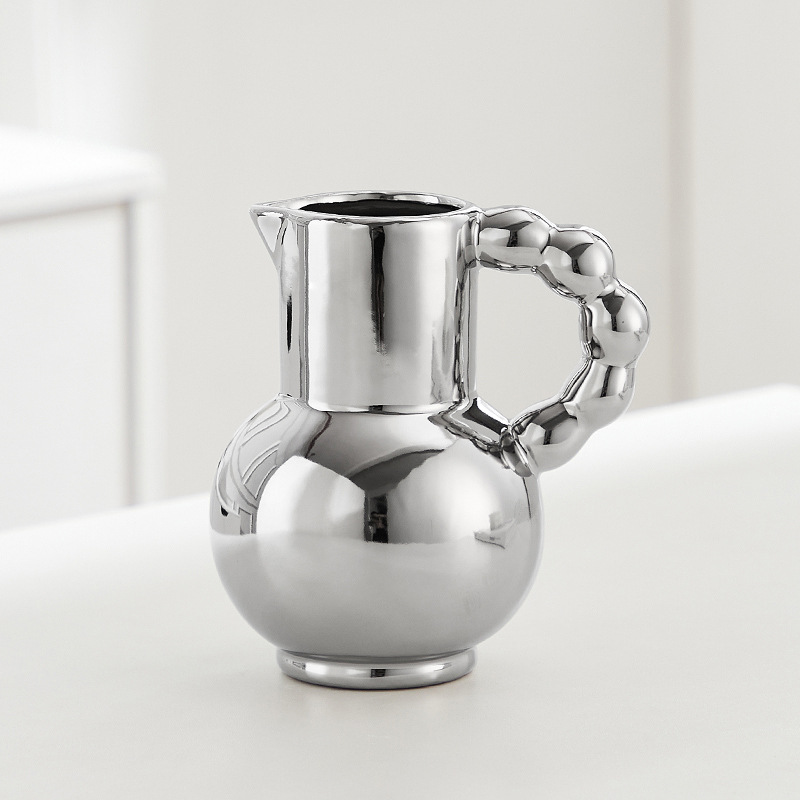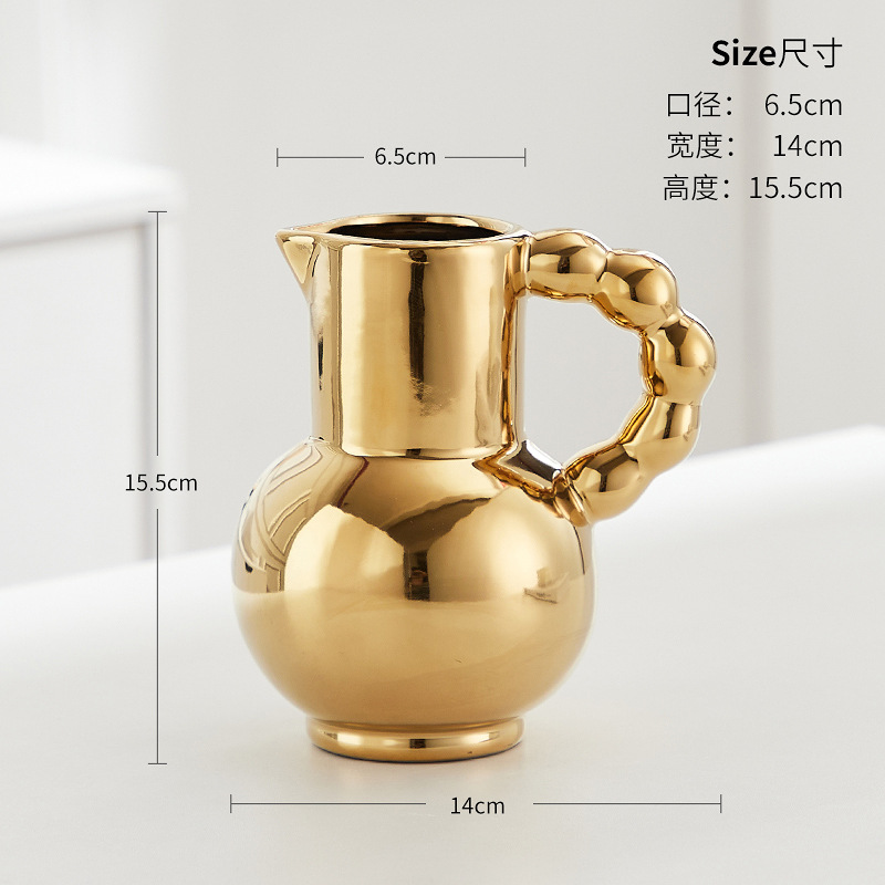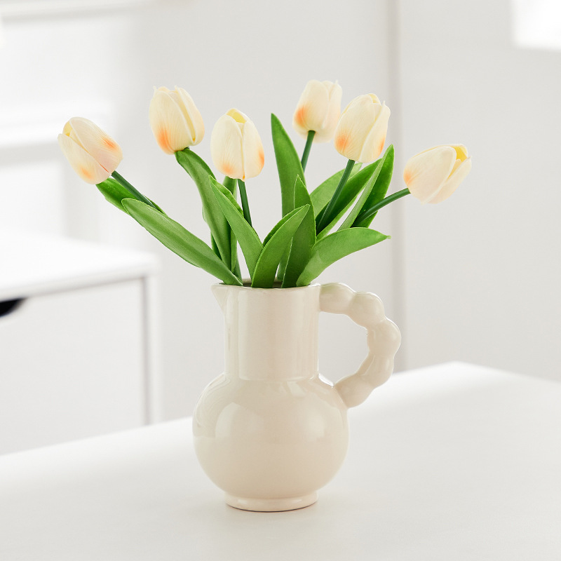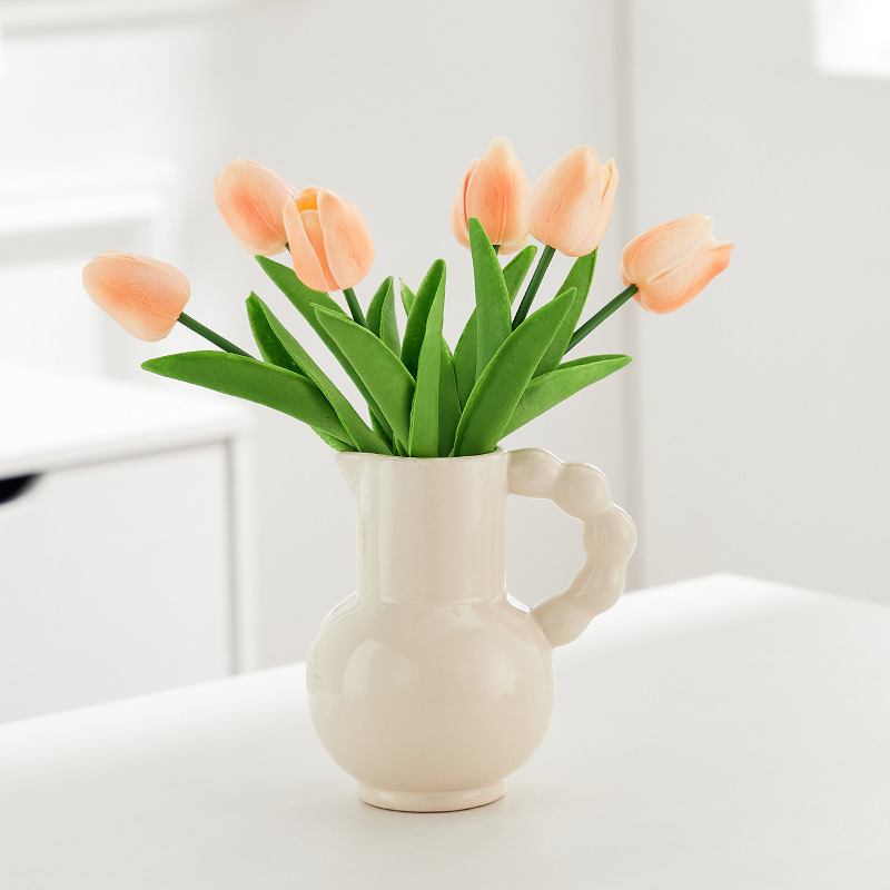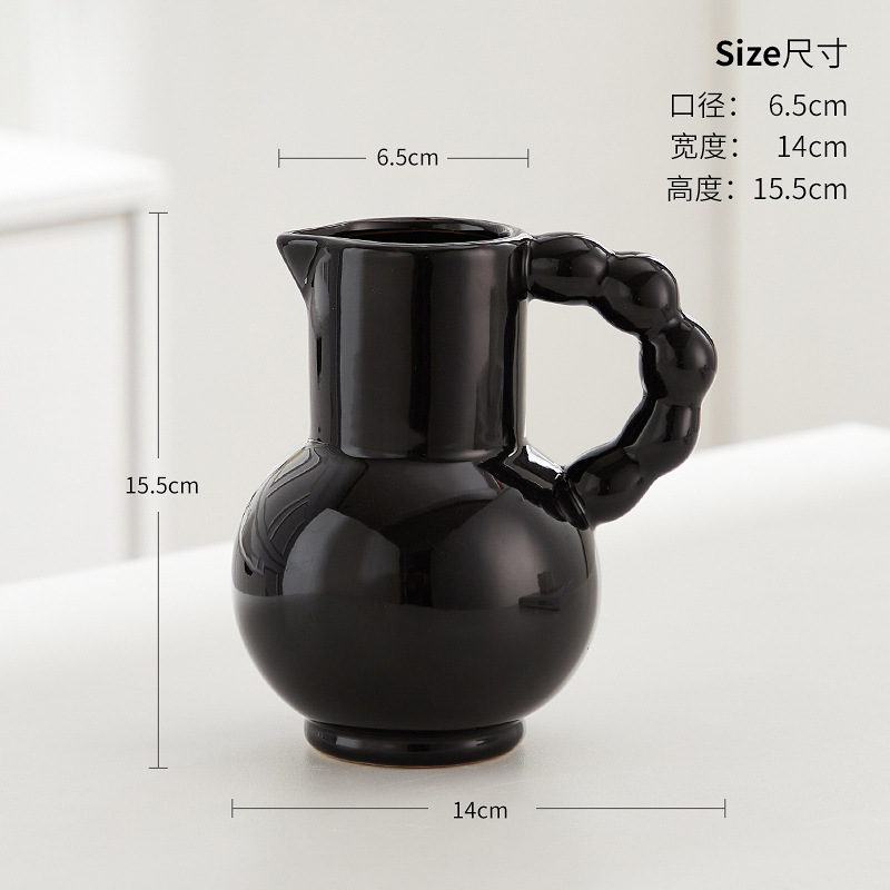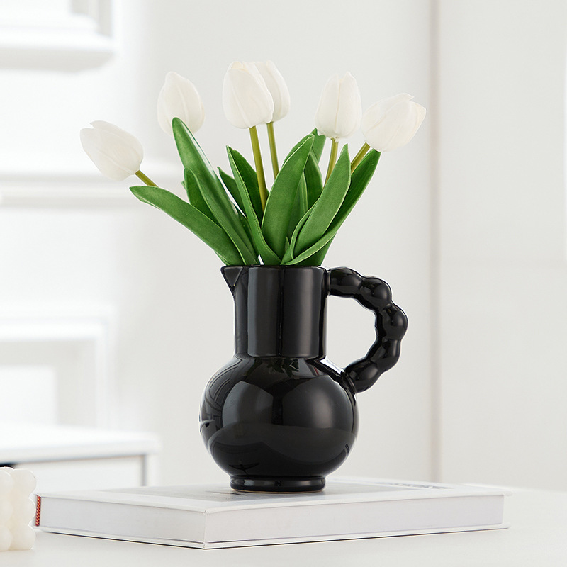 프랑스 스타일 세라믹 밀크 포트 핸들 꽃병 스타일 높은 색 가치 꽃 배열 수화 거실 장식품 말린 꽃 장식