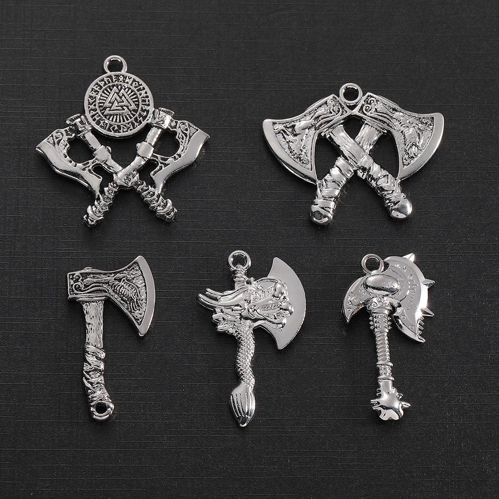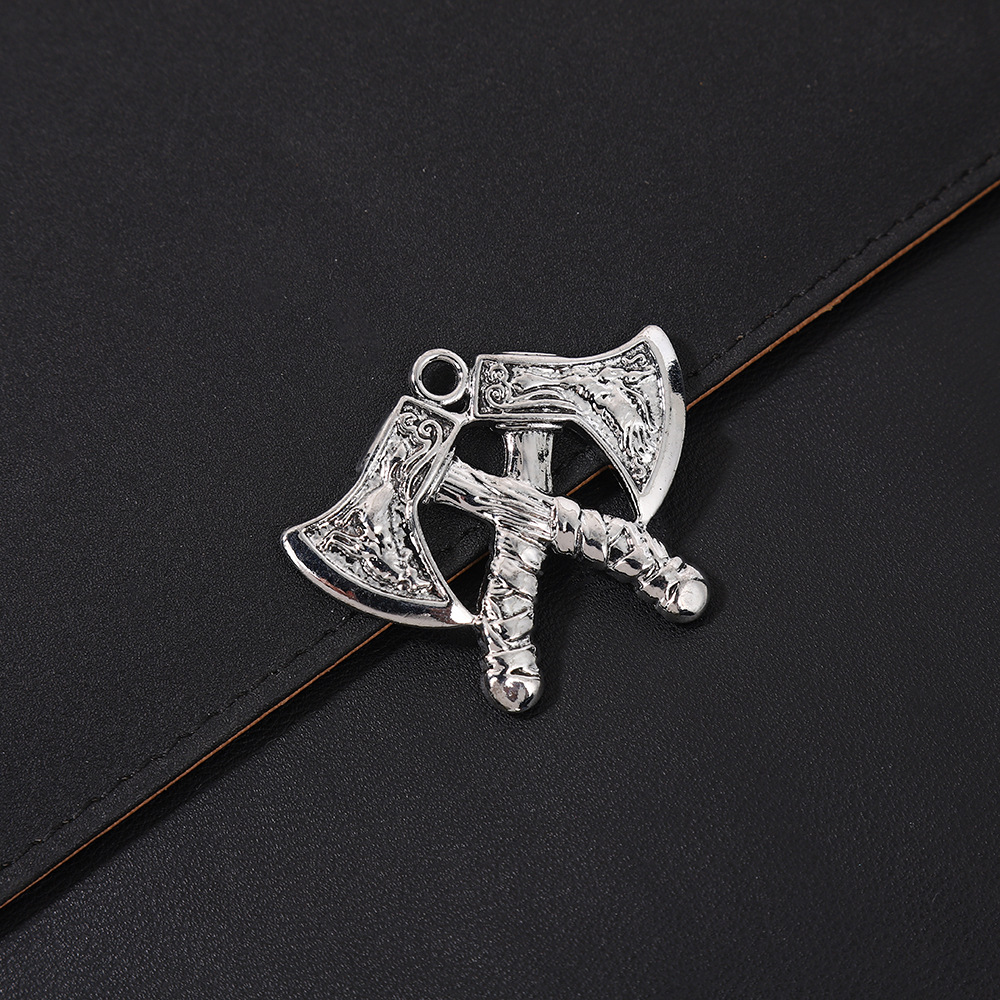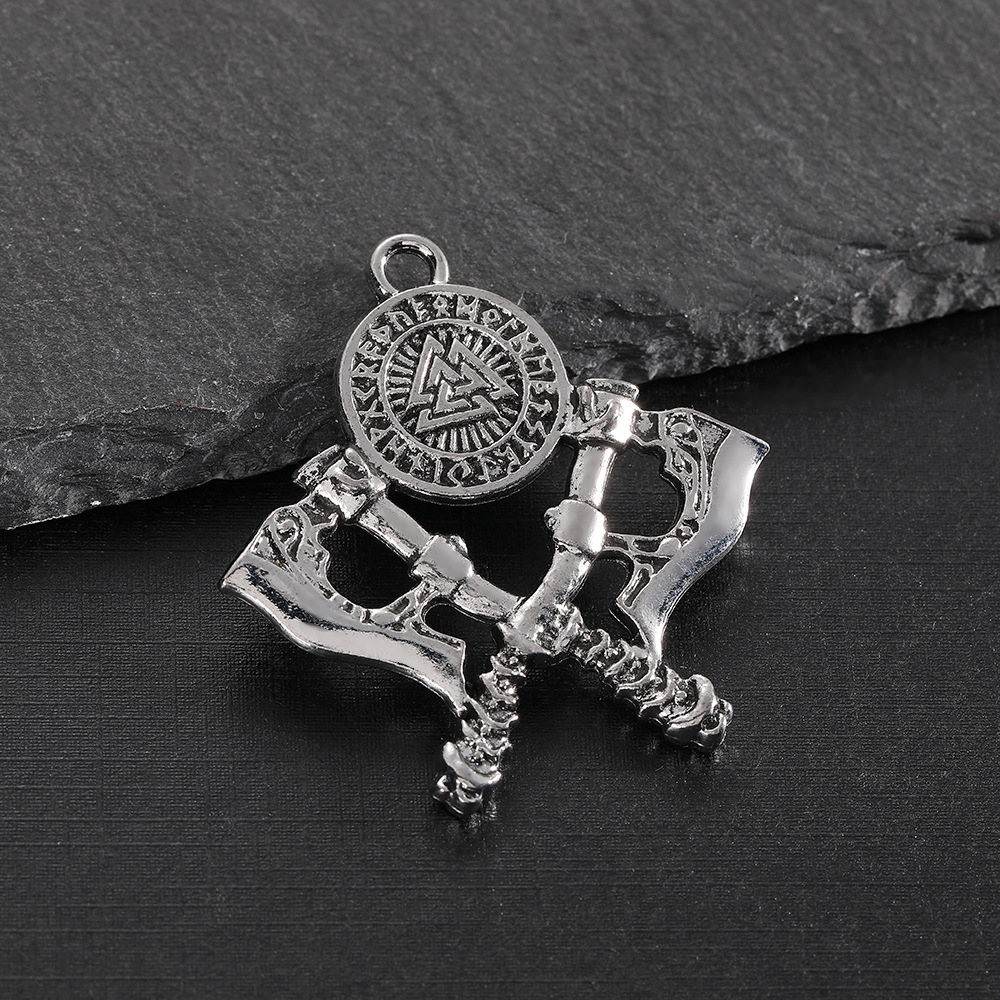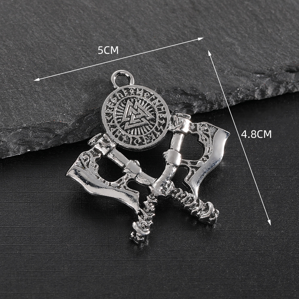 북유럽 바이킹 전사 창조적 인 더블 도끼 합금 펜던트 목걸이 남성 룬 패션 체인 보석 남성 도매